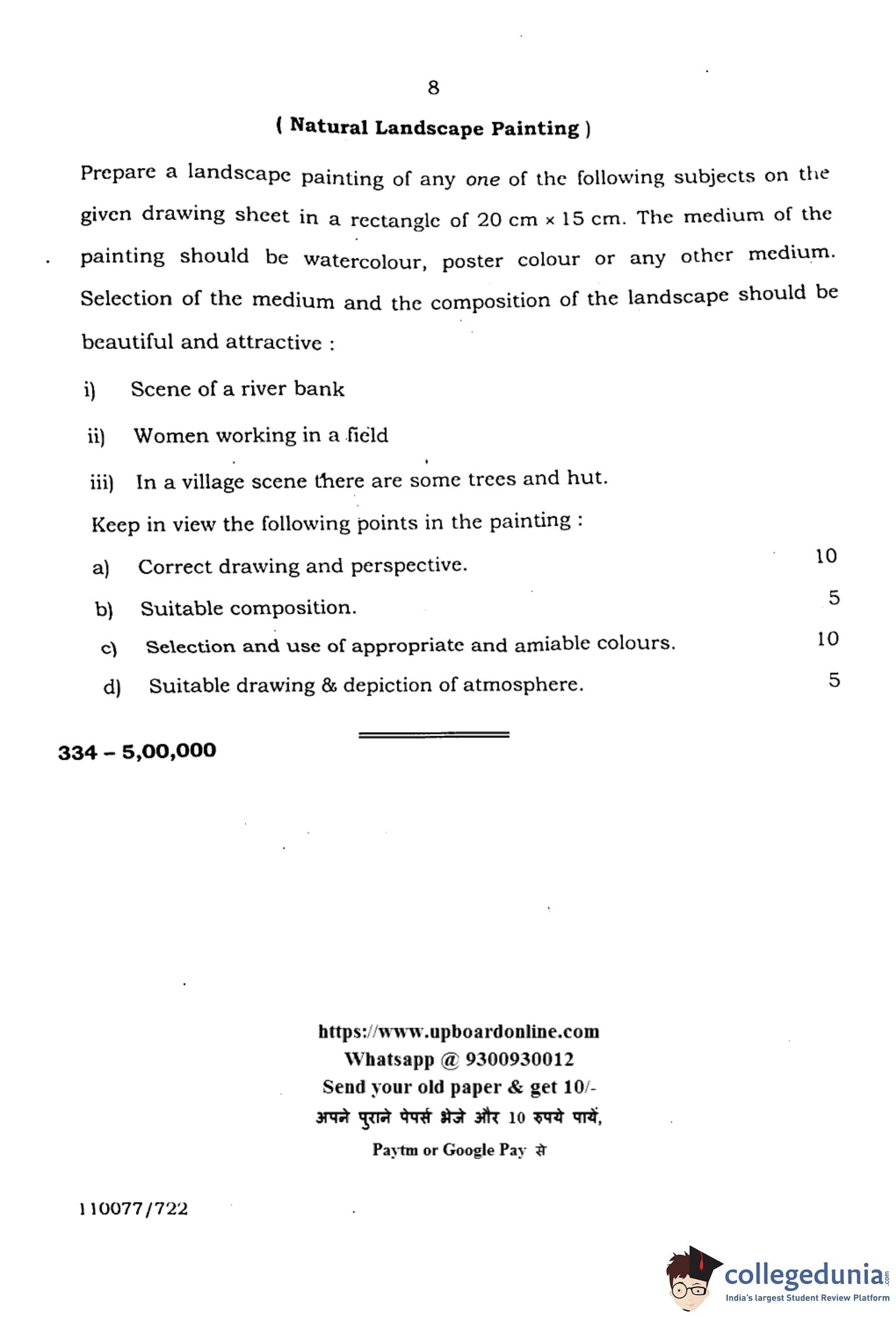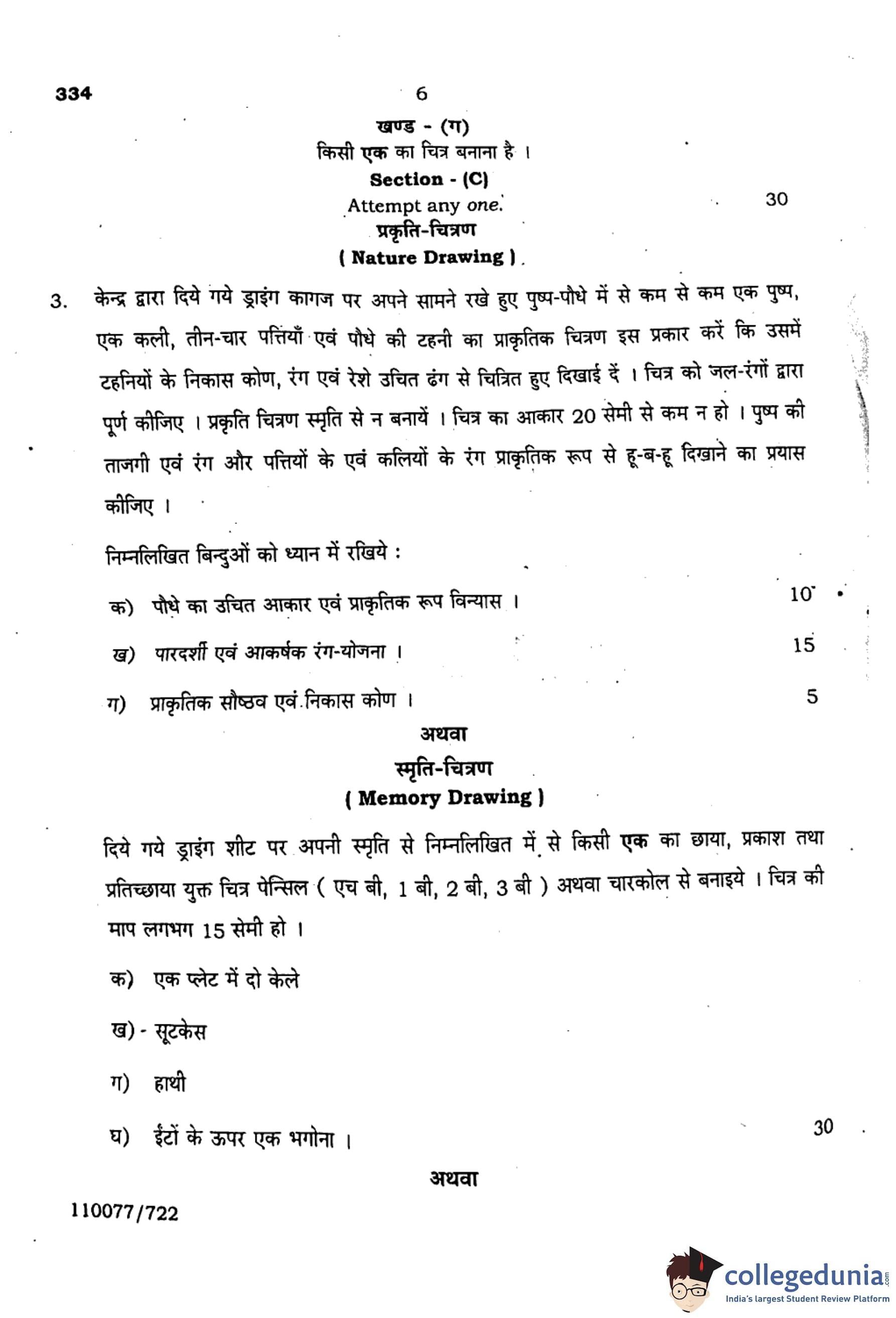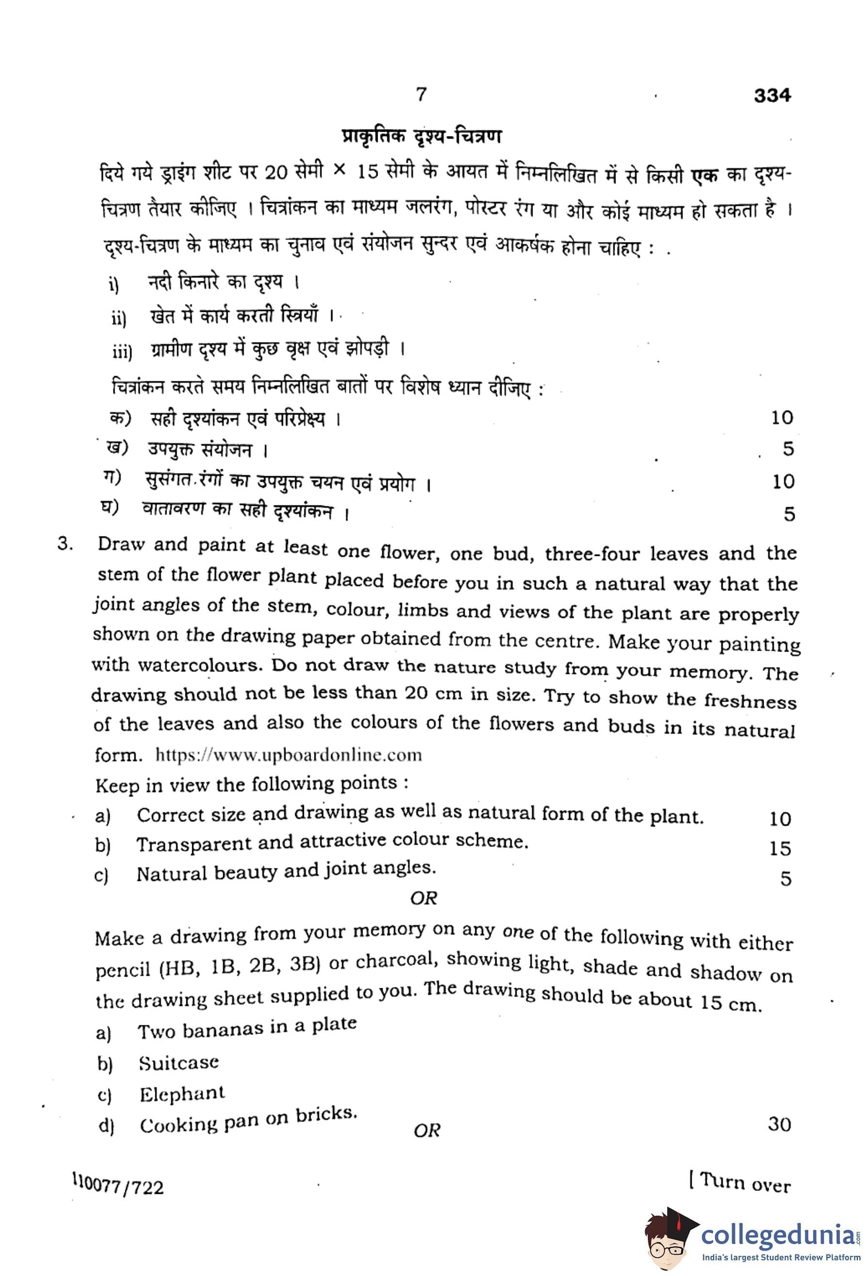 UP Board Class 12 Chitrakala Alekhan (Code 334) Question Paper with Solutions PDF