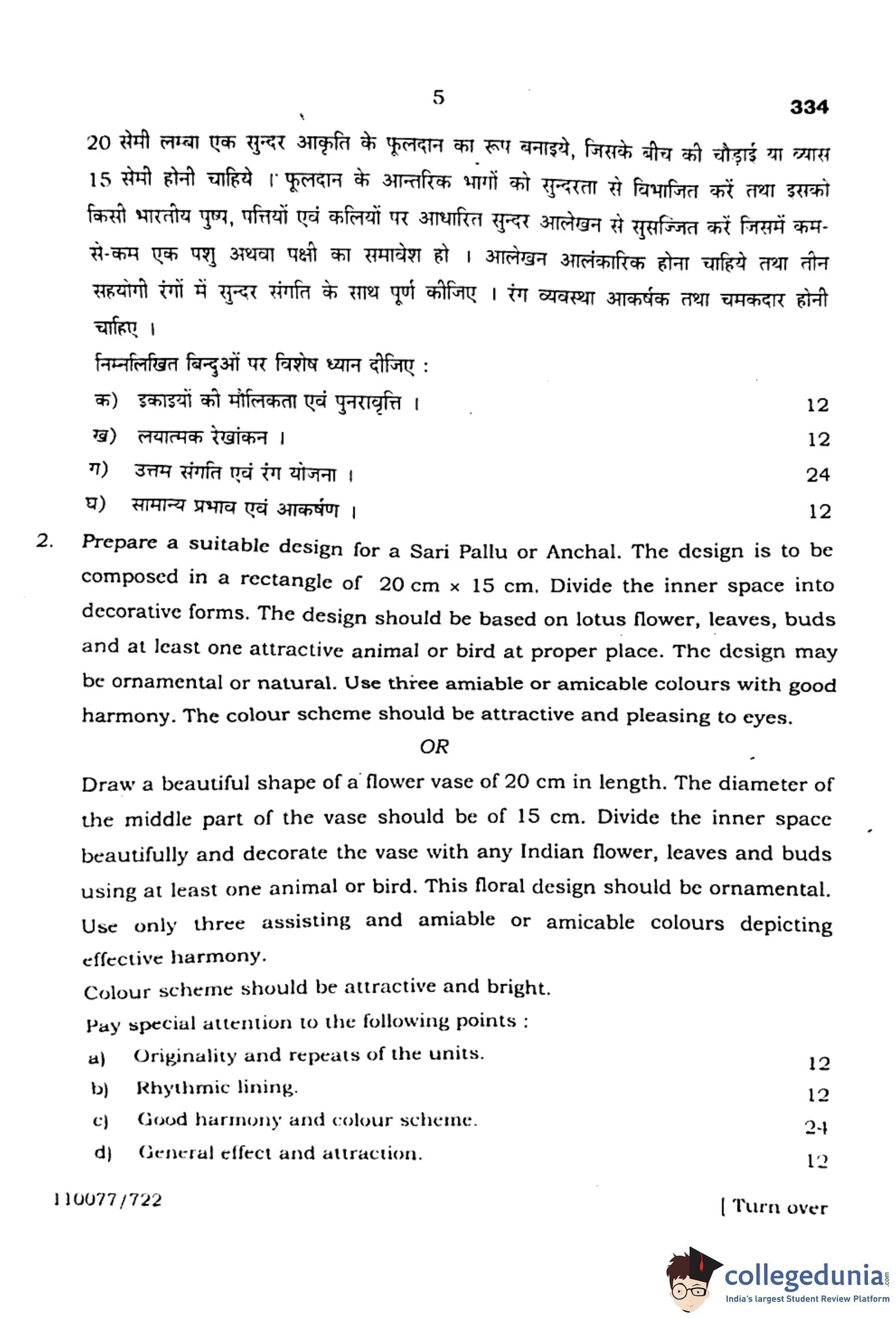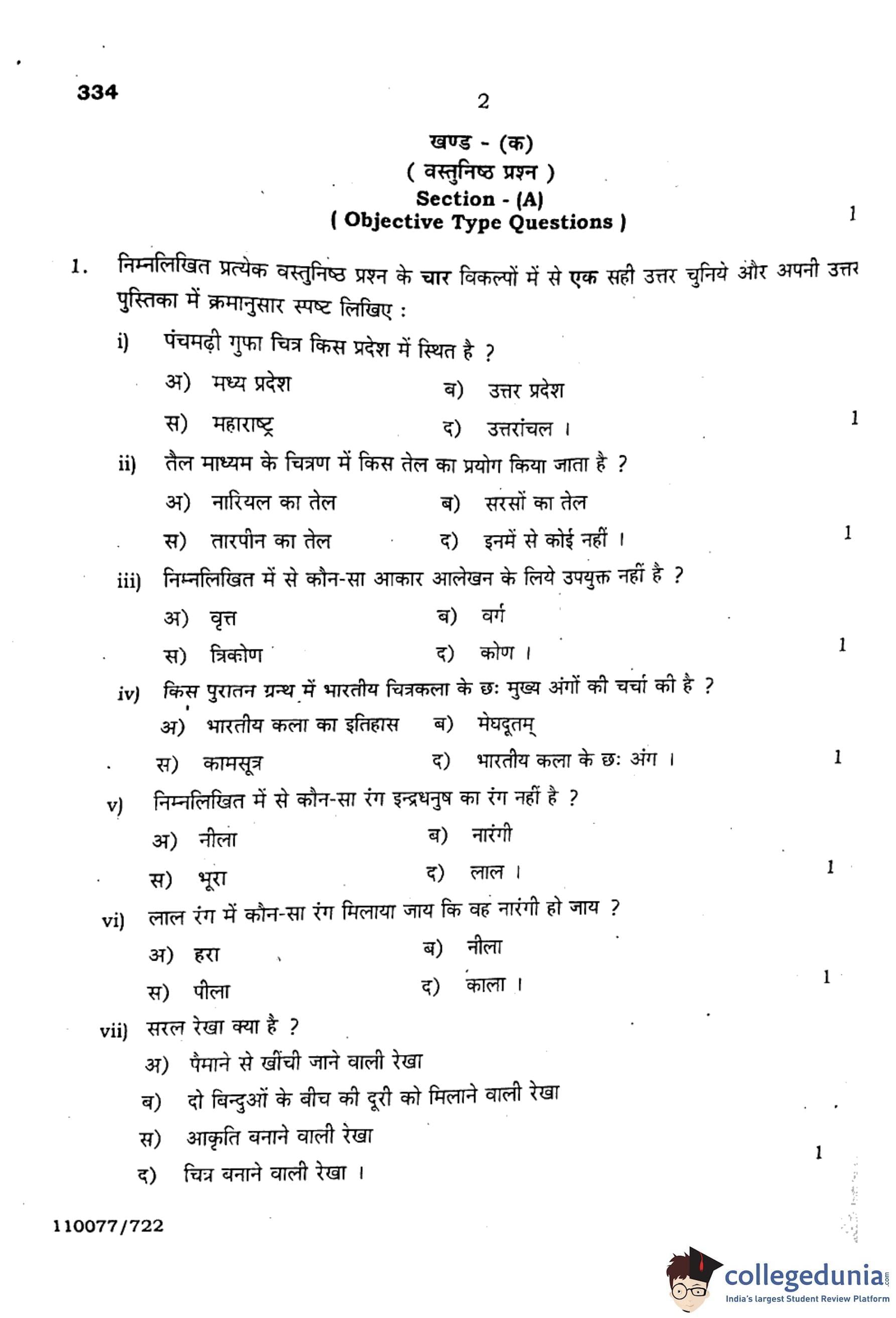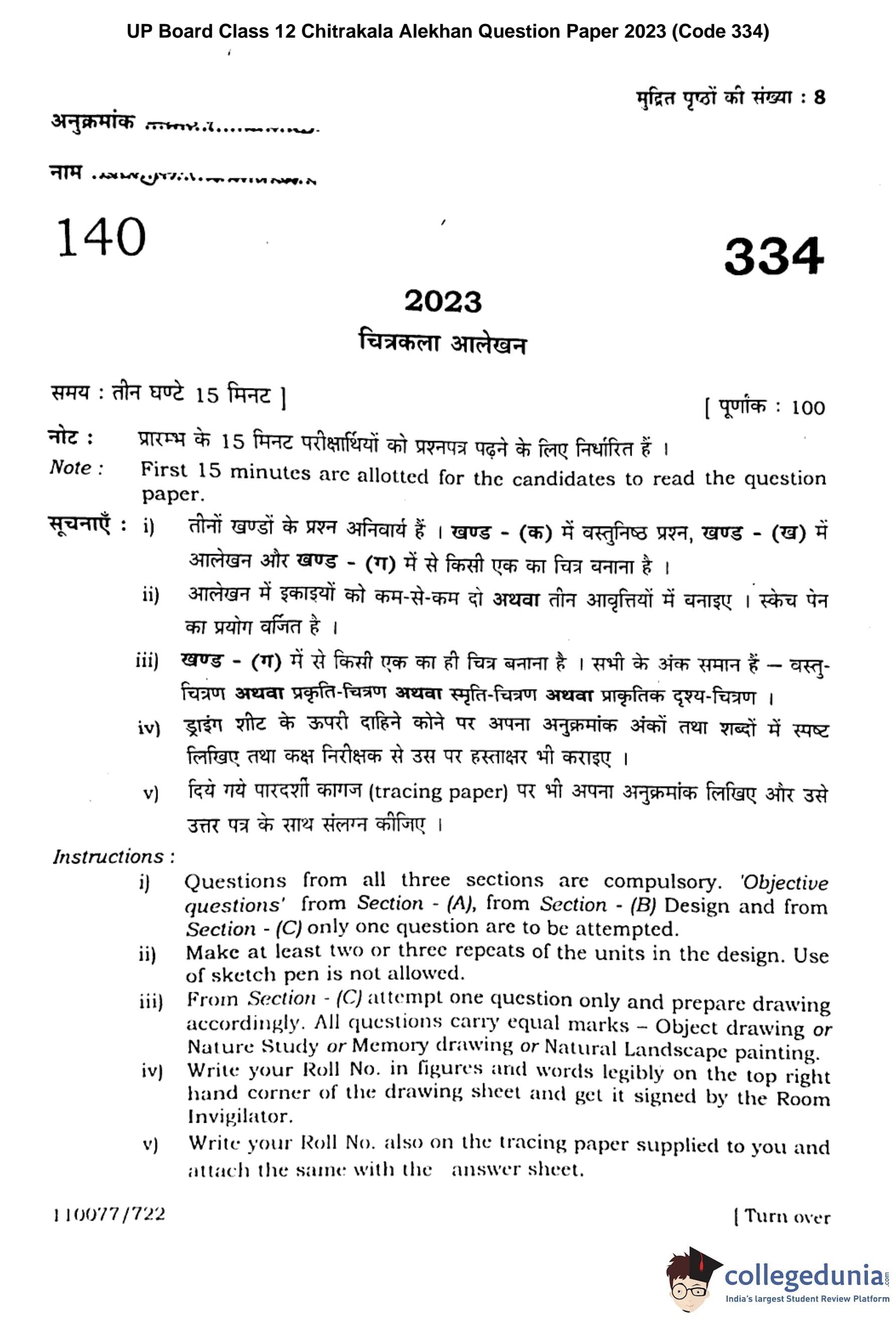UP Board Class 12 Chitrakala Alekhan (Code 334) Question Paper with Solutions PDF