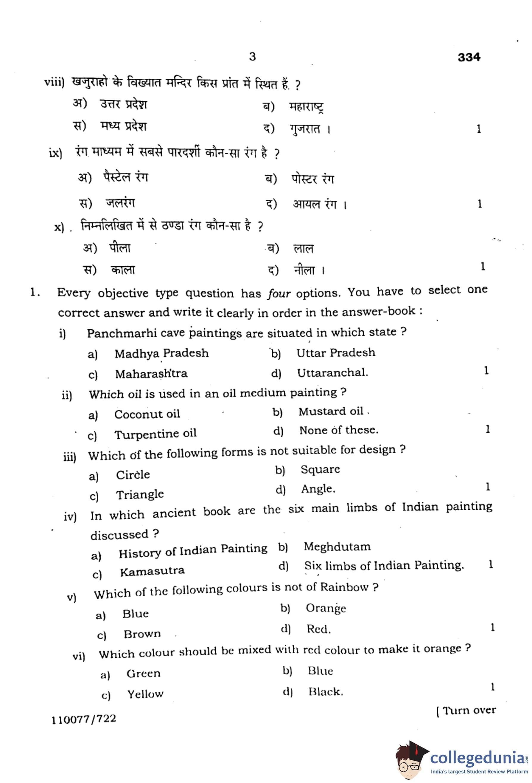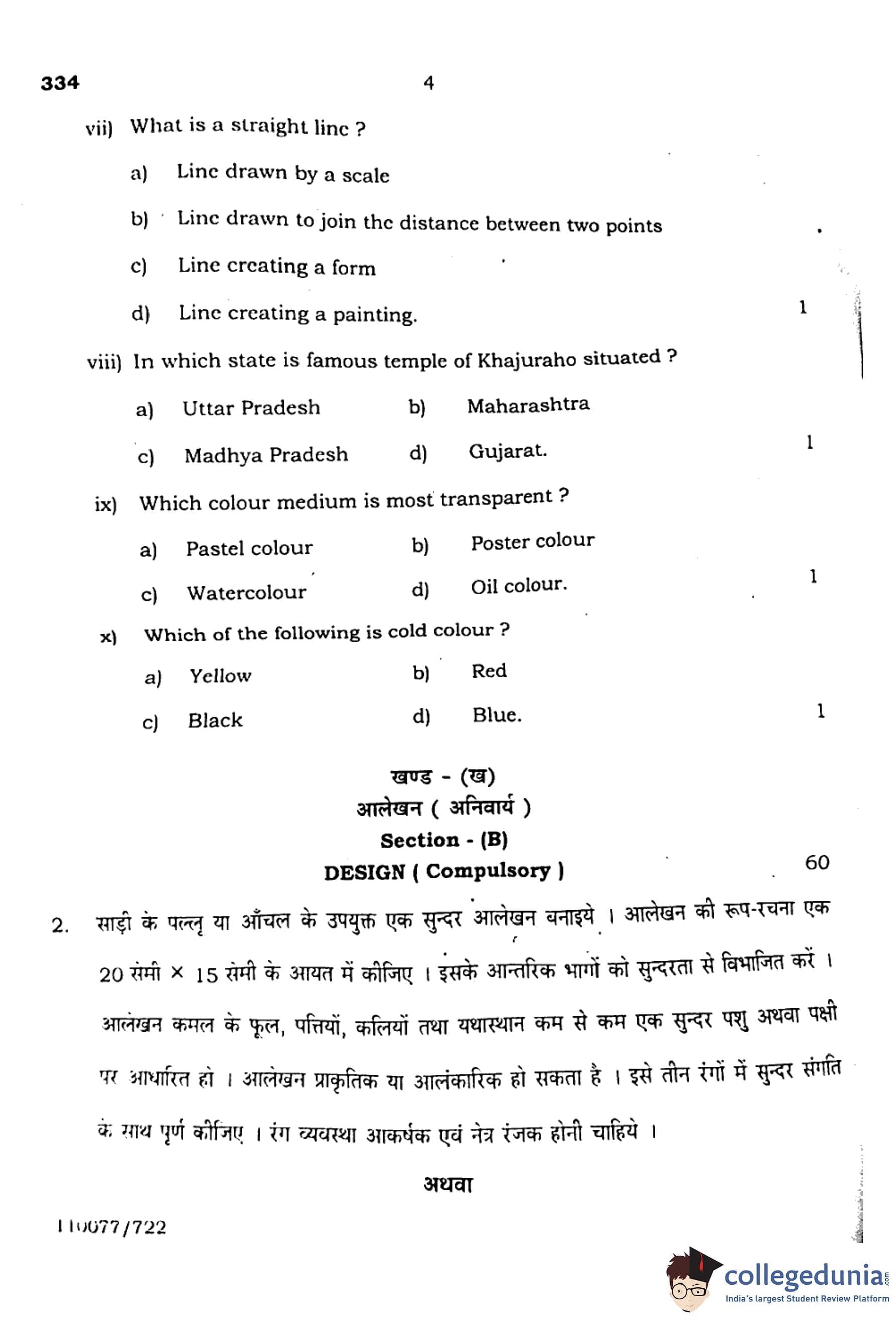 UP Board Class 12 Chitrakala Alekhan Question Paper with Answer Key Code 334 is available for download. The exam was conducted by the Uttar Pradesh Madhyamik Shiksha Parishad (UPMSP) on February 22, 2023 in Morning Session 8 AM to 11:15 AM. The medium of paper was English and Hindi. In terms of difficulty level, UP Board Class 12 Chitrakala Alekhan paper was . The question paper comprised a total of 3 questions.