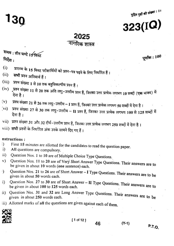 UP Board Class 12 Civics Question Paper 2025 PDF (Code 323 IQ) is available for download here. The Mathematics exam was conducted on March 1, 2025 in the Evening Shift from 2:00 PM to 5:15 PM. The total marks for the theory paper are 100. Students reported the paper to be easy to moderate.