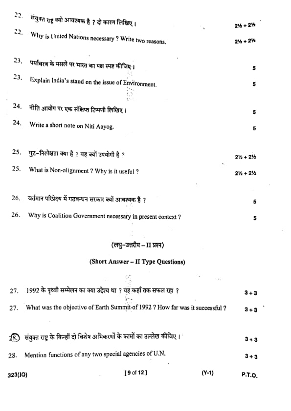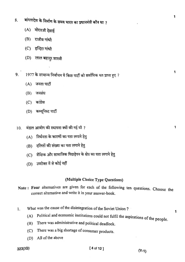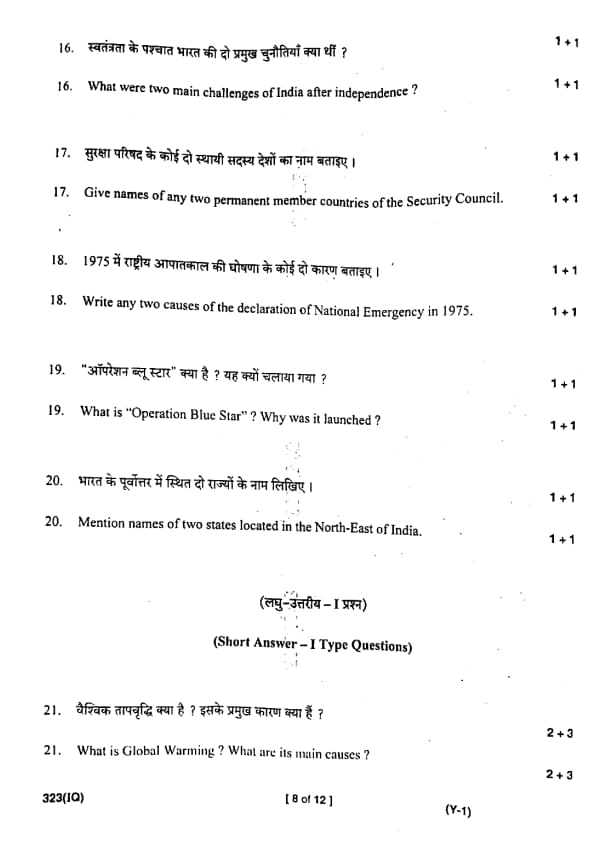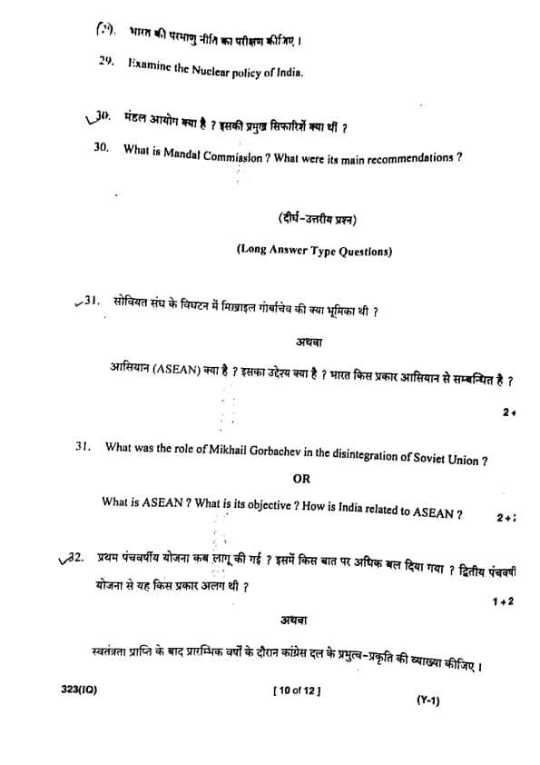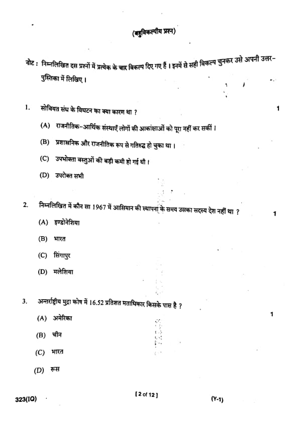 UP Board Class 12 Civics Question Paper 2025 (Code 323 IQ) with Solutions