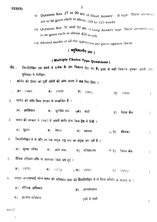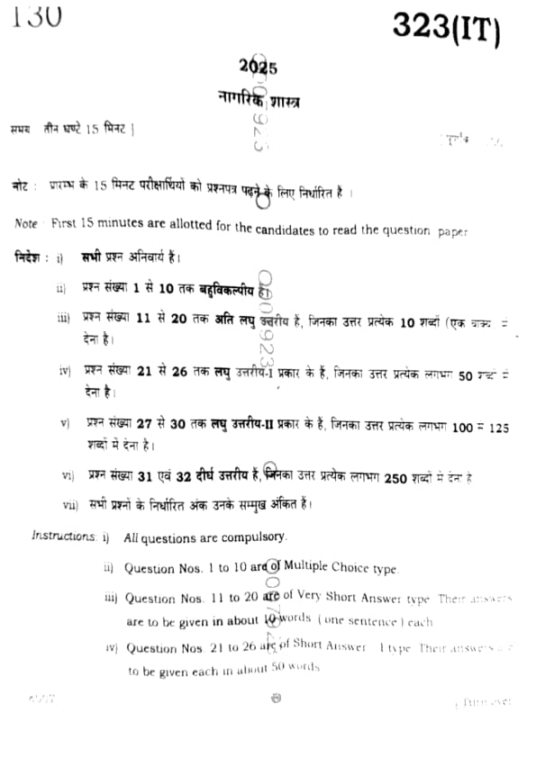UP Board Class 12 Civics Question Paper 2025 (Code 323 IT) with Solutions