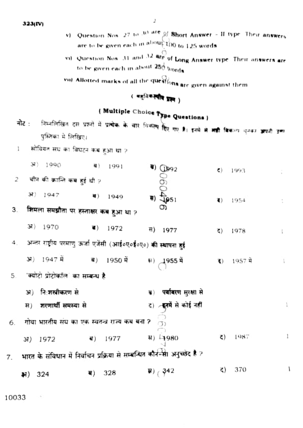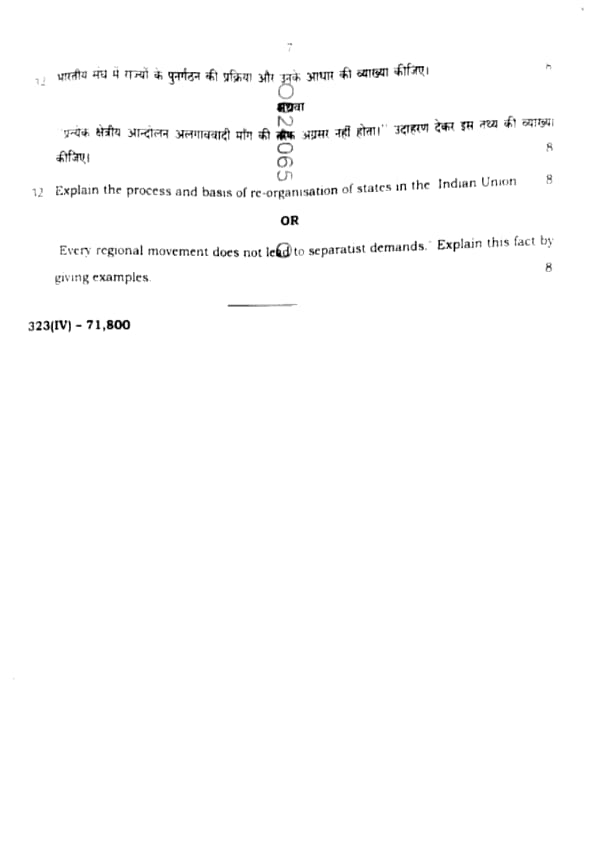 UP Board Class 12 Civics Question Paper 2025 (Code 323 IV) with Solutions