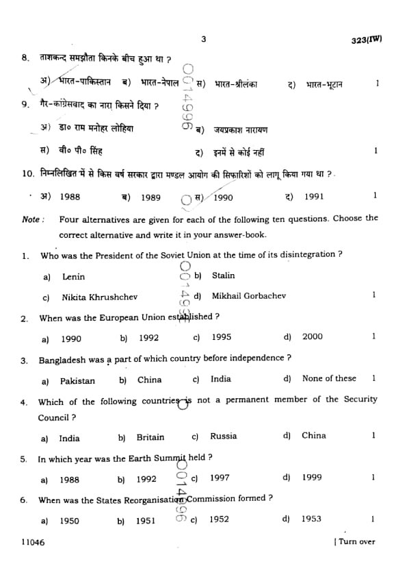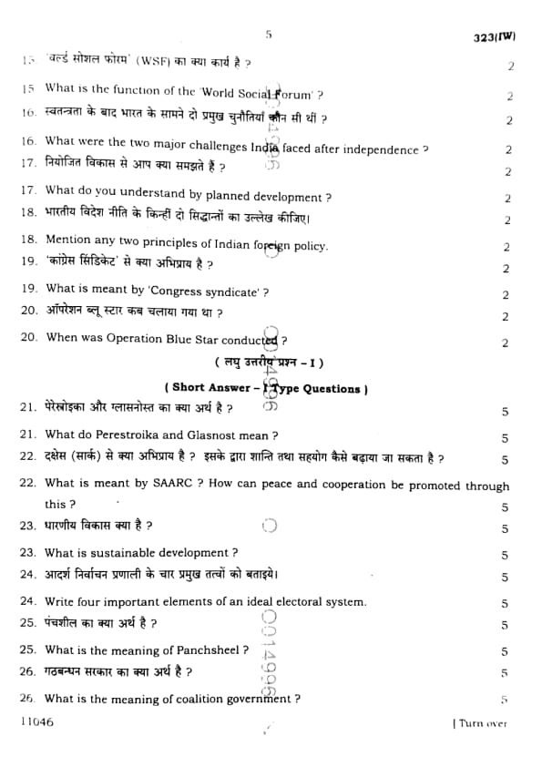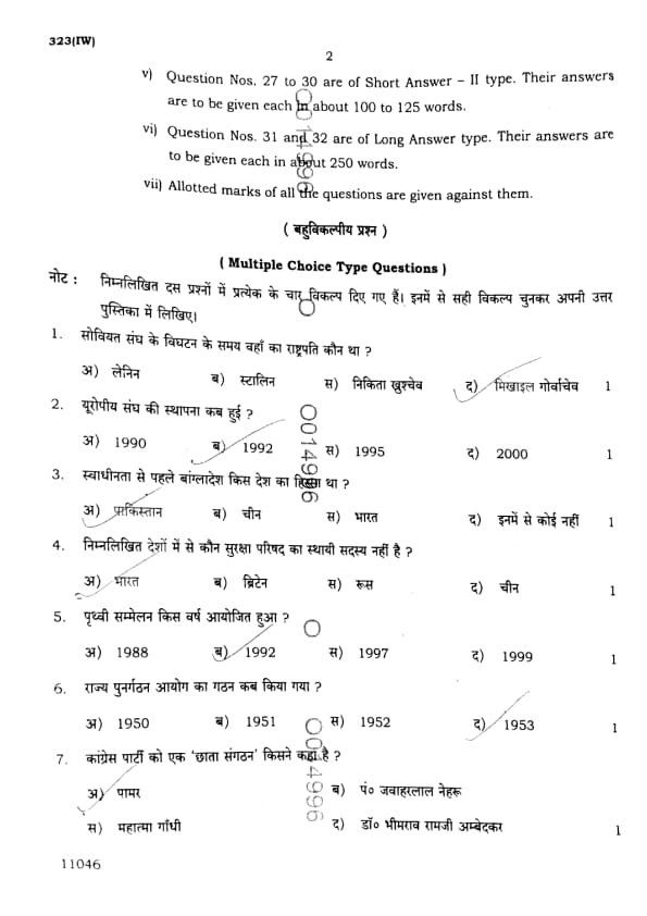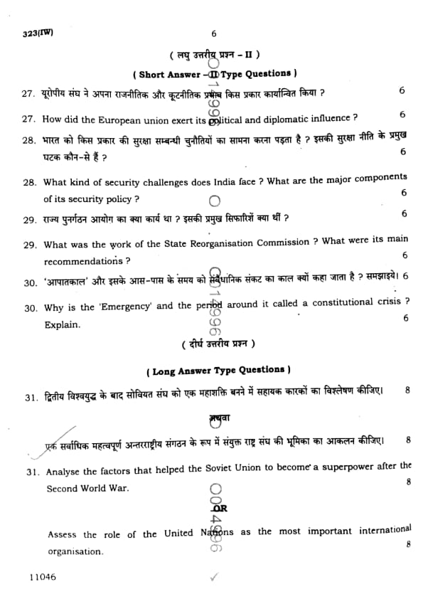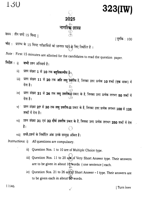 UP Board Class 12 Civics Question Paper 2025 (Code 323 IW) with Solutions