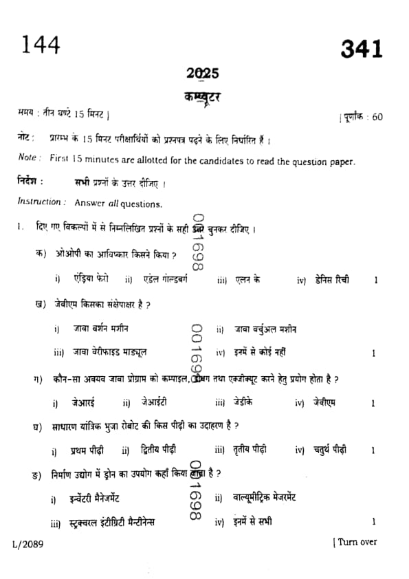 UP Board Class 12 Computer Question Paper 2025 PDF (Code 341) is available for download here. The Mathematics exam was conducted on March 7, 2025 in the Morning Shift from 8:30 AM to 11:45 AM. The total marks for the theory paper are 100. Students reported the paper to be easy to moderate.