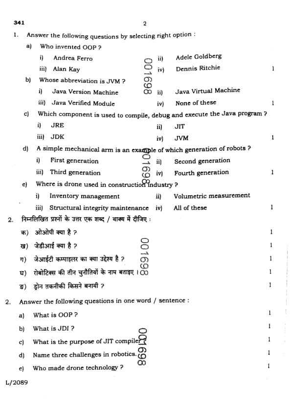 UP Board Class 12 Computer Question Paper 2025 (Code 341) with Solutions