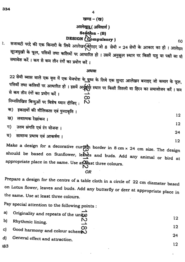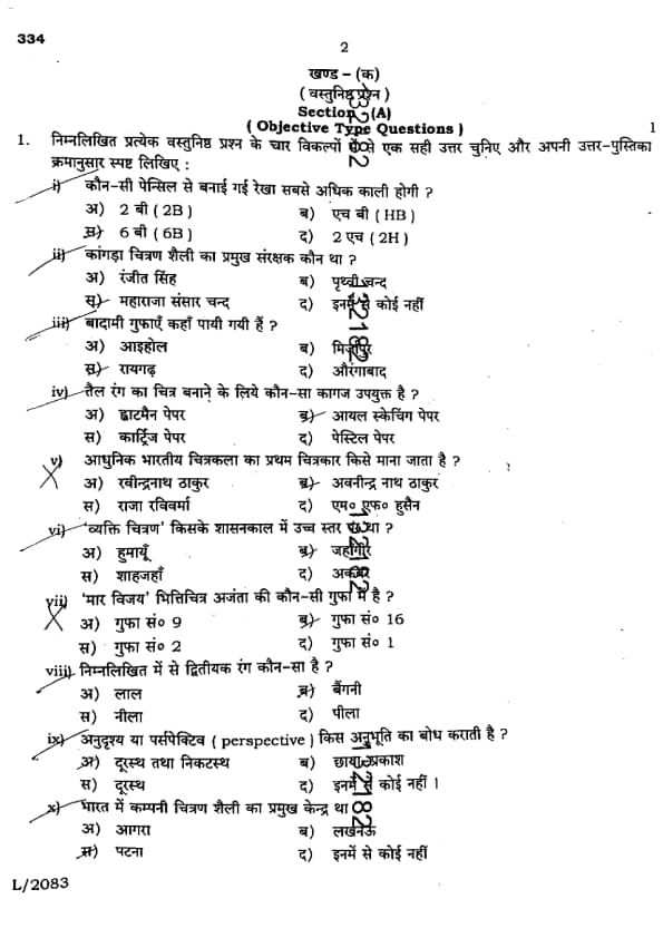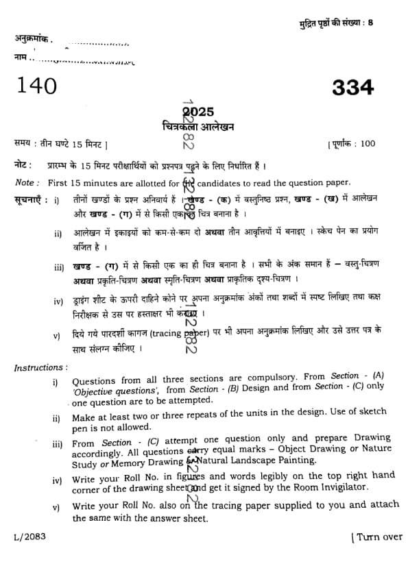 UP Board Class 12 Drawing Question Paper 2025 (Code 334) with Solutions