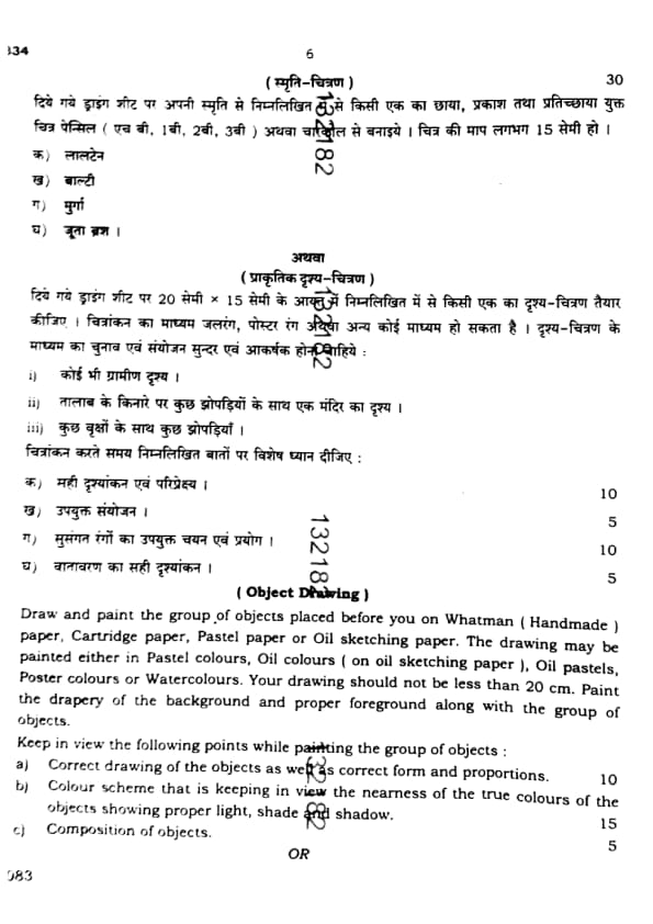 Draw and paint the group of objects placed before you on Whatman (Handmade) paper, Cartridge paper, Pastel paper or Oil sketching paper. The drawing may be painted either in Pastel colours, Oil colours (on oil sketching paper), Oil pastels, Poster colours or Watercolours. Your drawing should not be less than 20 cm. Paint the drapery of the background and proper foreground along with the group of objects.