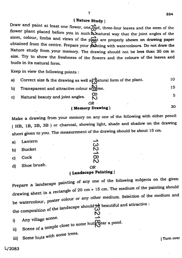 Draw and paint at least one flower, one bud, three-four leaves and the stem of the flower plant placed before you in such a natural way that the joint angles of the stem, colour, limbs and views of the plant are properly shown on drawing paper obtained from the centre. Prepare your painting with watercolours. Do not draw the nature study from your memory. The drawing should not be less than 20 cm in size. Try to show the freshness of the flowers and the colours of the leaves and buds in its natural form.