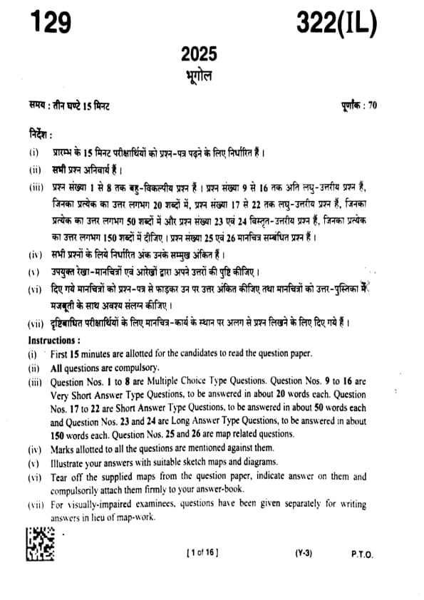 UP Board Class 12 Geography Question Paper 2025 (Code 322 IL) with Solutions