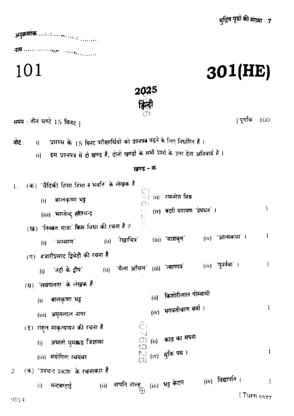 UP Board Class 12 Hindi Question Paper 2025 PDF (Code 301 HE) is available for download here. The Mathematics exam was conducted on March 9, 2025 in the Evening Shift from 2:00 PM to 5:15 PM. The total marks for the theory paper are 100. Students reported the paper to be easy to moderate.