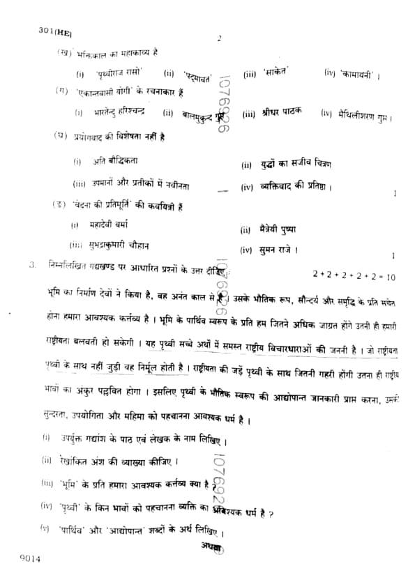 UP Board Class 12 Hindi Question Paper 2025 (Code 301 HE) with Solutions