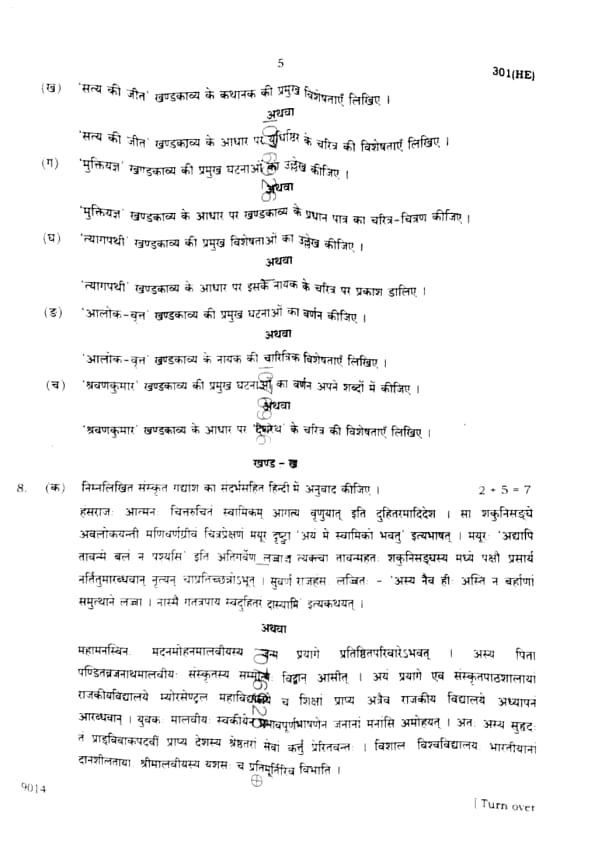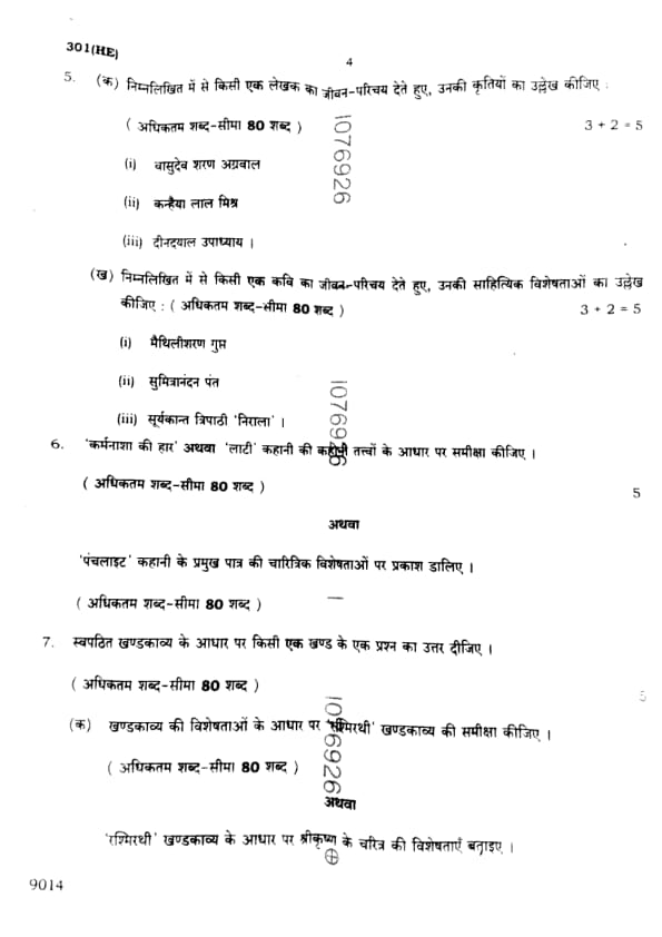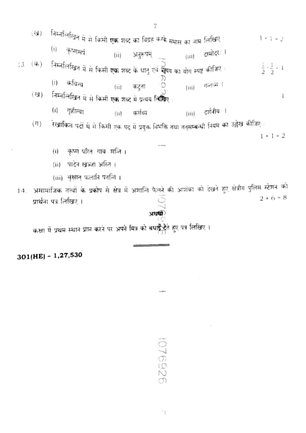 | UP Board Class Hindi Question Paper with Answer Key | Check Solutions |