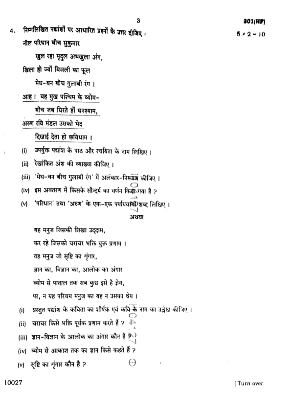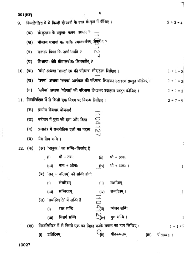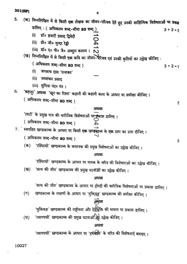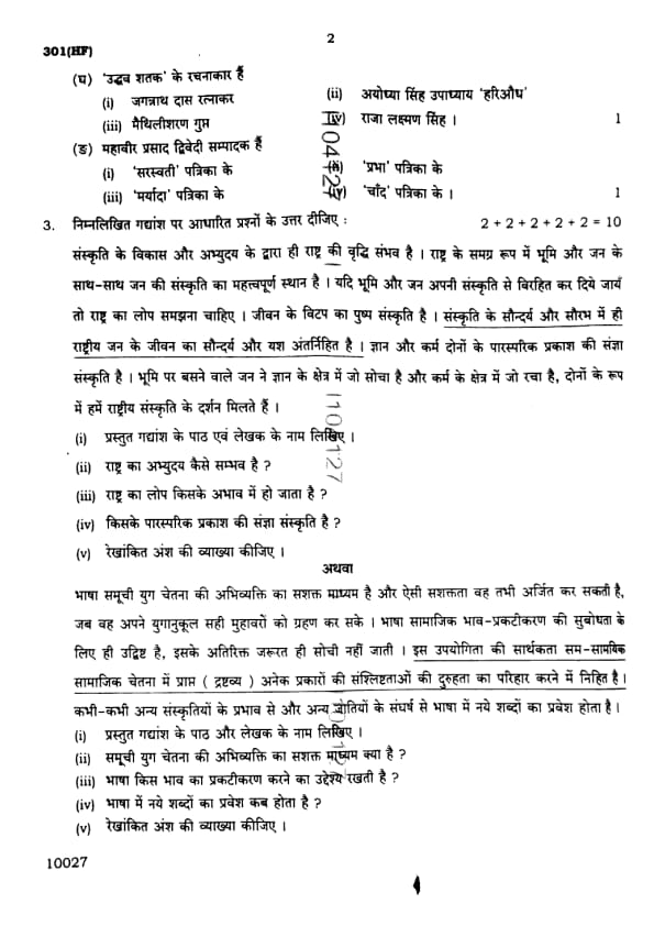| UP Board Class Hindi Question Paper with Answer Key | Check Solutions |