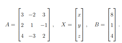 The given system can be written as: \[ AX = B \]
