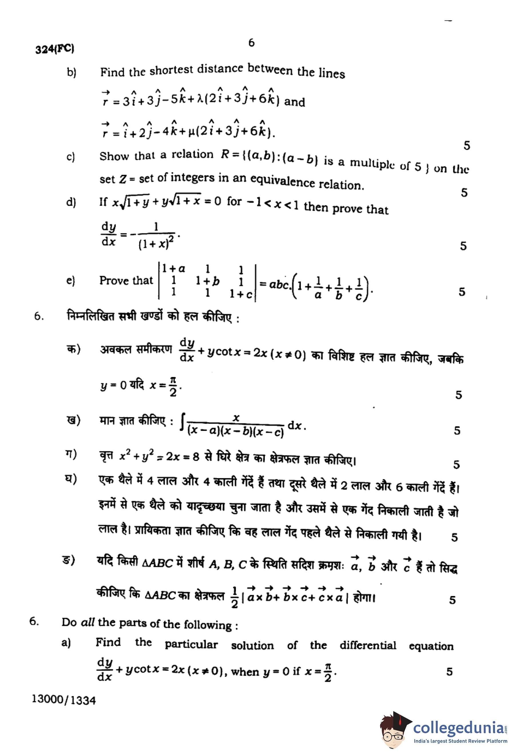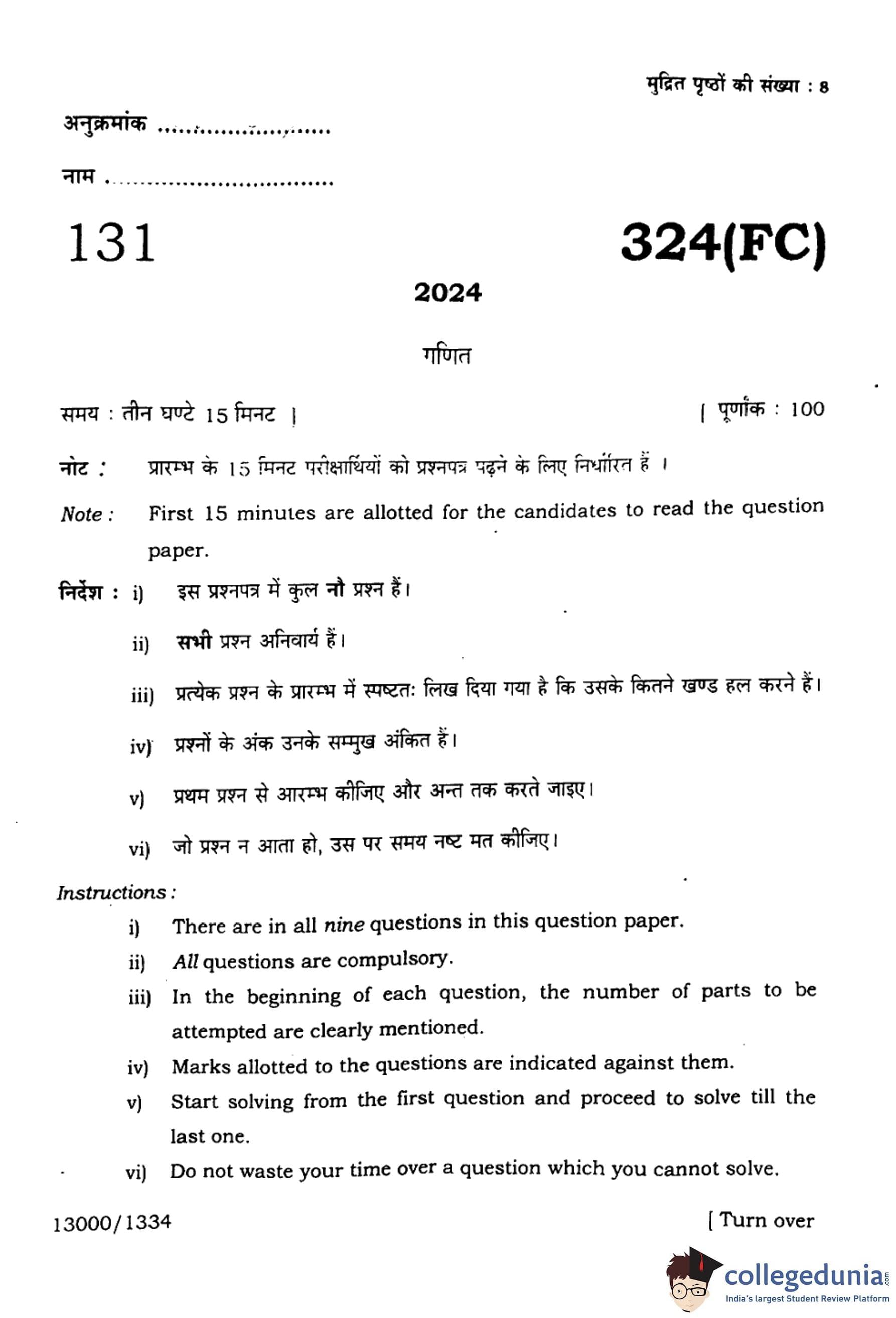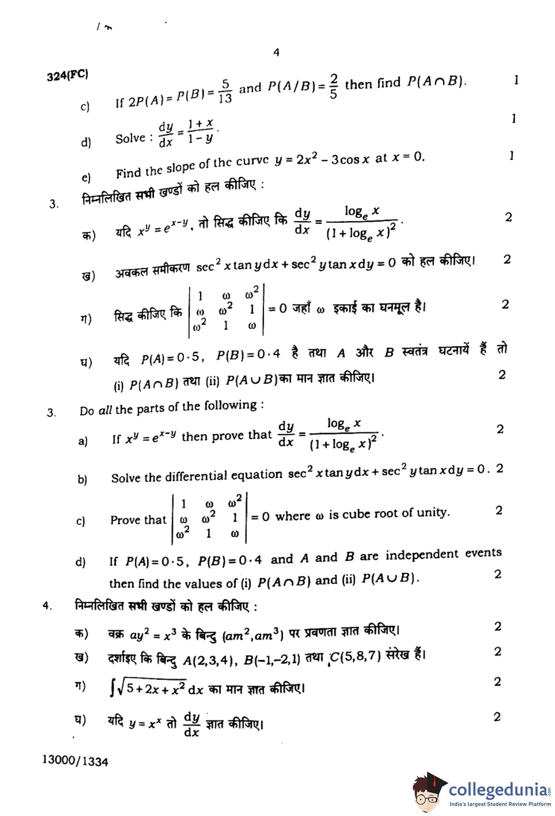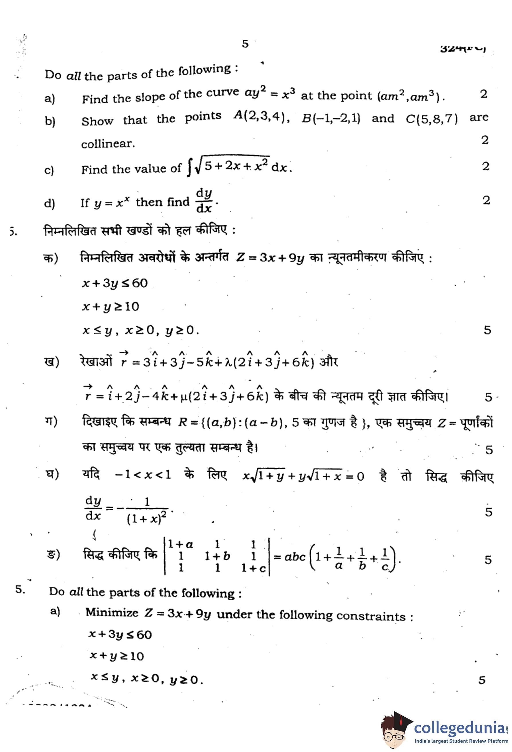 UP Board Class 12 Mathematics Question Paper 2024 (Code 324 FC) with Solutions