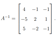 Since \( \det(A) = 1 \), we compute \( adj(A) \) and find: