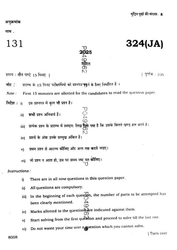 UP Board Class 12 Mathematics Question Paper 2025 PDF (Code 324 JA) is available for download here. The Mathematics exam was conducted on March 3, 2025 in the Morning Shift from 8:30 AM to 11:45 AM. The total marks for the theory paper are 100. Students reported the paper to be easy to moderate.