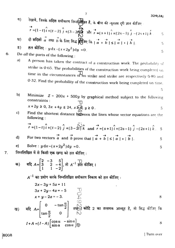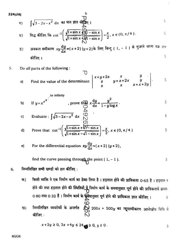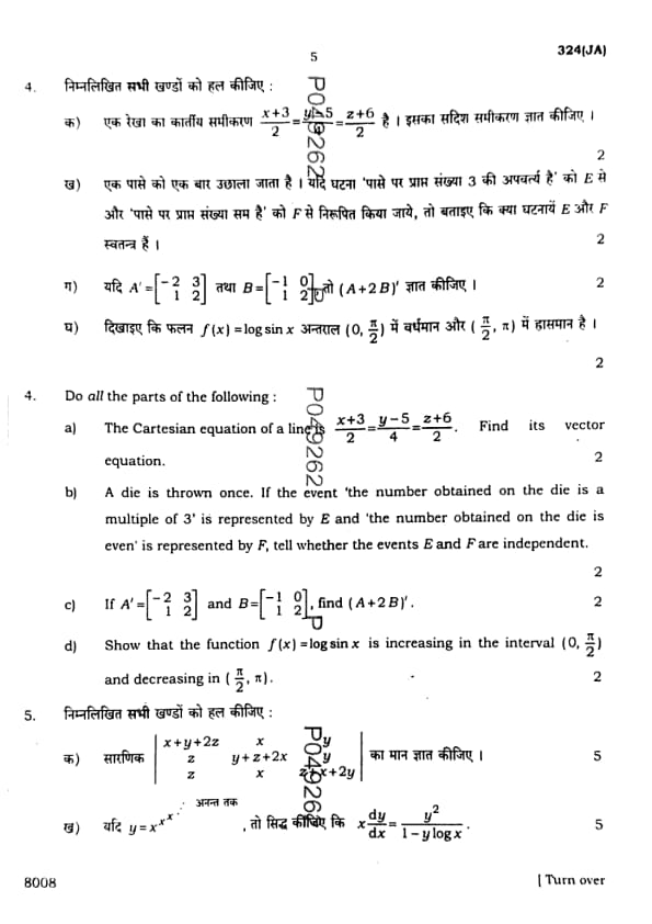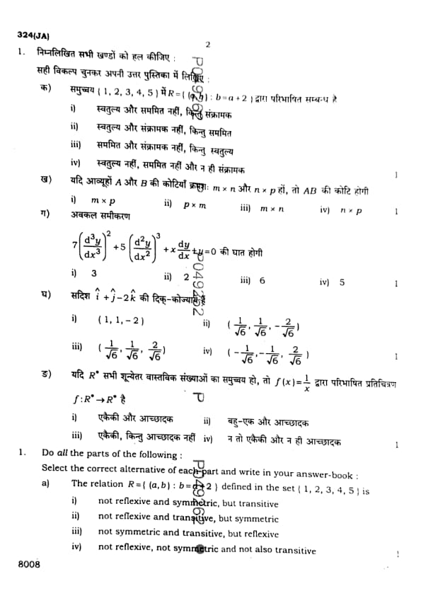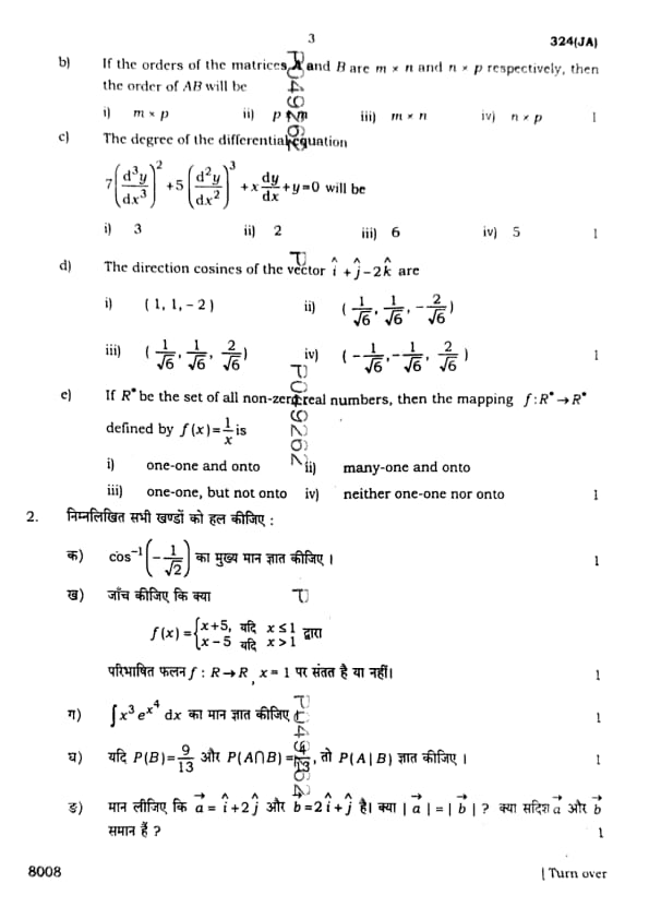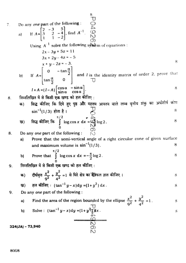 UP Board Class 12 Mathematics Question Paper 2025 (Code 324 JA) with Solutions
