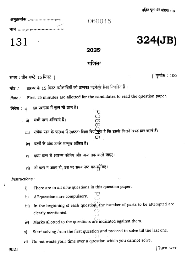UP Board Class 12 Mathematics Question Paper 2025 PDF (Code 324 JB) is available for download here. The Mathematics exam was conducted on March 3, 2025 in the Morning Shift from 8:30 AM to 11:45 AM. The total marks for the theory paper are 100. Students reported the paper to be easy to moderate.