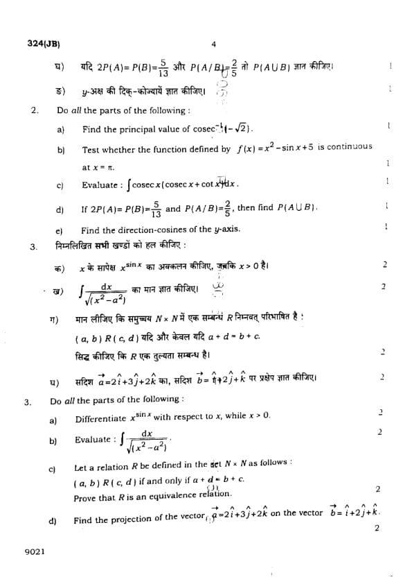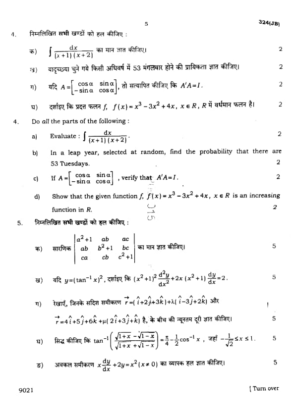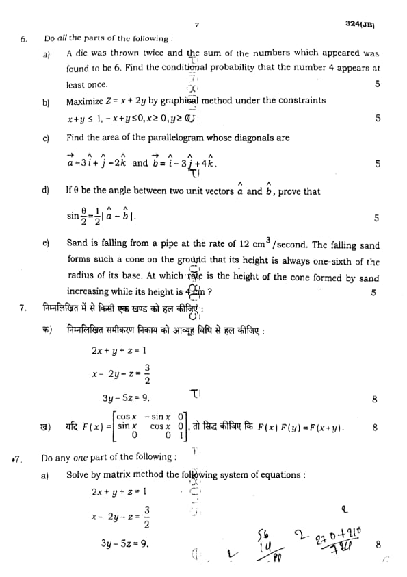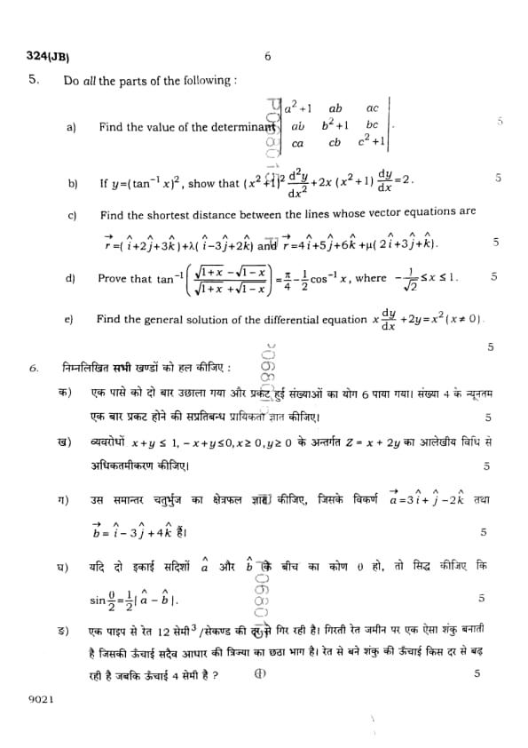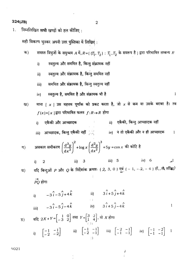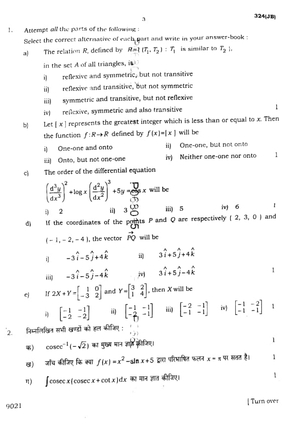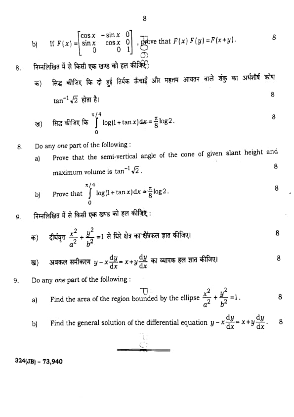 UP Board Class 12 Mathematics Question Paper 2025 (Code 324 JB) with Solutions