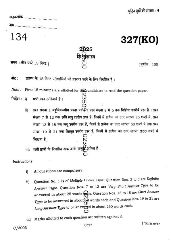 UP Board Class 12 Pedagogy Question Paper 2025 PDF (Code 327 KO) is available for download here. The Mathematics exam was conducted on March 6, 2025 in the Evening Shift from 2:00 PM to 5:15 PM. The total marks for the theory paper are 100. Students reported the paper to be easy to moderate.