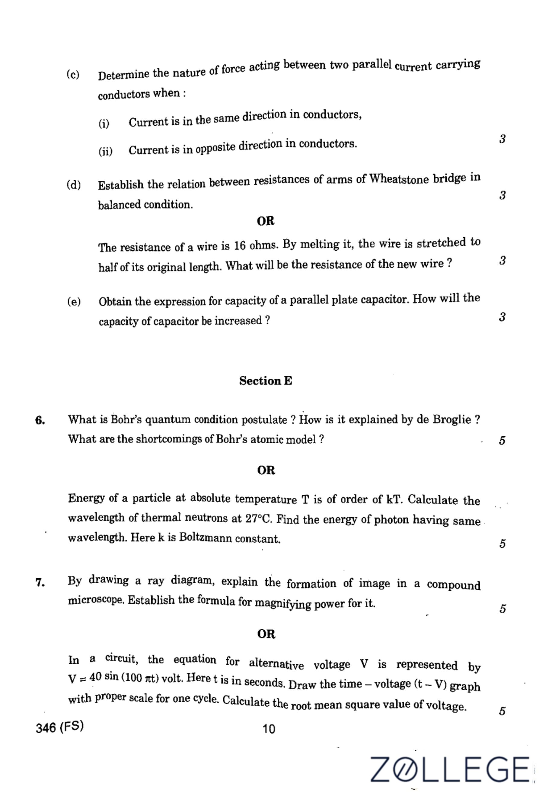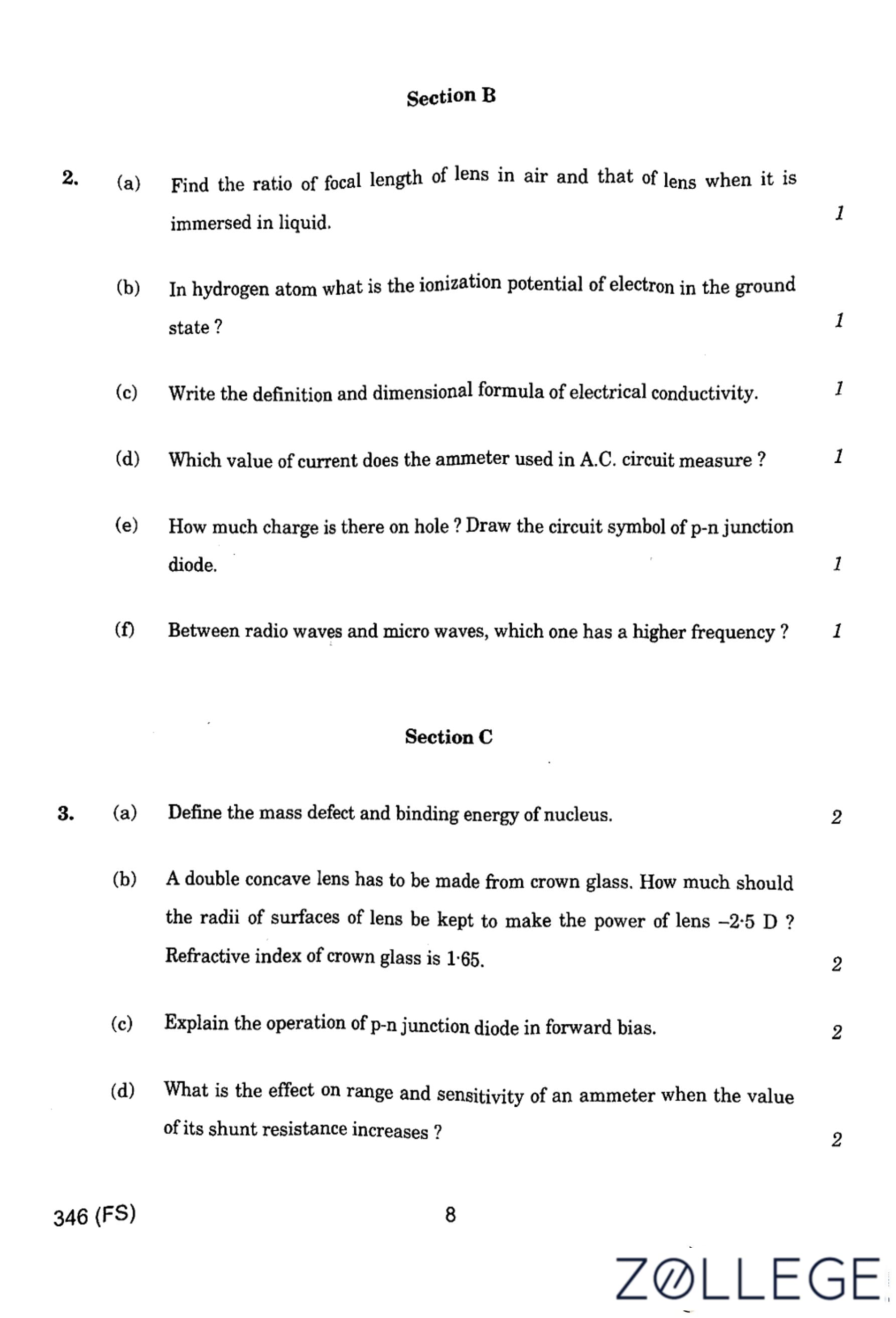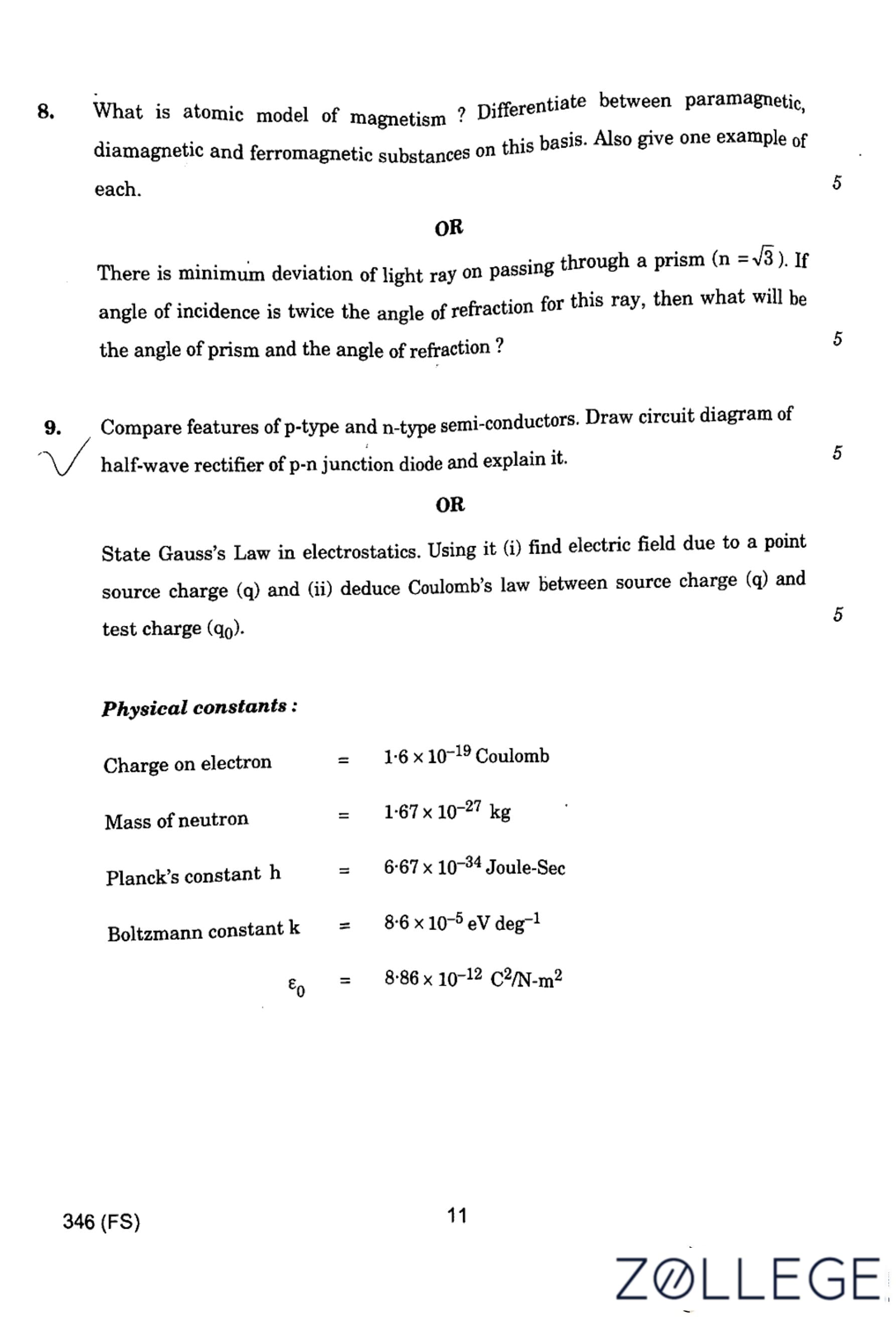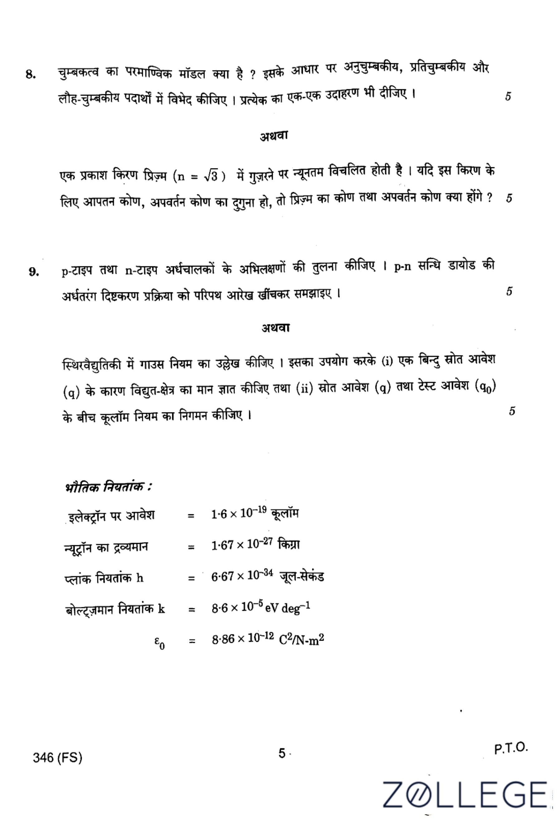 UP Board Class 12 Physics Question Paper 2024 (Code 346 FS) with Solutions
