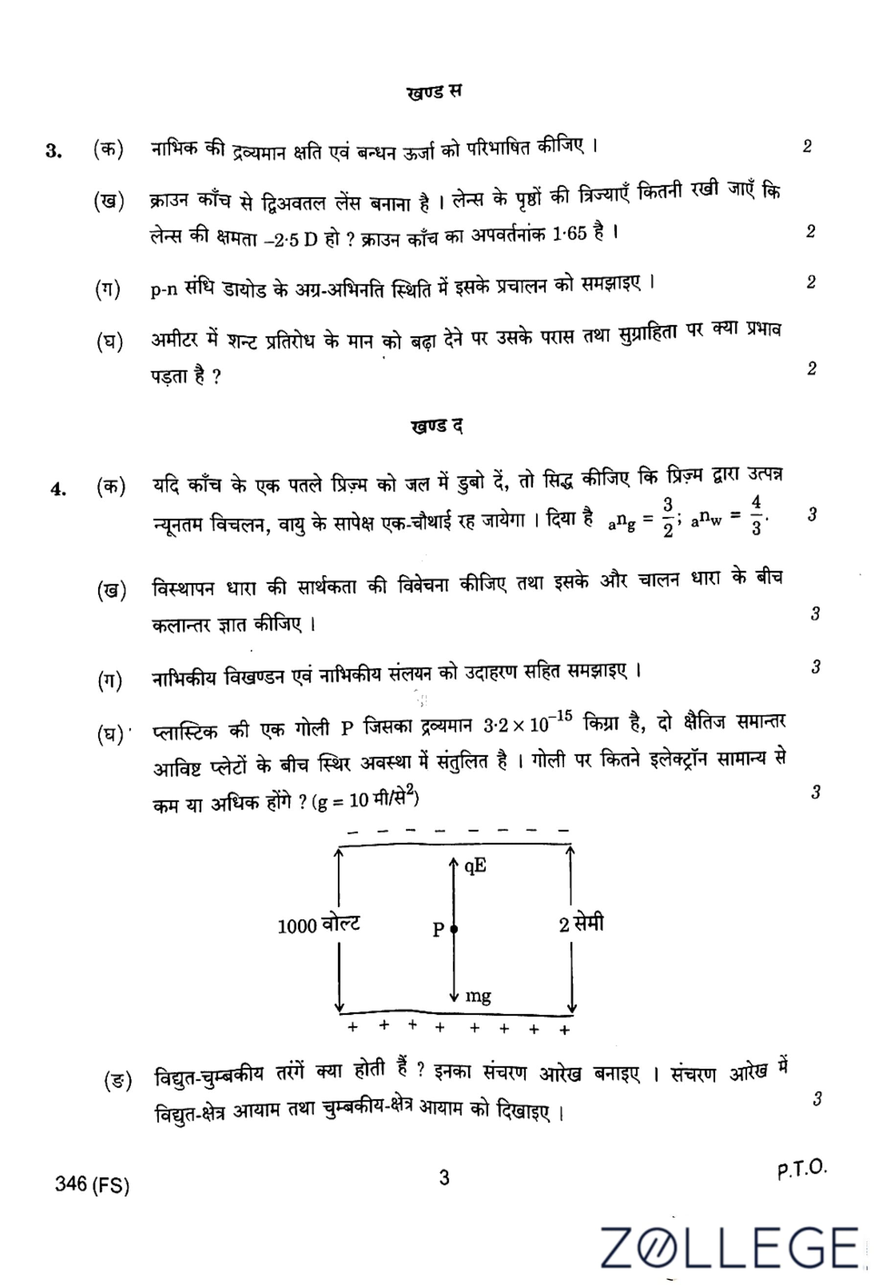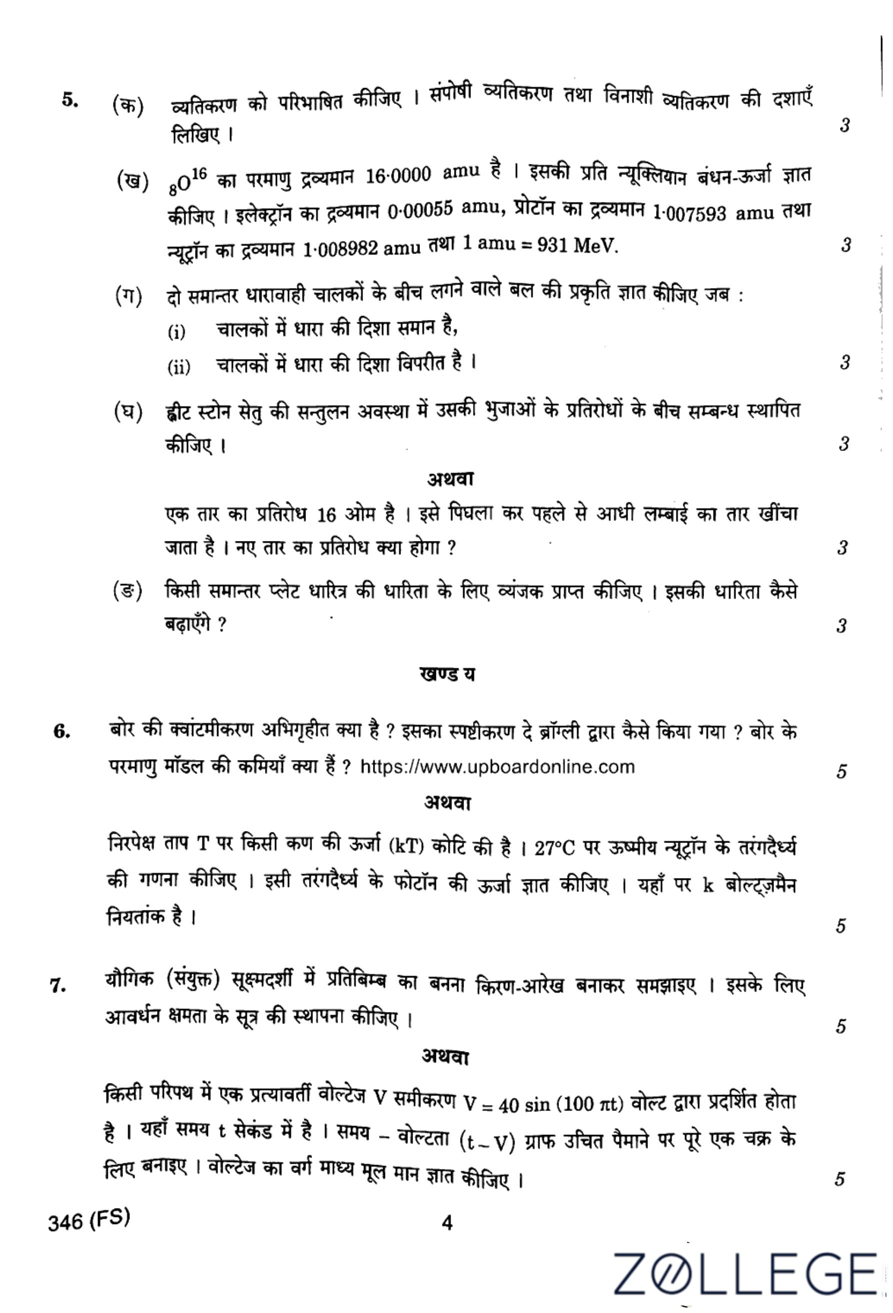 UP Board Class 12 Physics Question Paper 2024 PDF (Code 346 FS) is available for download here. The Physics exam was conducted on March 4, 2024 in the Evening Shift from 2 PM to 5:15 PM. The total marks for the theory paper are 70. Students reported the paper to be easy to moderate.