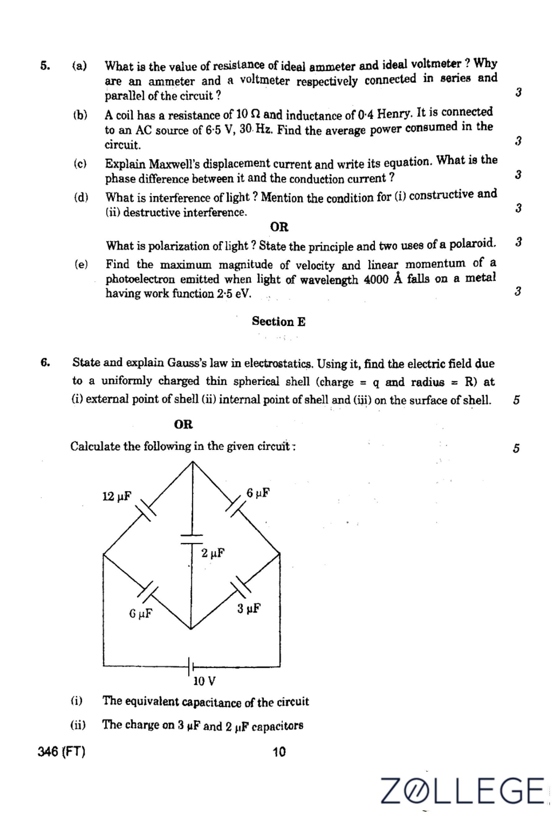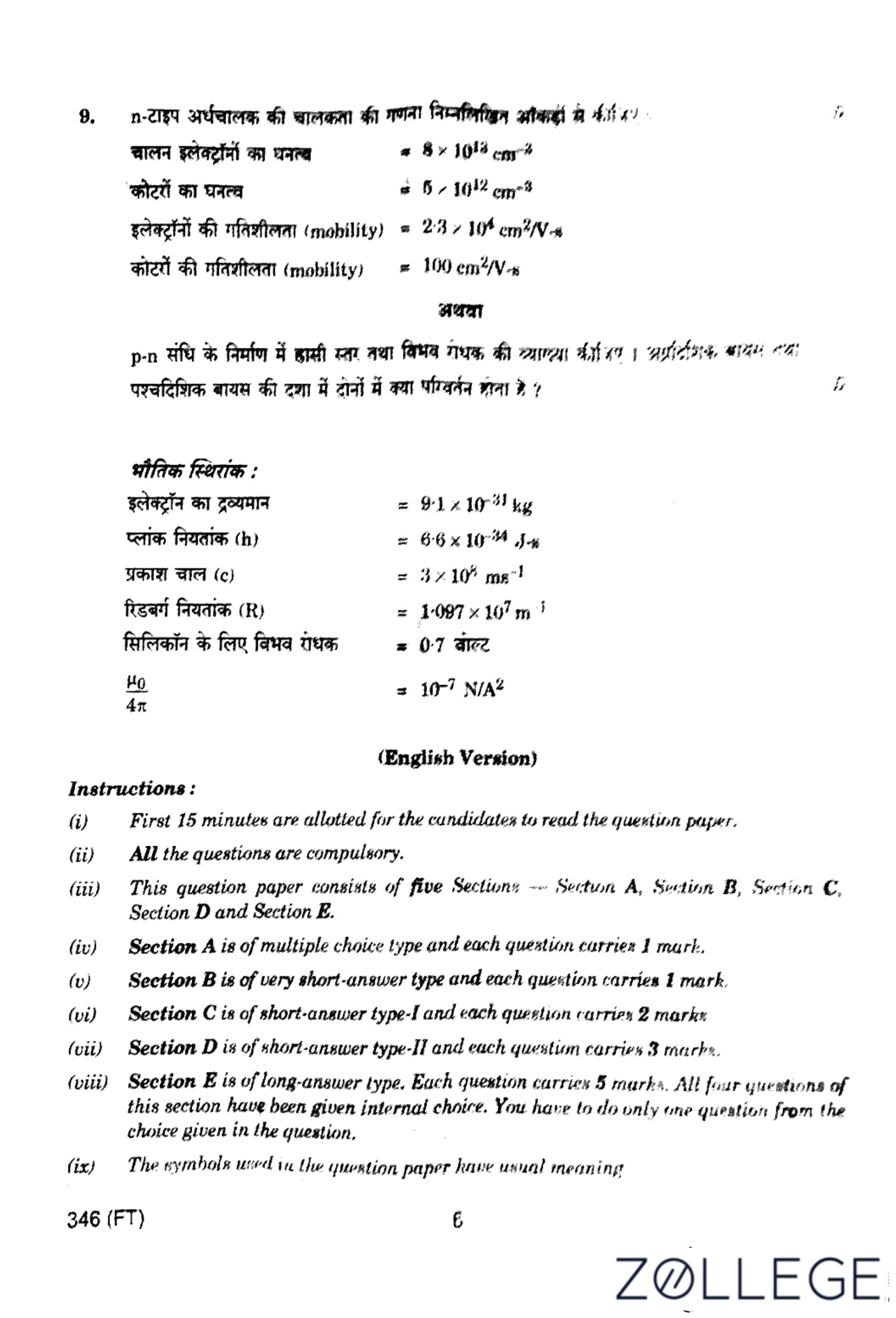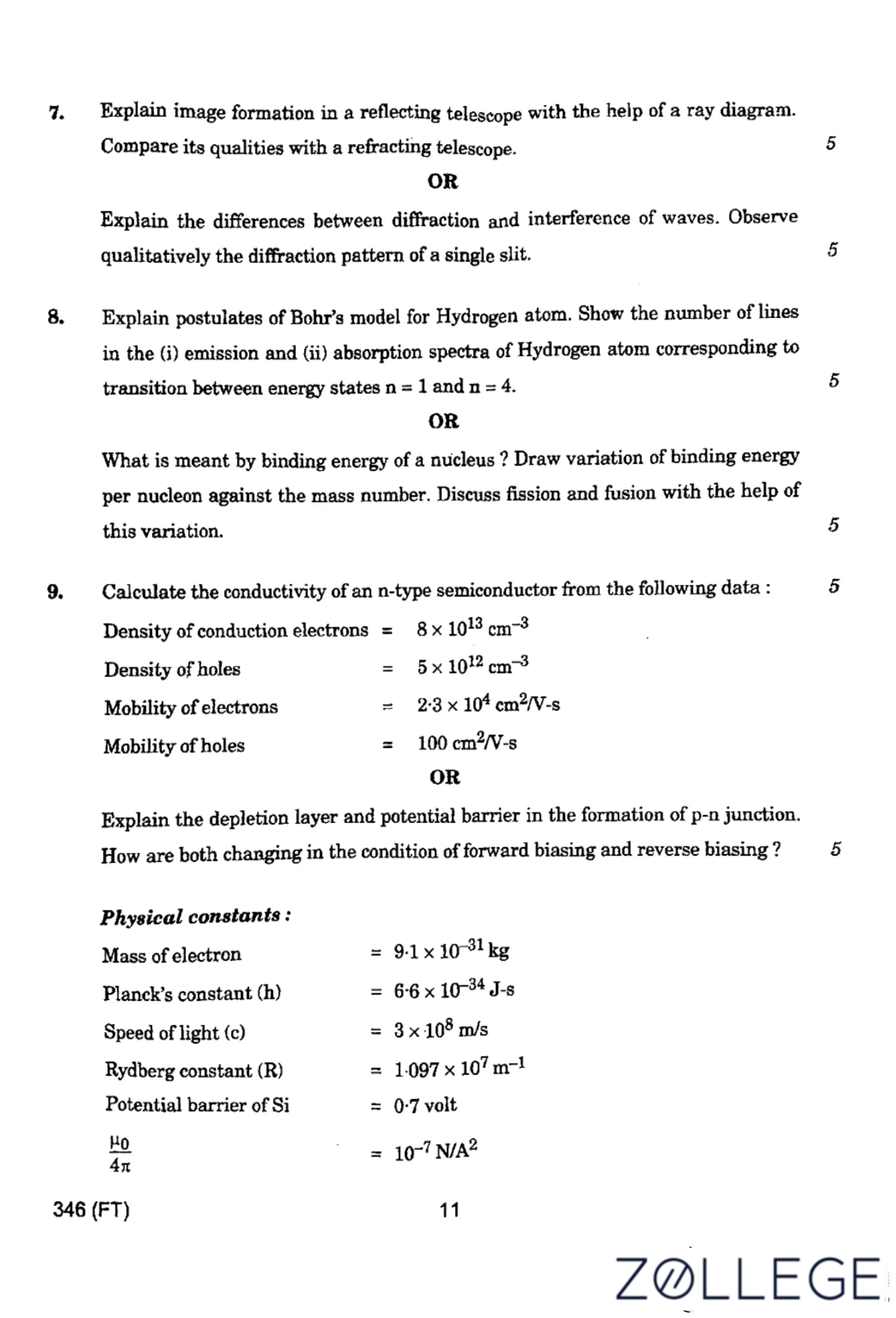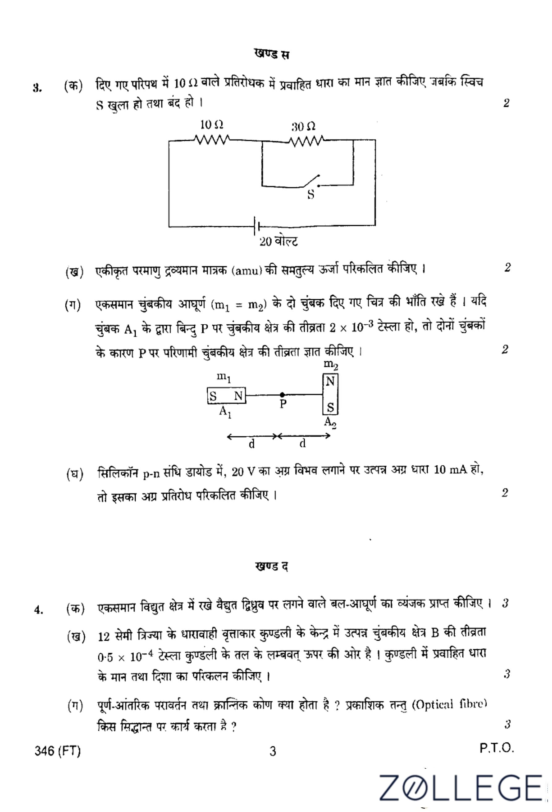 UP Board Class 12 Physics Question Paper 2024 (Code 346 FT) with Solutions