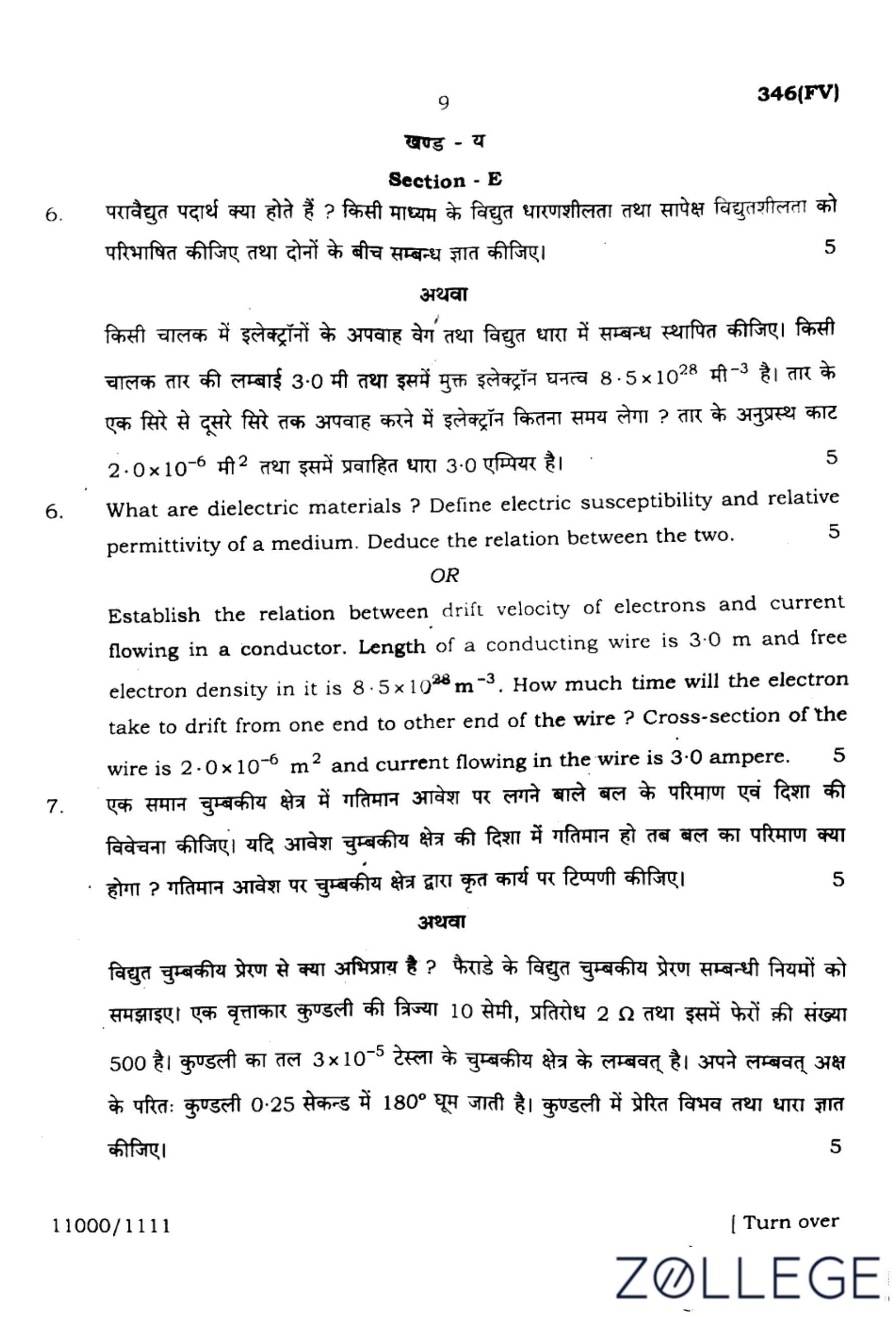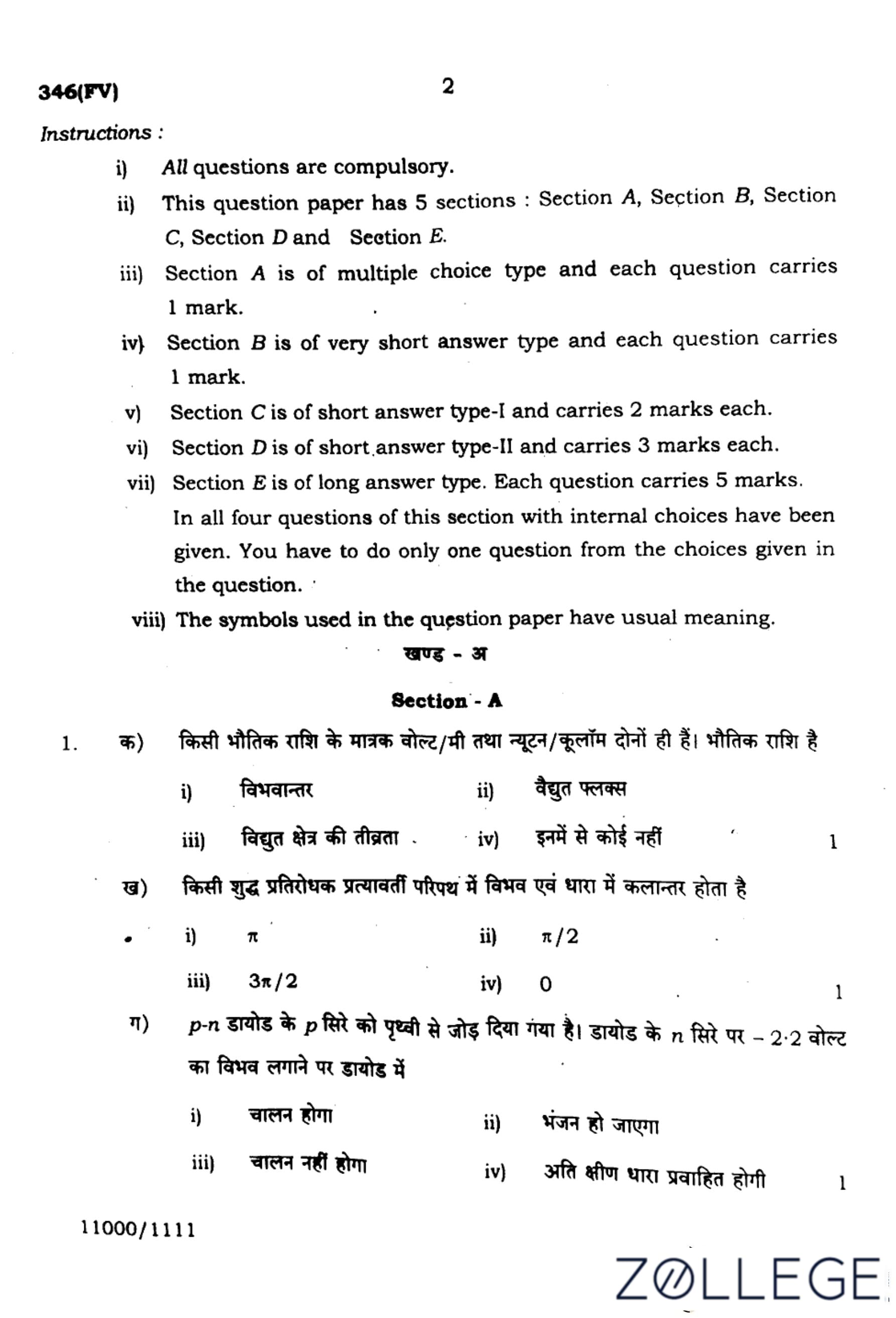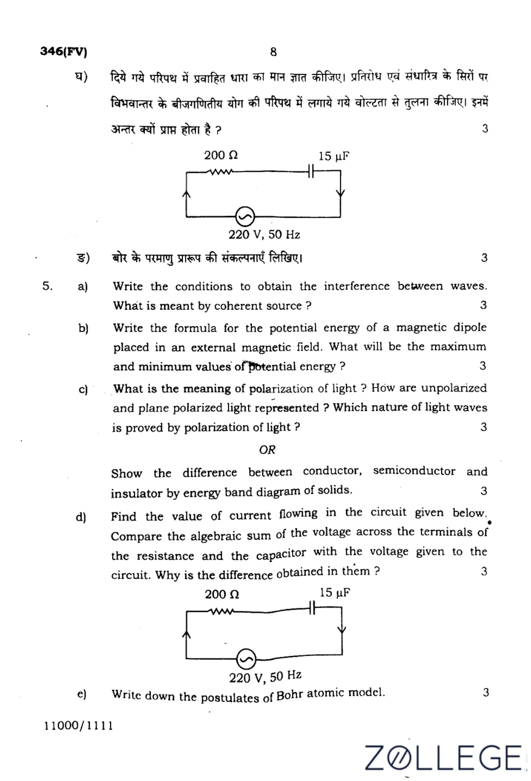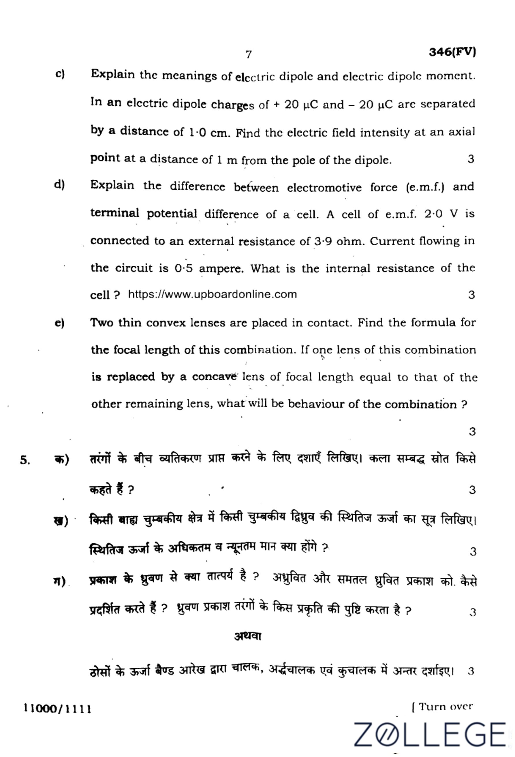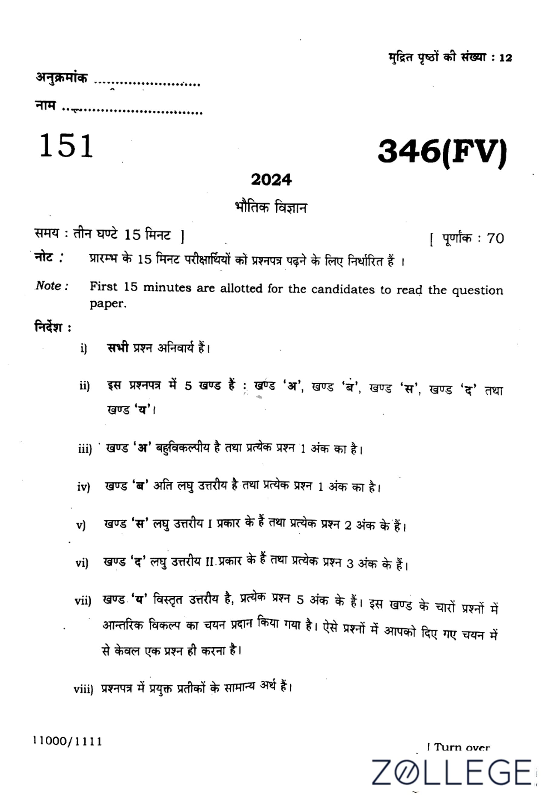 UP Board Class 12 Physics Question Paper 2024 (Code 347 FV) with Solutions