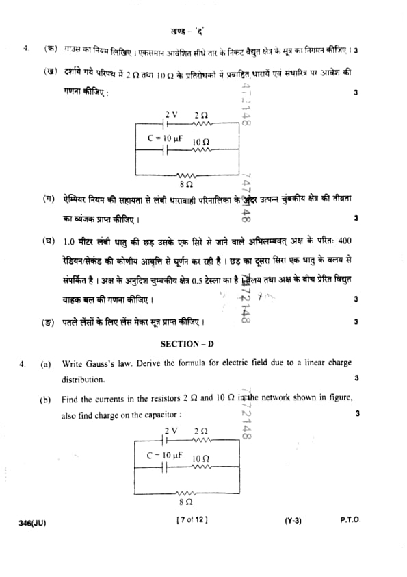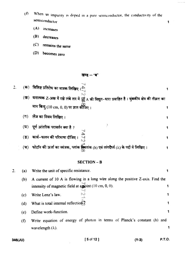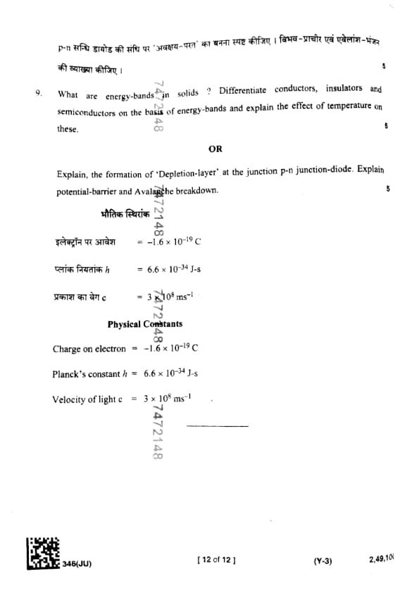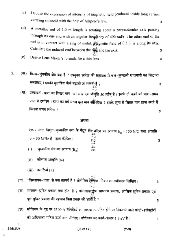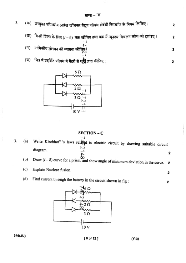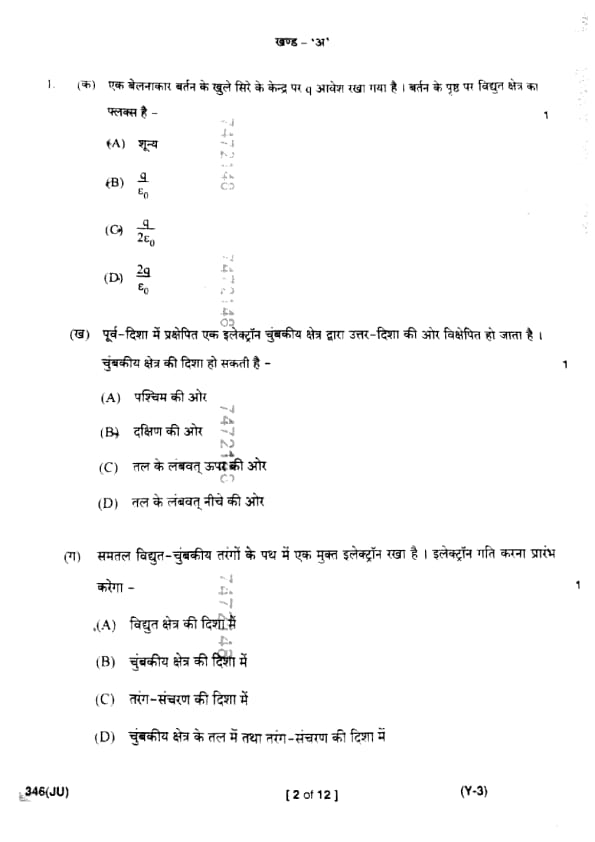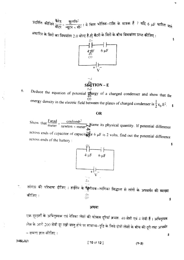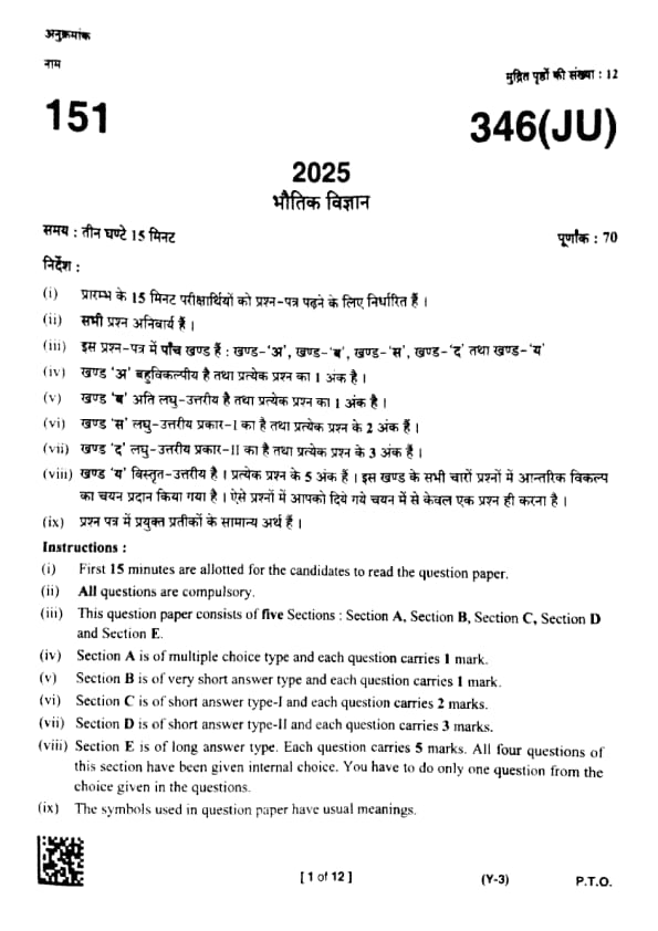 UP Board Class 12 Physics Question Paper 2025 (Code 346 JU) with Solutions