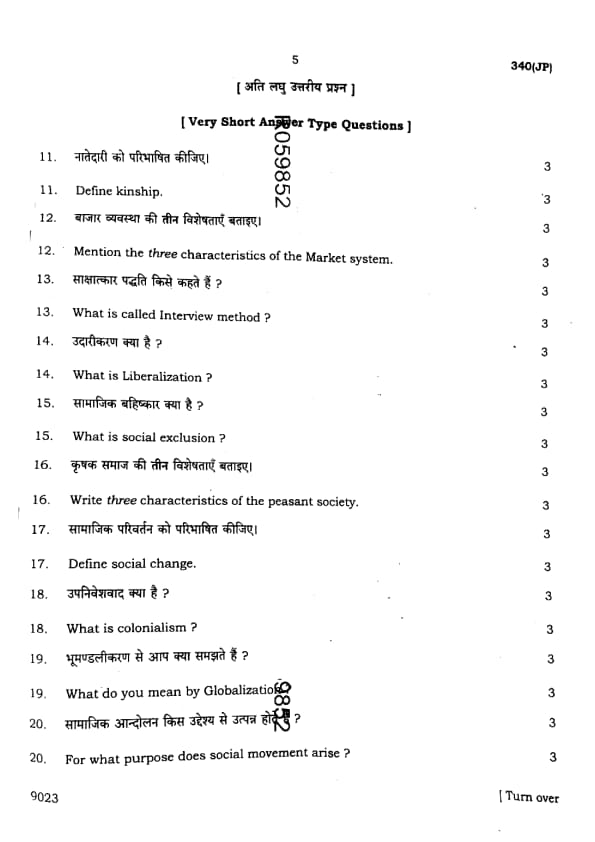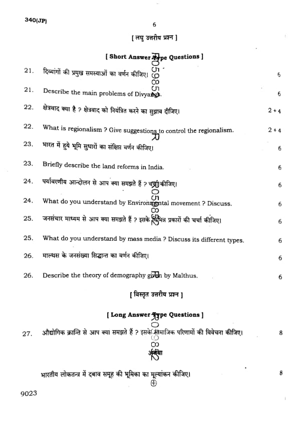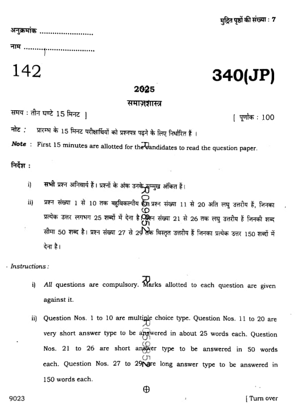 UP Board Class 12 Sociology Question Paper 2025 (Code 340 JP) with Solutions