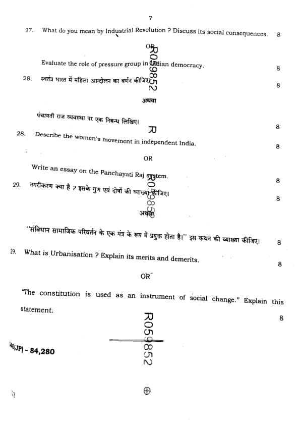 | UP Board Class Sociology Question Paper with Answer Key | Check Solutions |