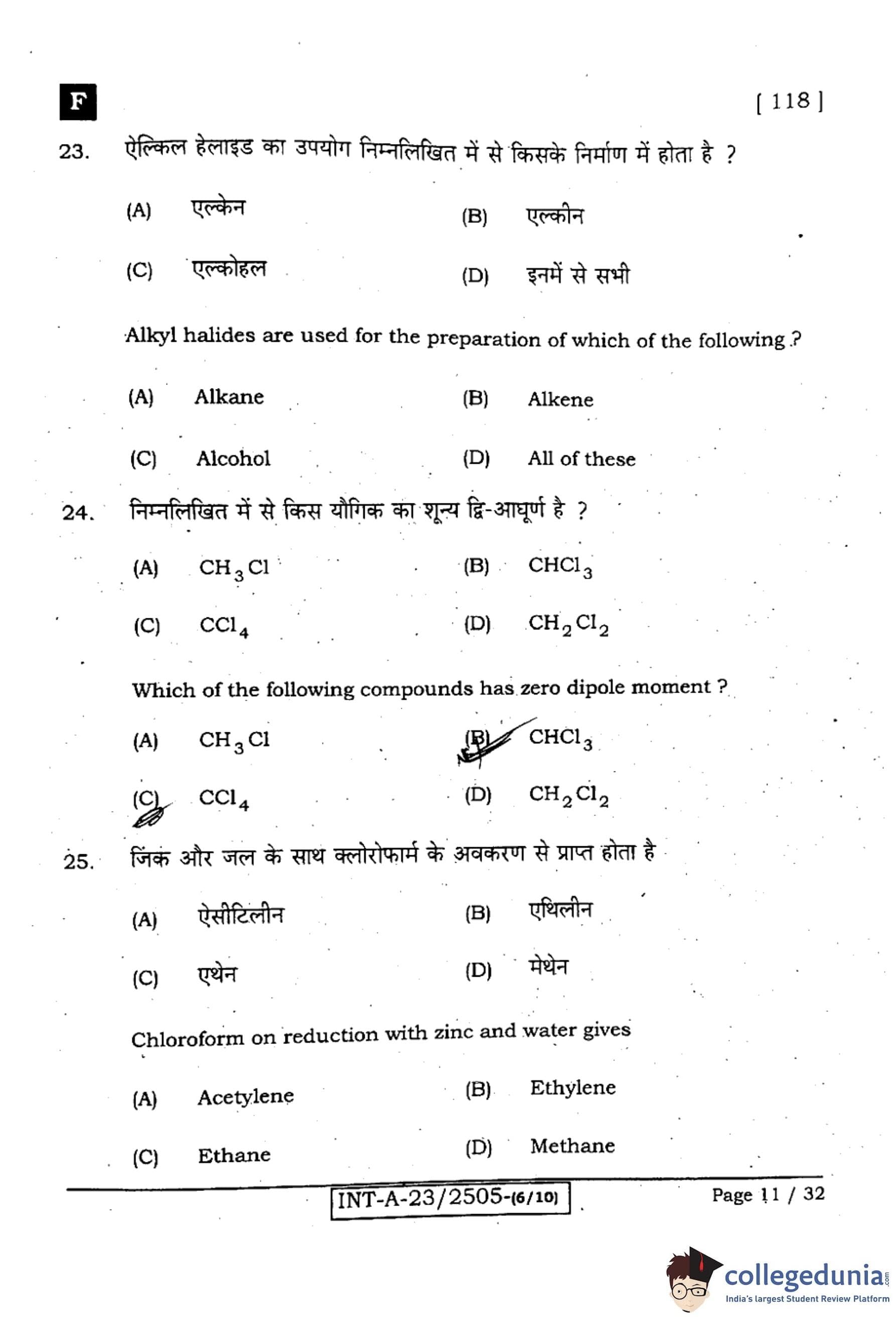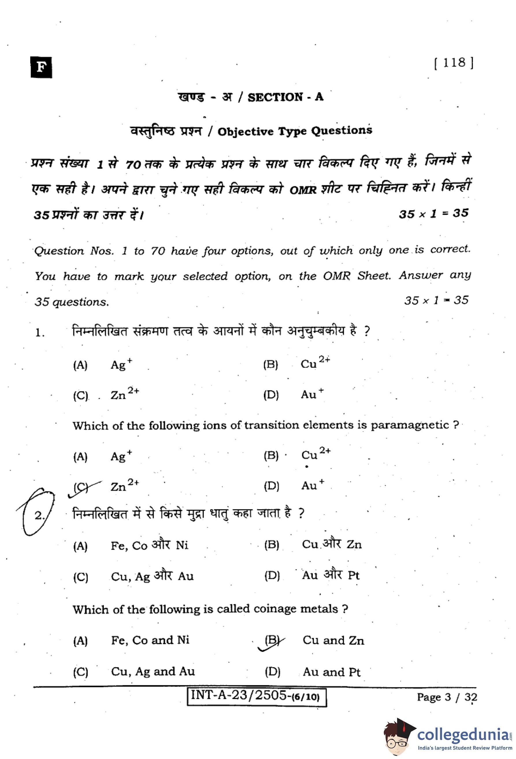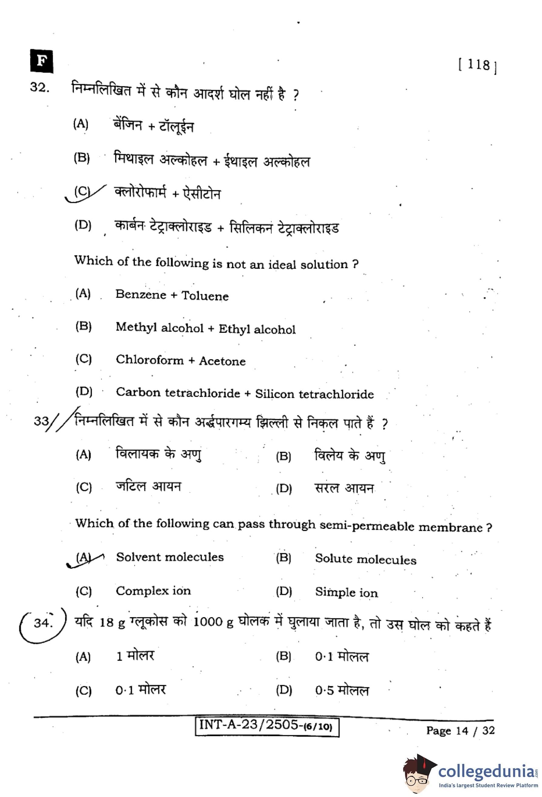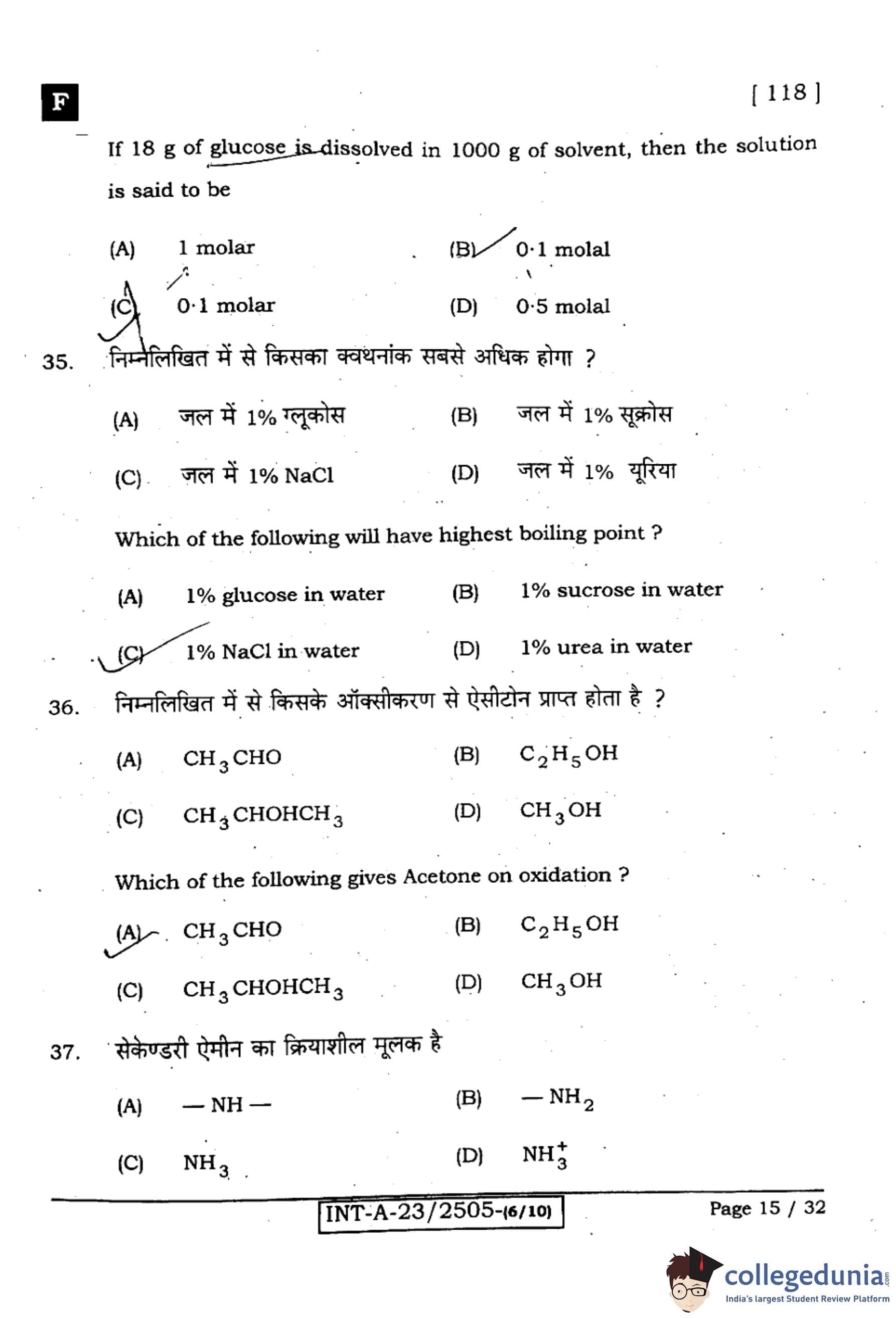 Bihar Board Class 12 Chemistry Question Paper 2023 (Code 118 Set – F) with Solutions