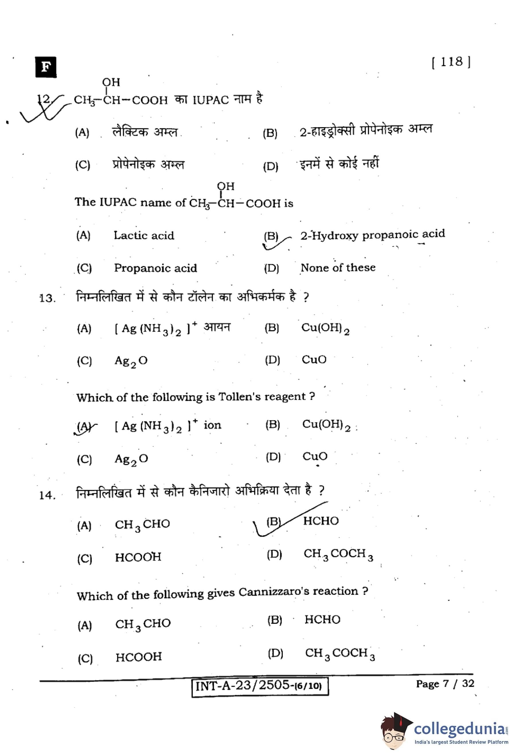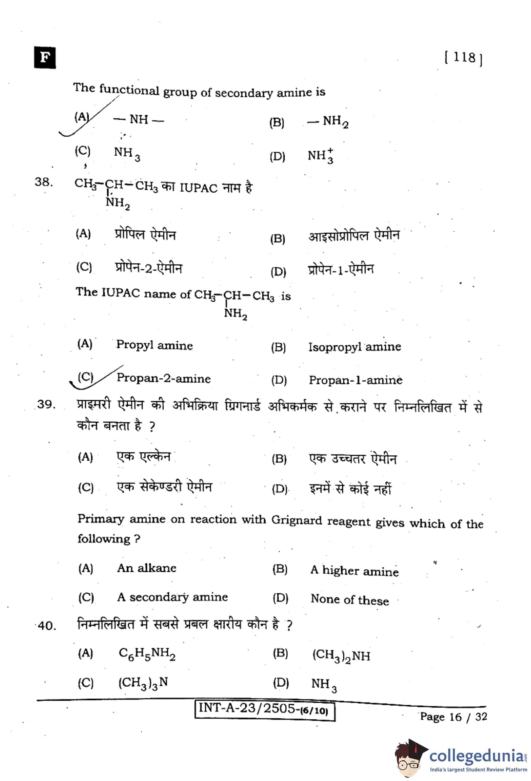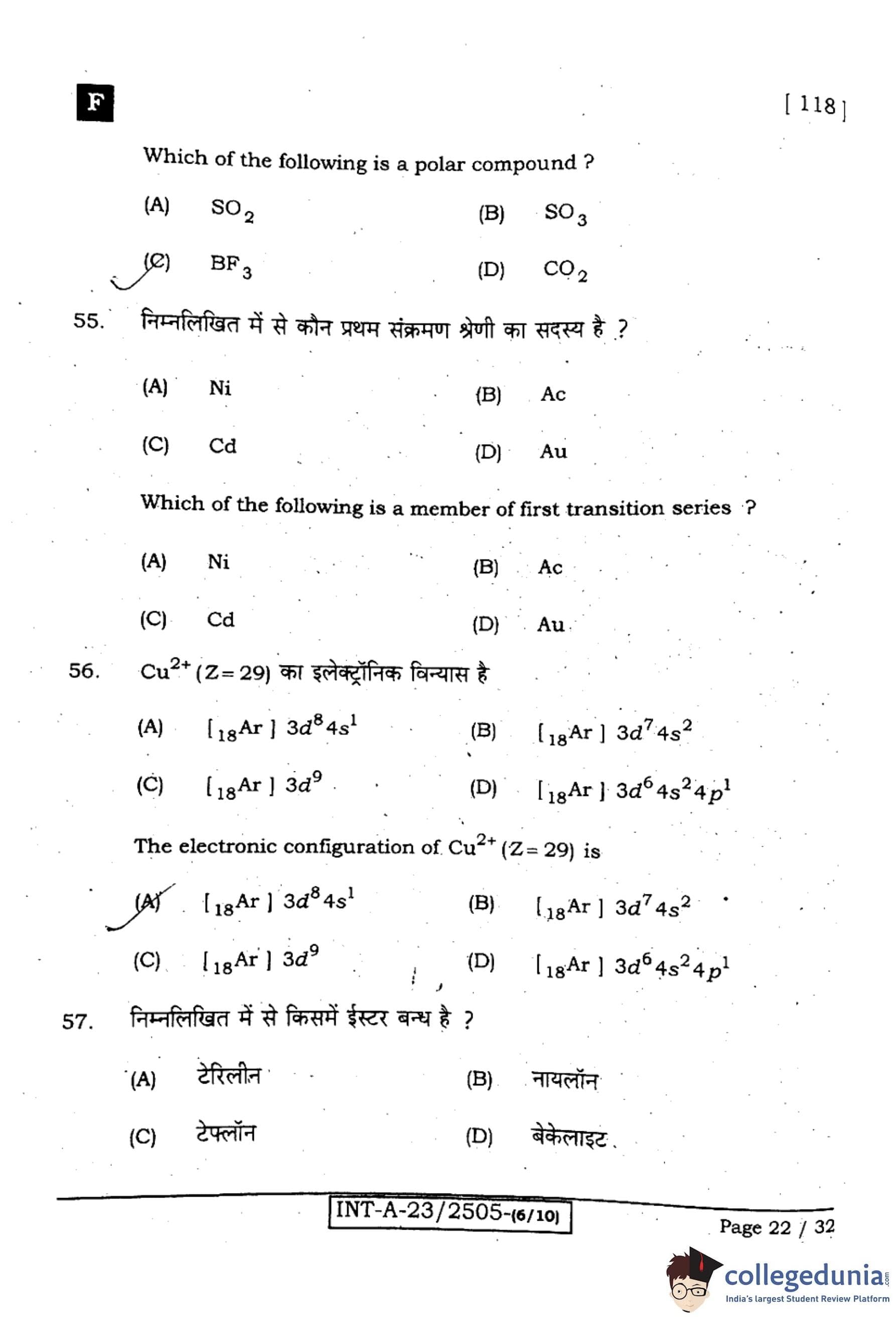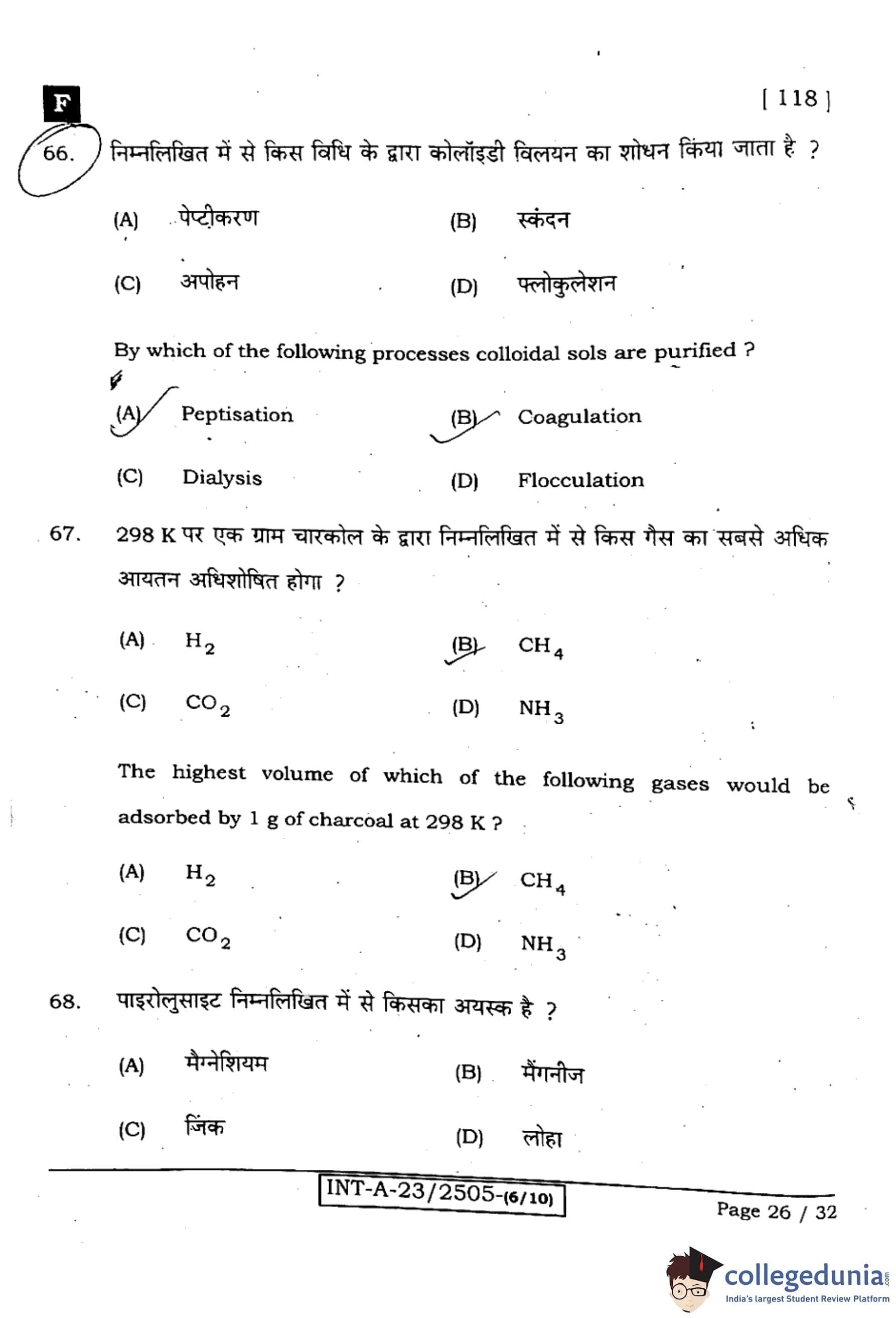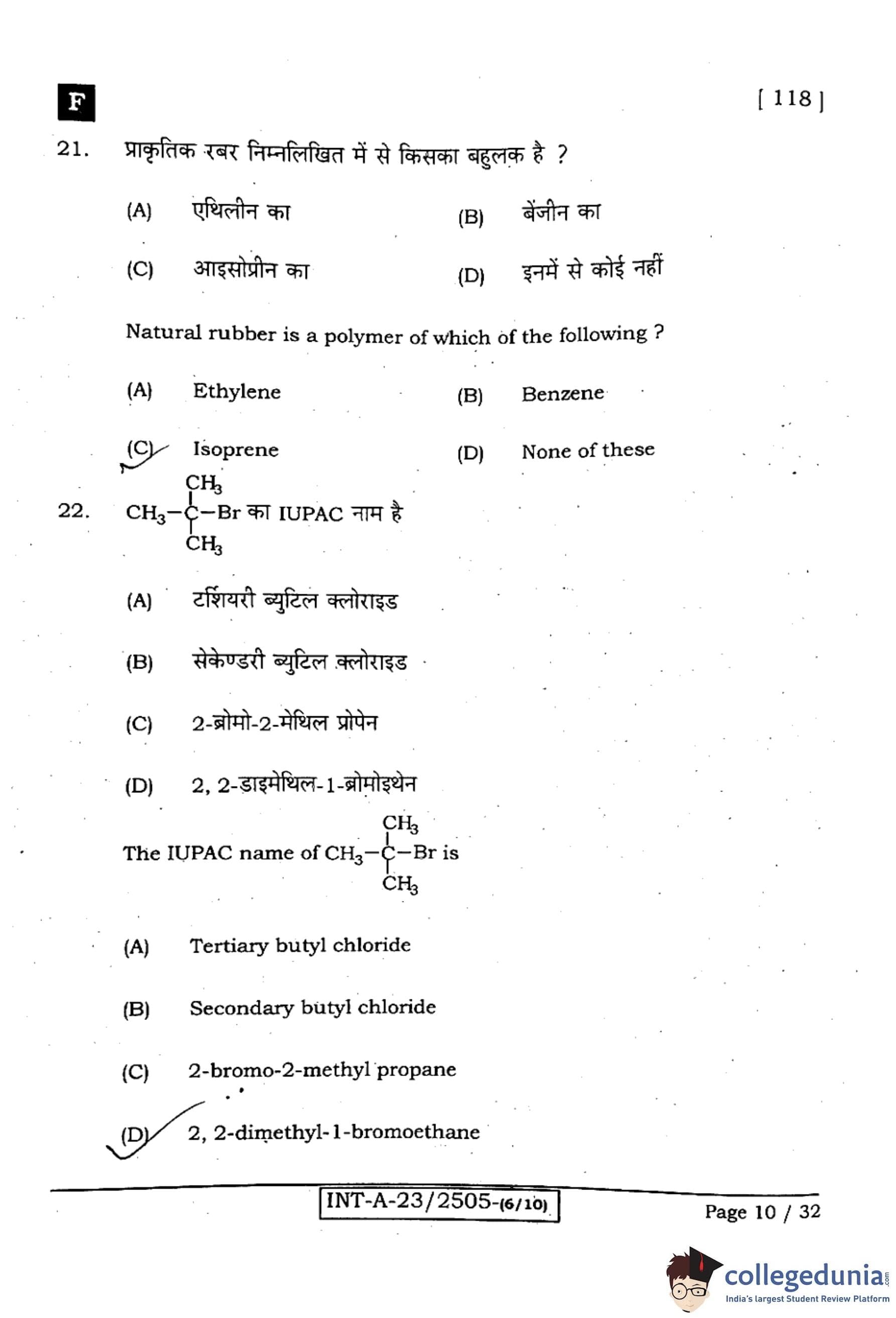 Bihar Board Class 12 Chemistry Question Paper 2023 (Code 118 Set – F) with Solutions