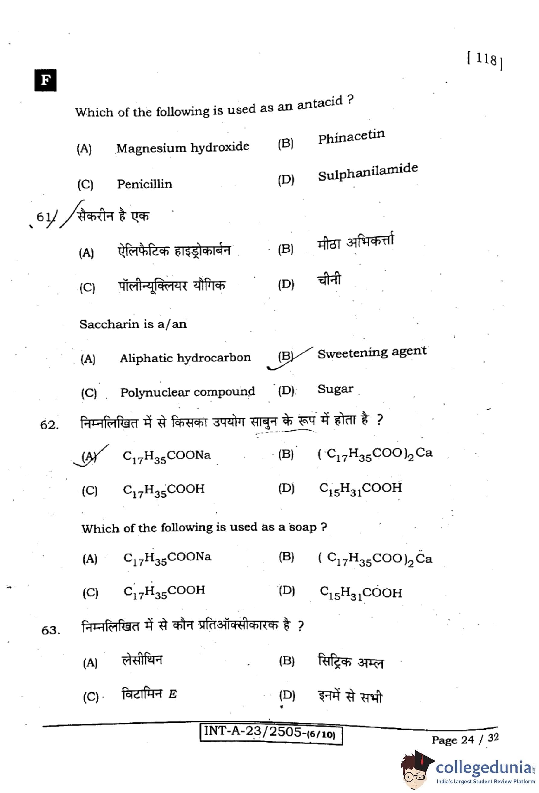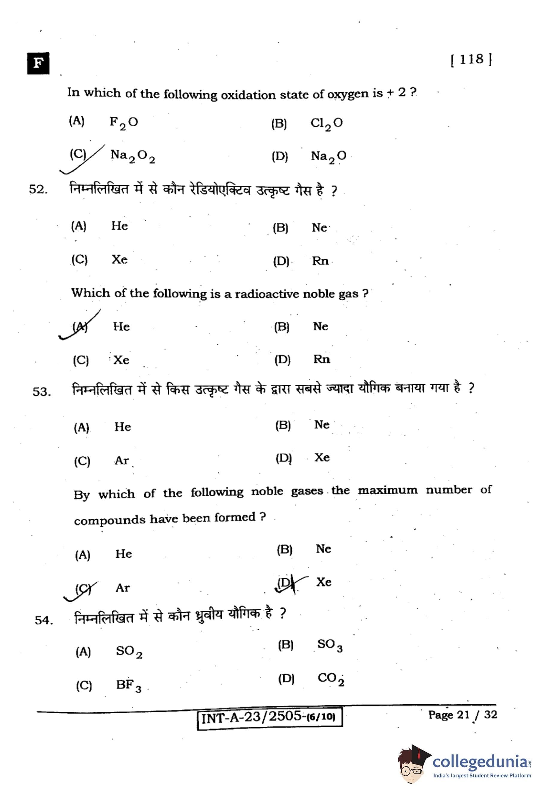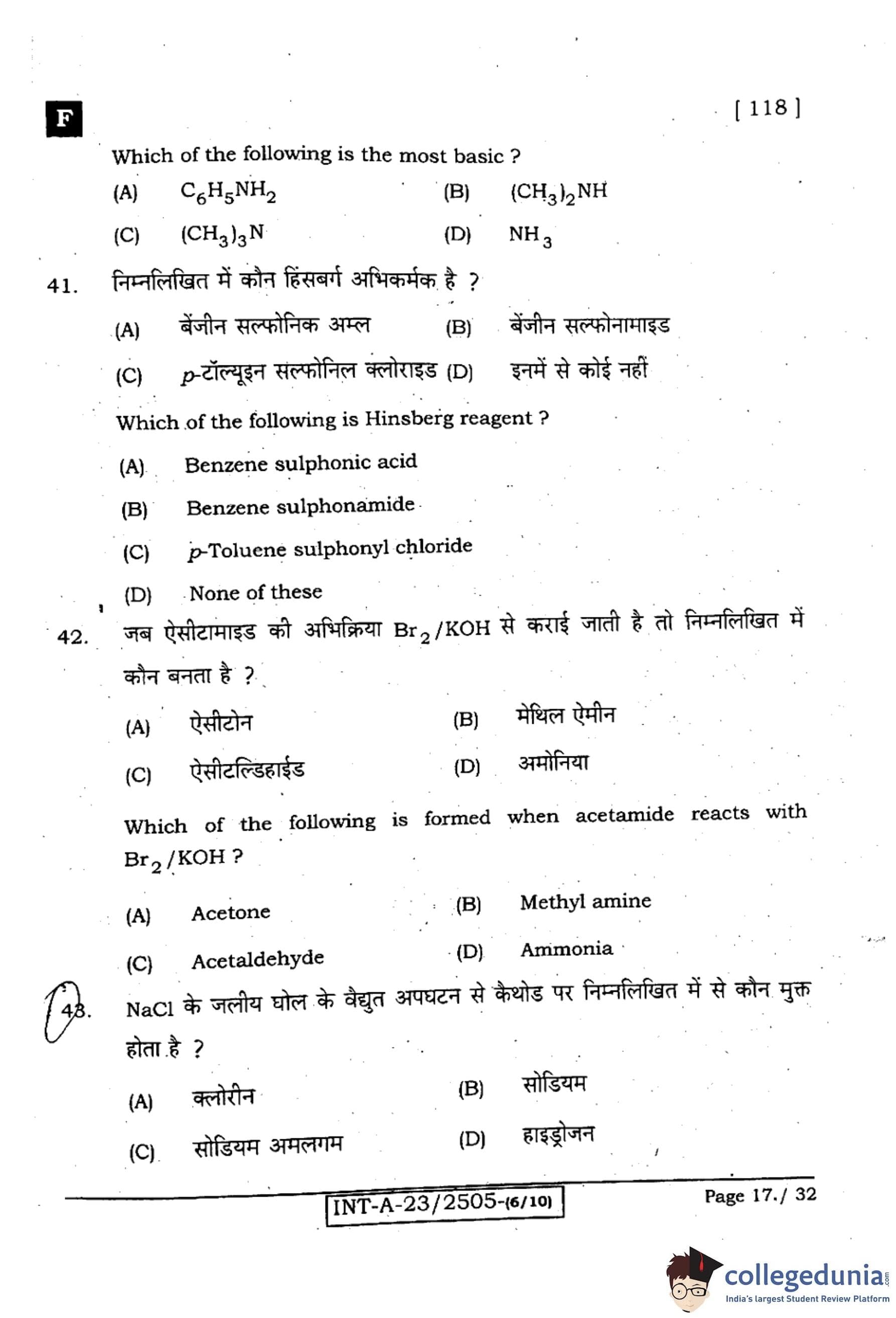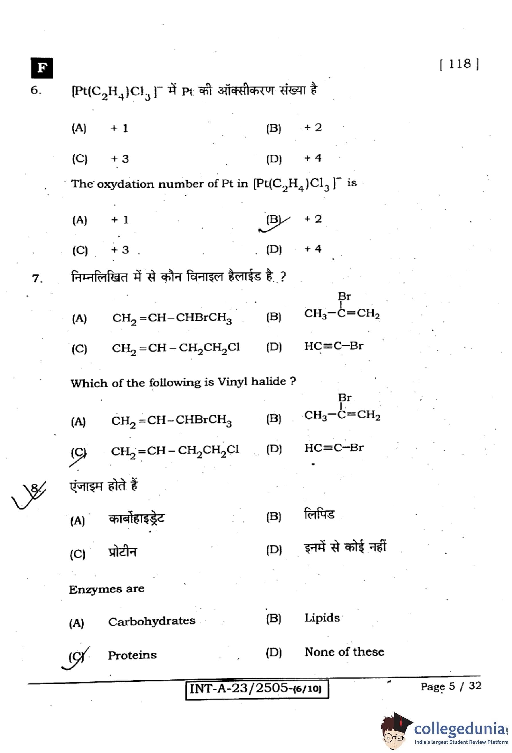 Bihar Board Class 12 Chemistry Question Paper 2023 (Code 118 Set – F) with Solutions