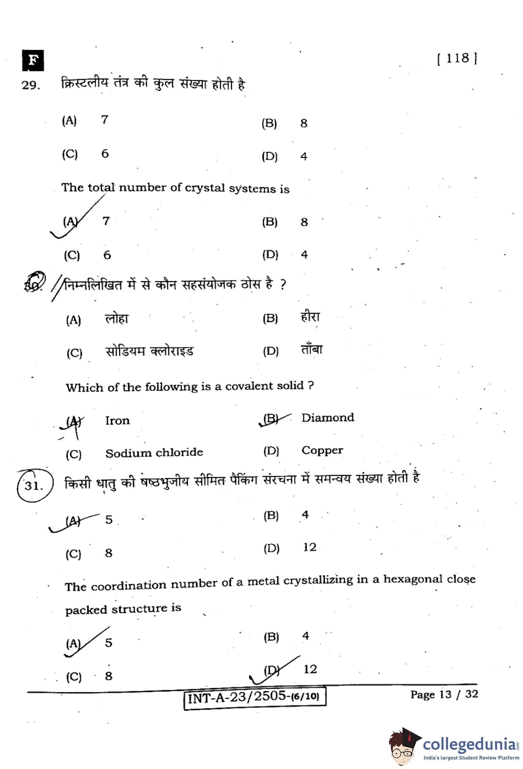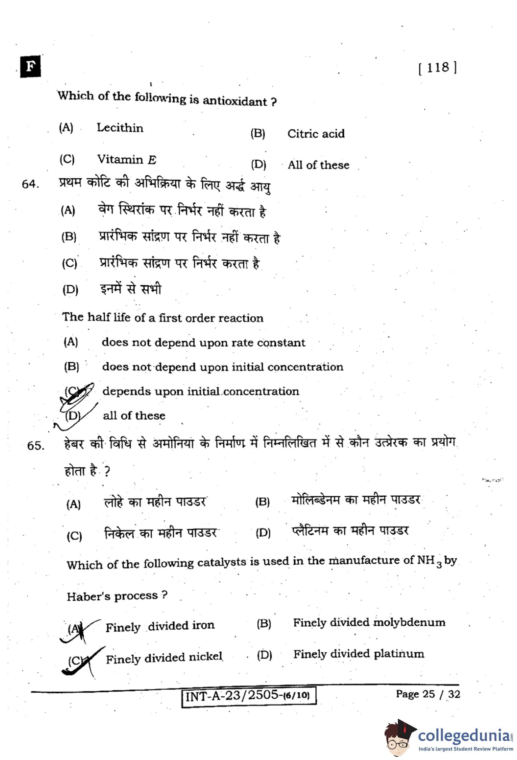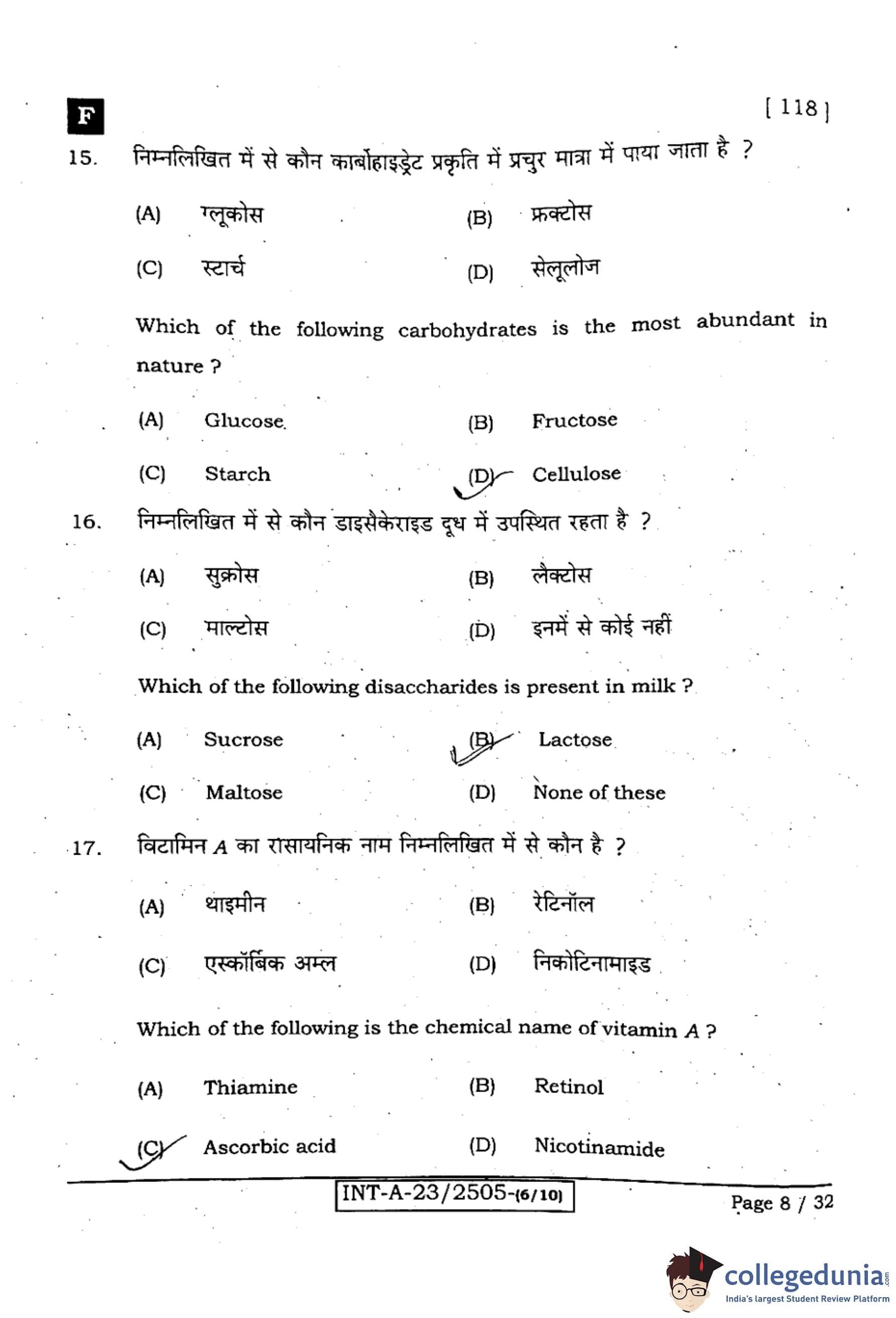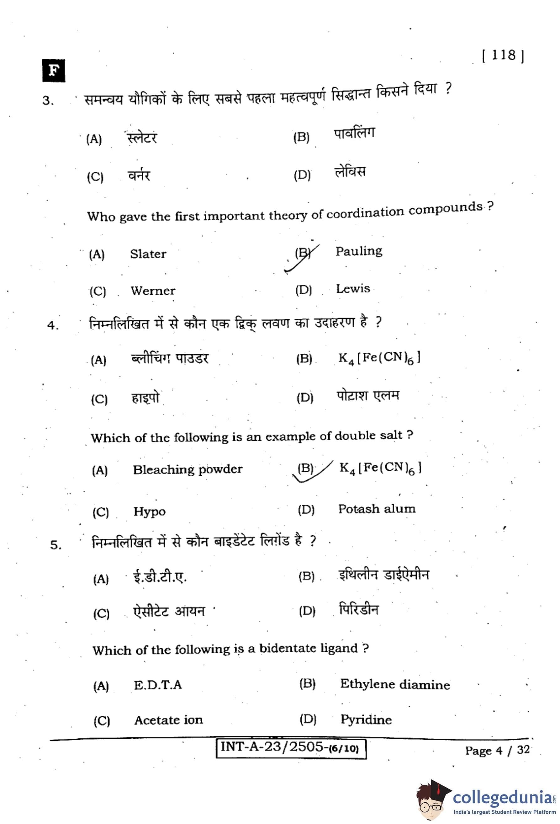 Bihar Board Class 12 Chemistry Question Paper 2023 (Code 118 Set – F) with Solutions