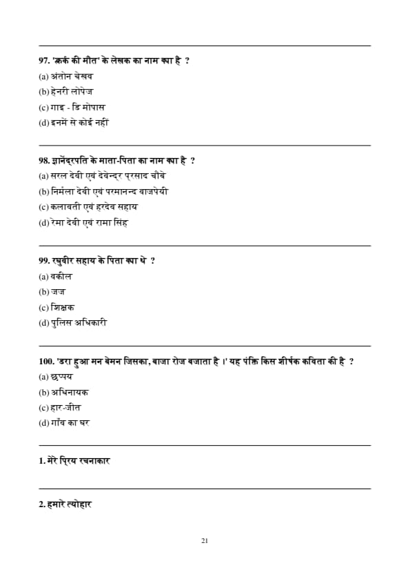 Quick Tip: Remembering the basic details of main characters in famous plays and stories (like their names, relationships, and professions) is key to answering literature-based questions.