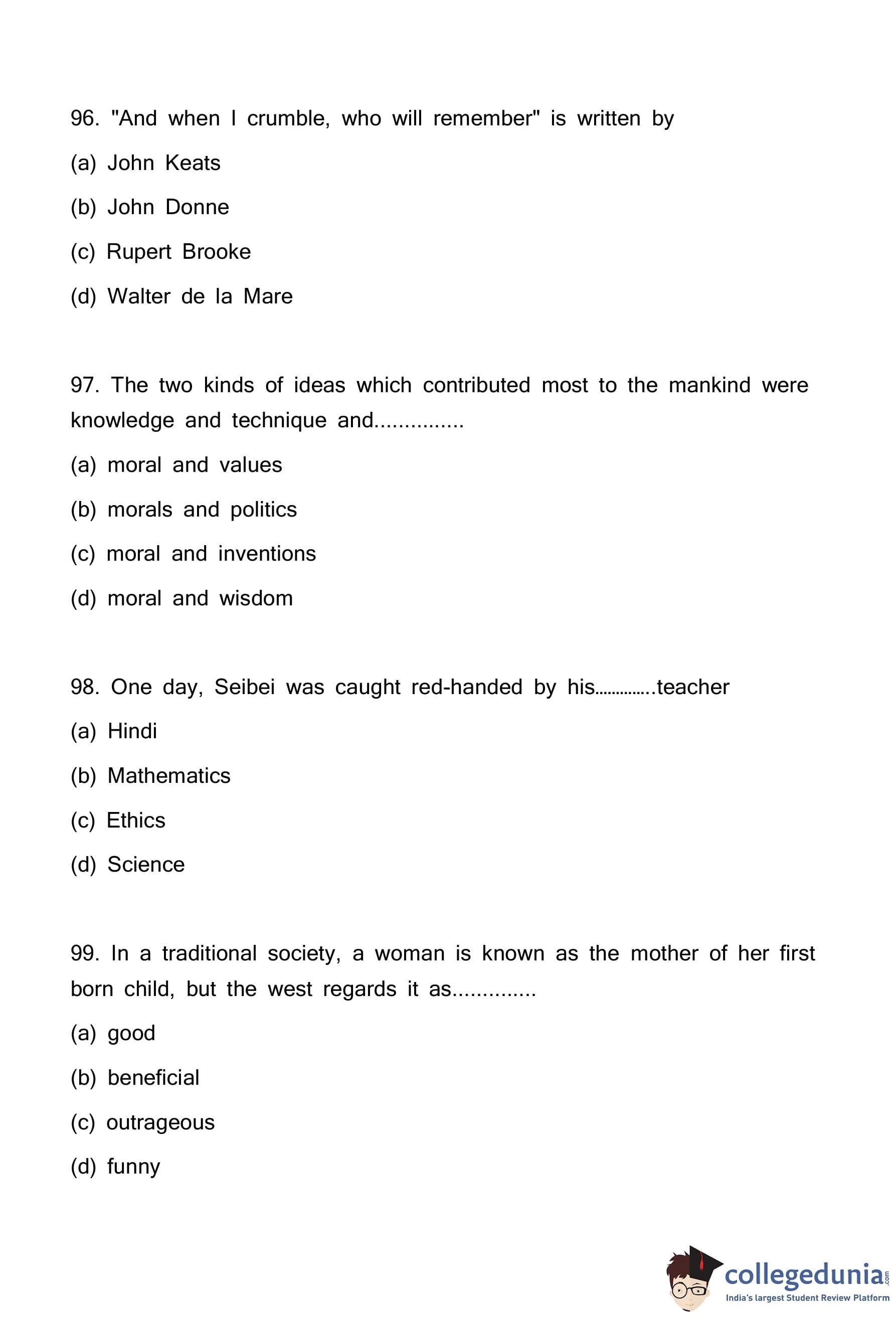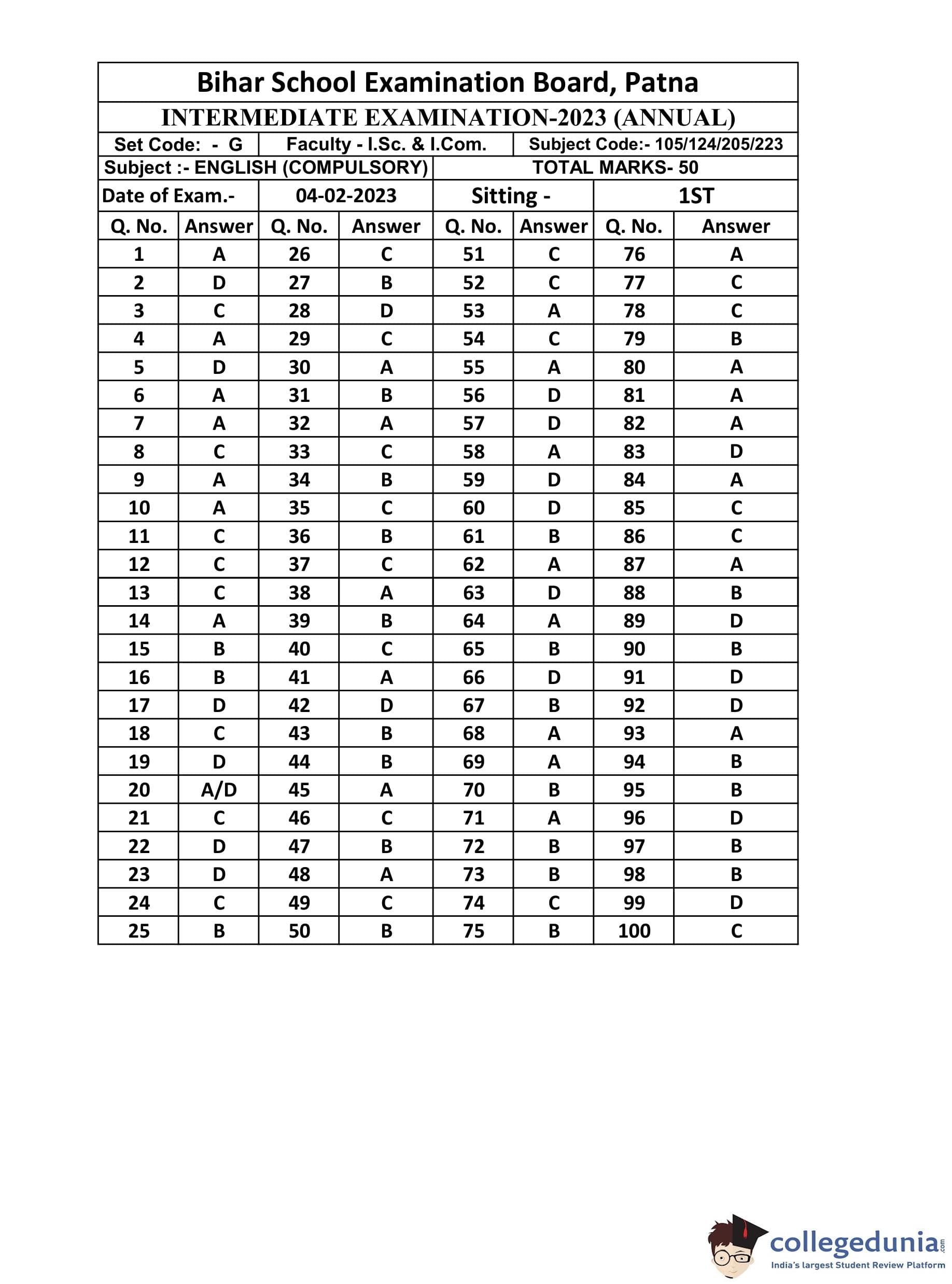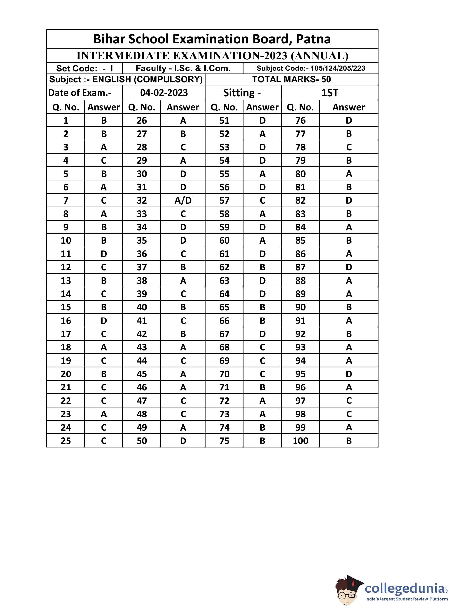 Bihar Board Class 12 English Question Paper 2023 with Answer Key pdf is available for download here. The exam was conducted by Bihar School Examination Board (BSEB). The question paper comprised a total of 107 questions divided among 2 sections.