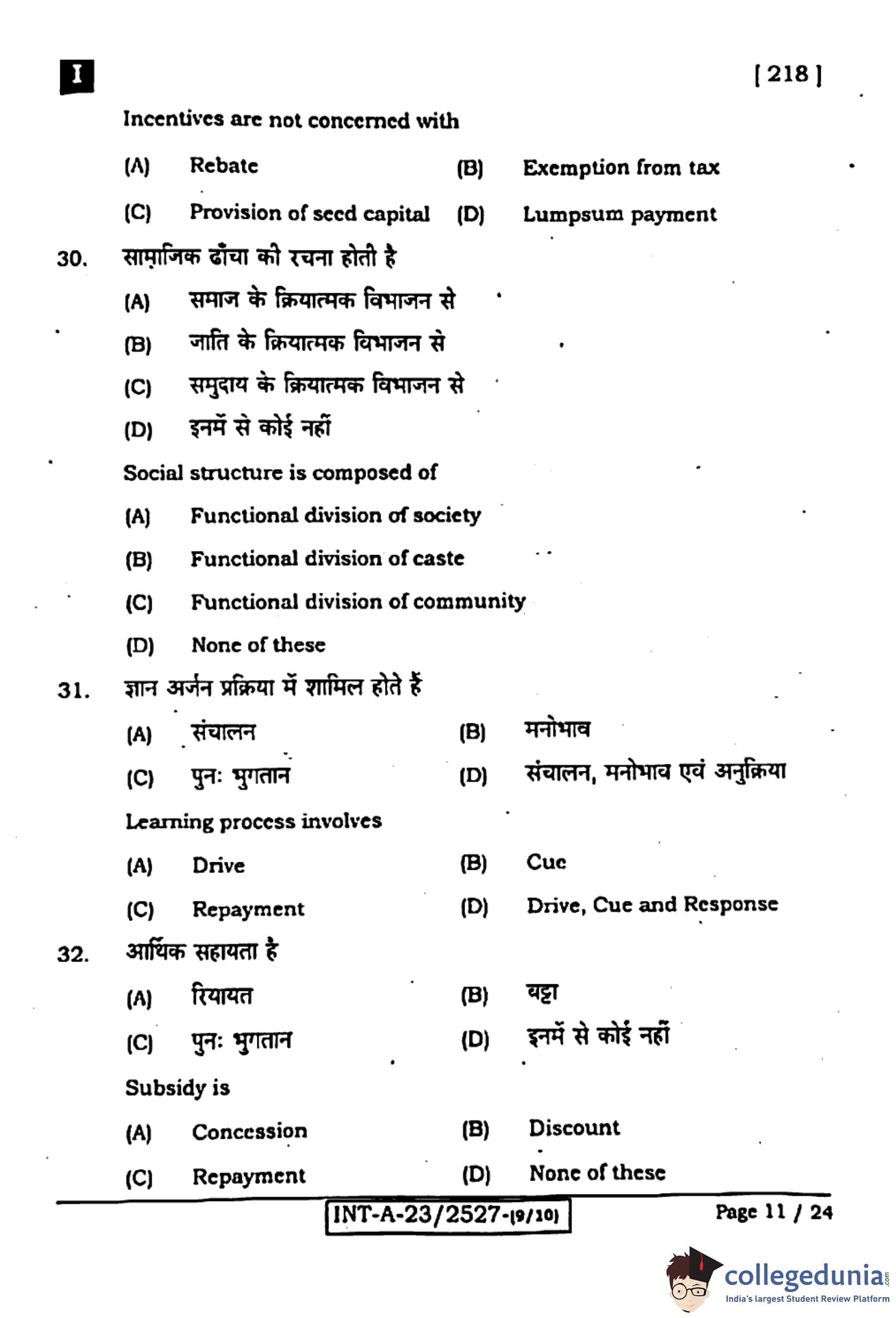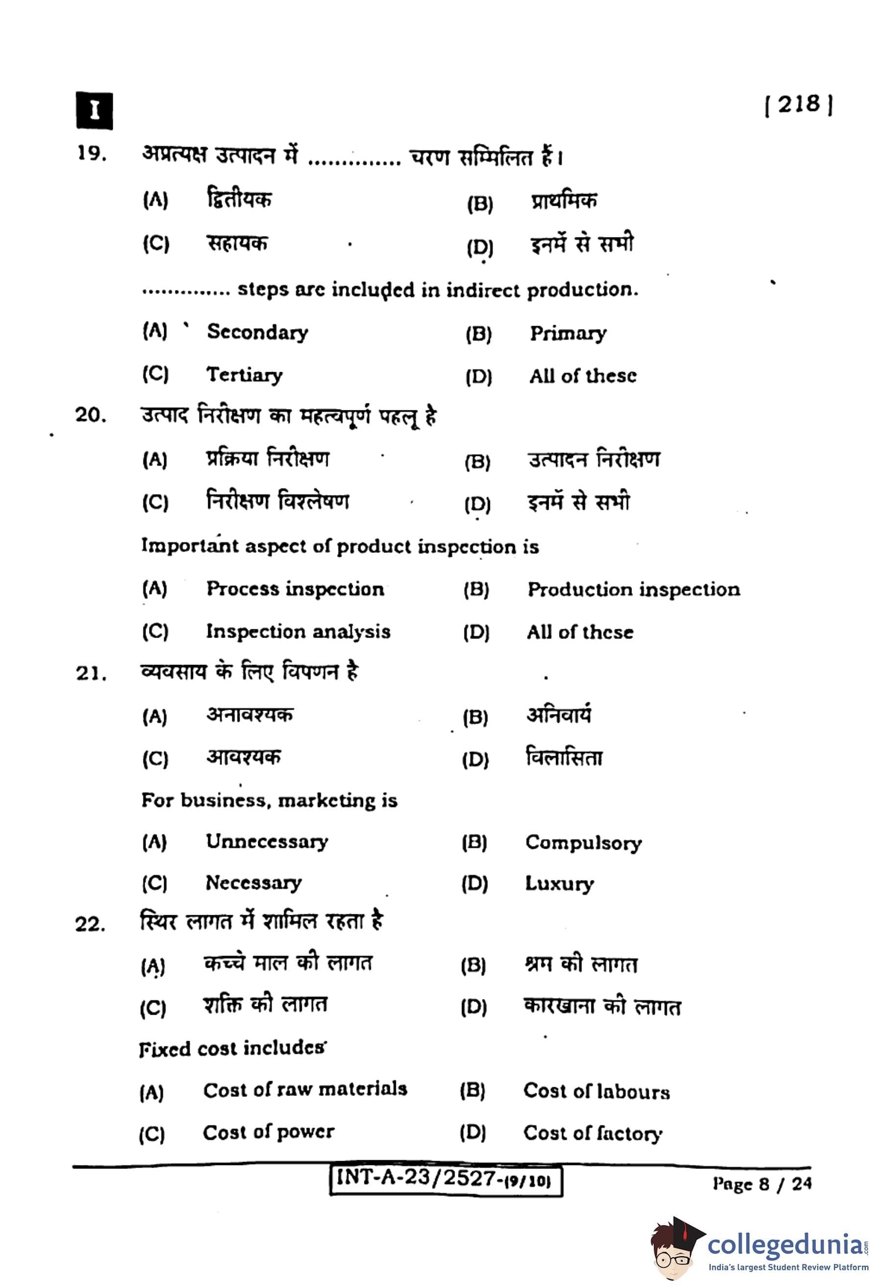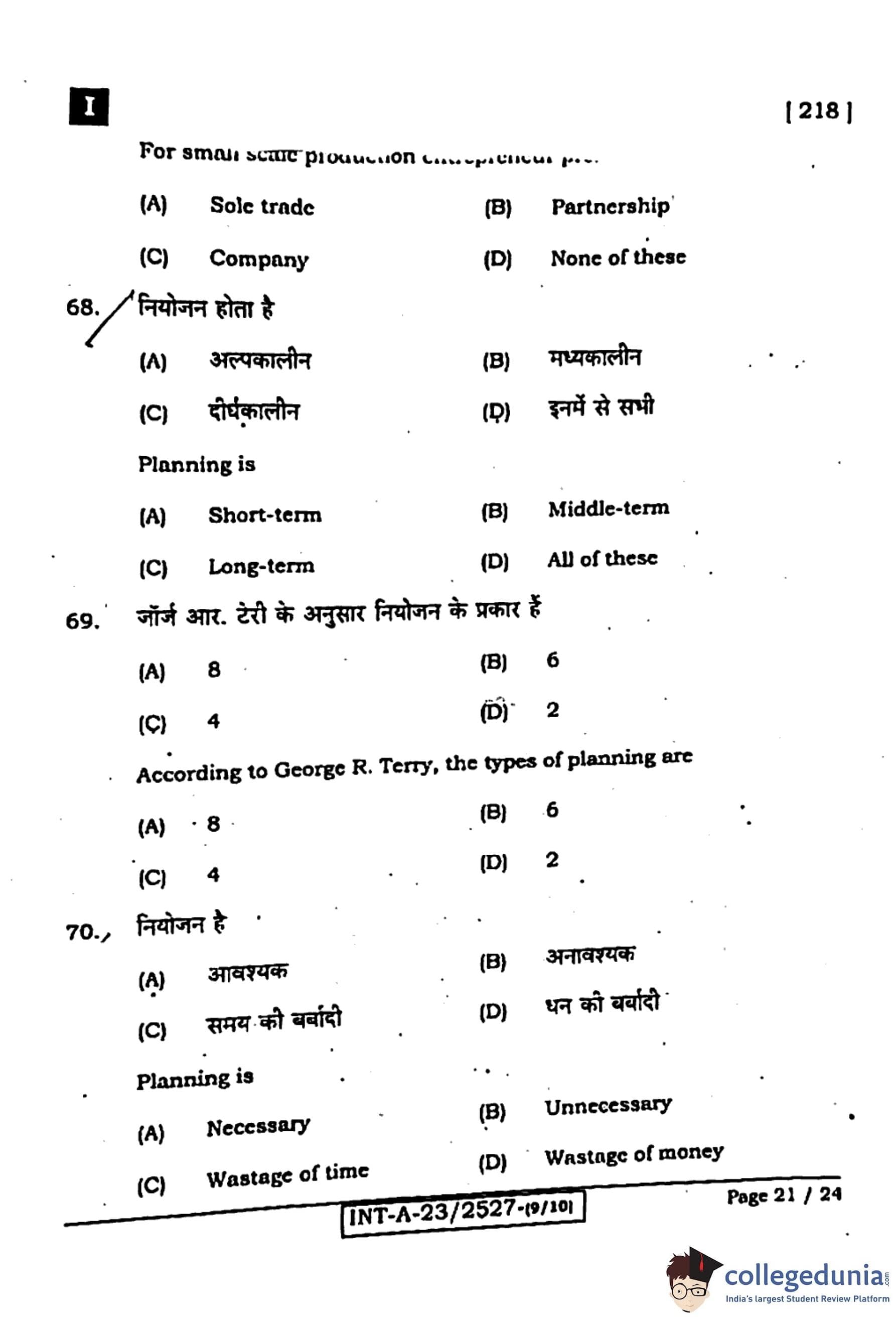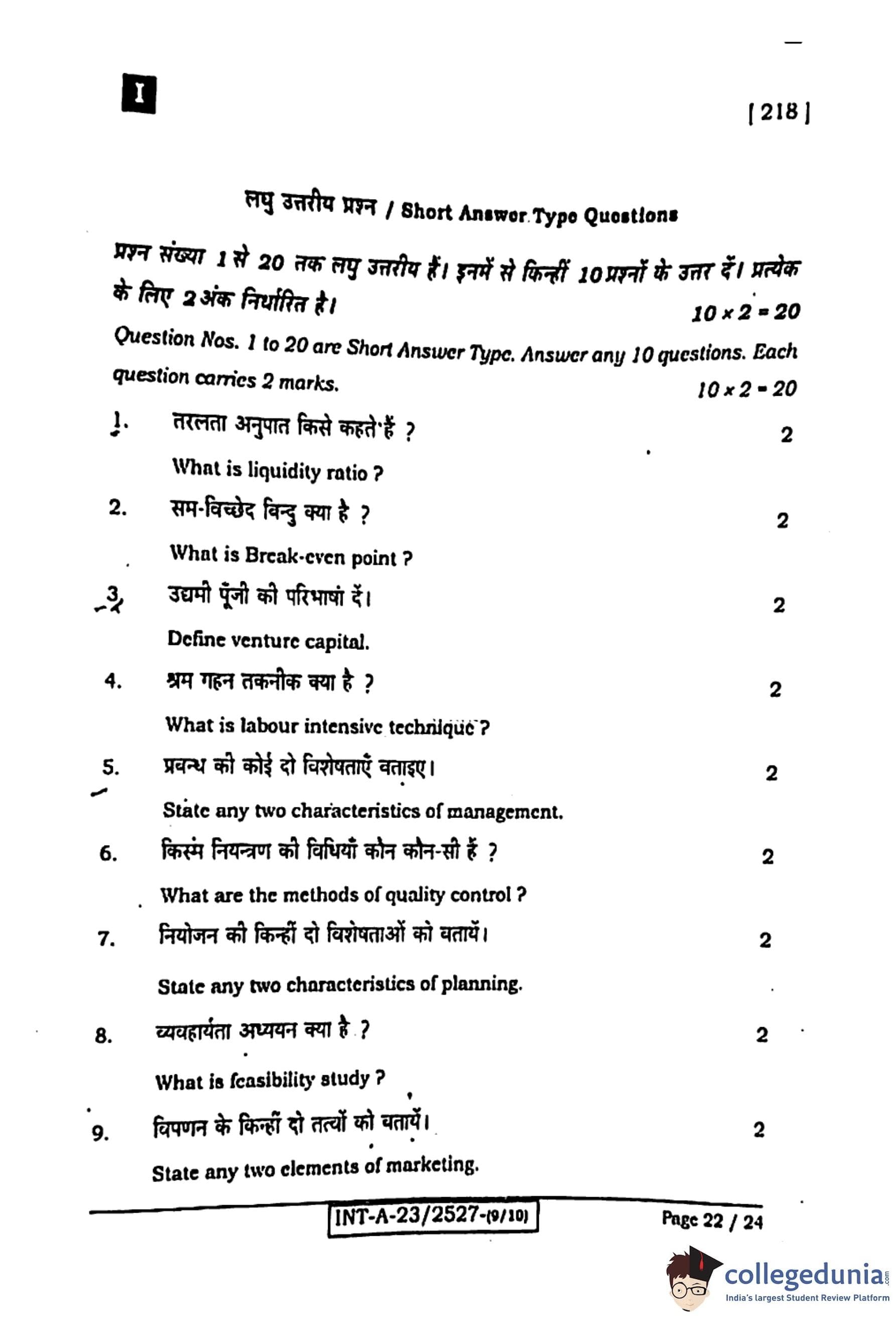 Bihar Board Class 12 Entrepreneurship Question Paper 2024 (Code 218 Set – I) with Solutions pdf is available for download here. The exam was conducted by Bihar School Examination Board (BSEB). The question paper comprised a total of 96 questions divided among 2 sections.