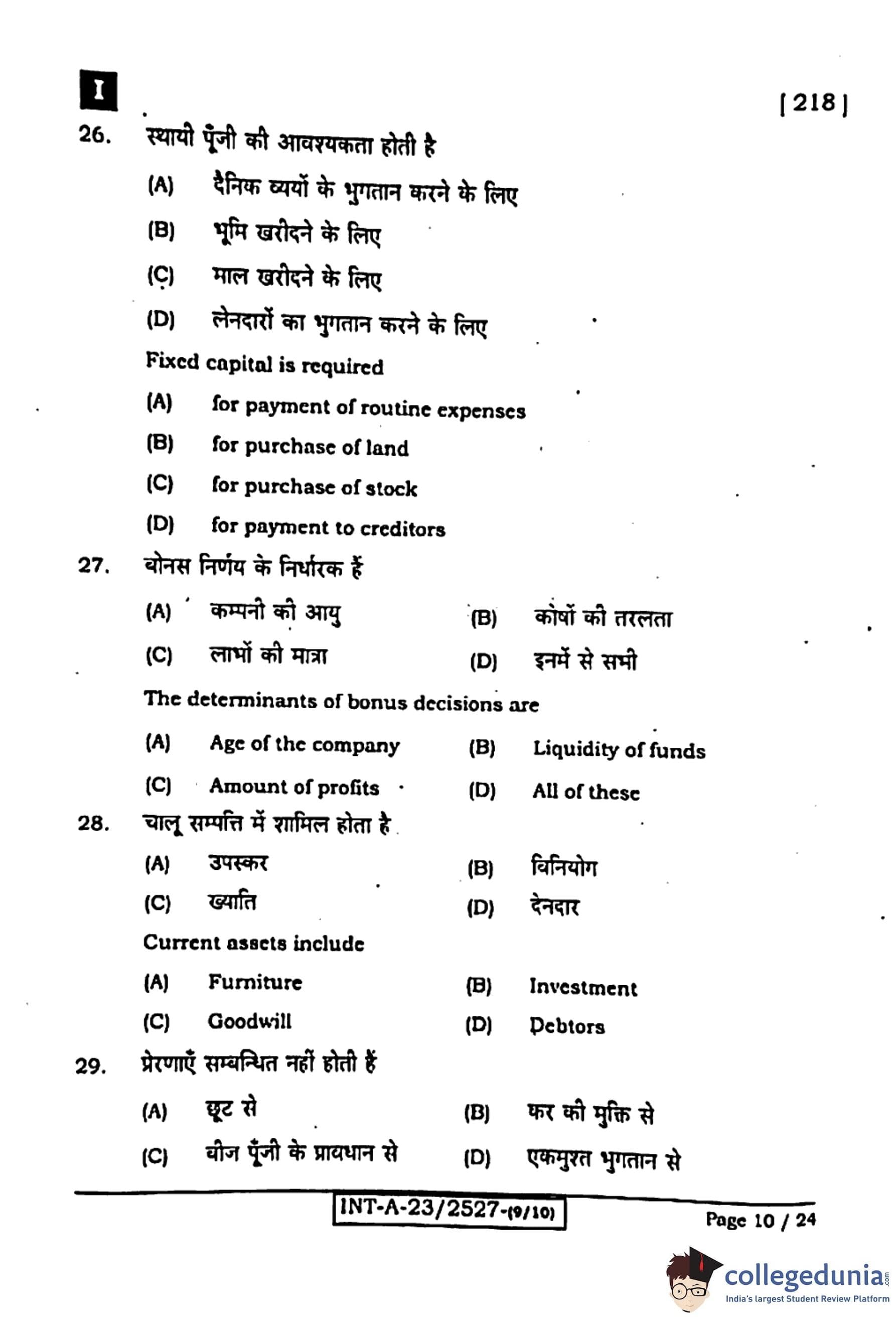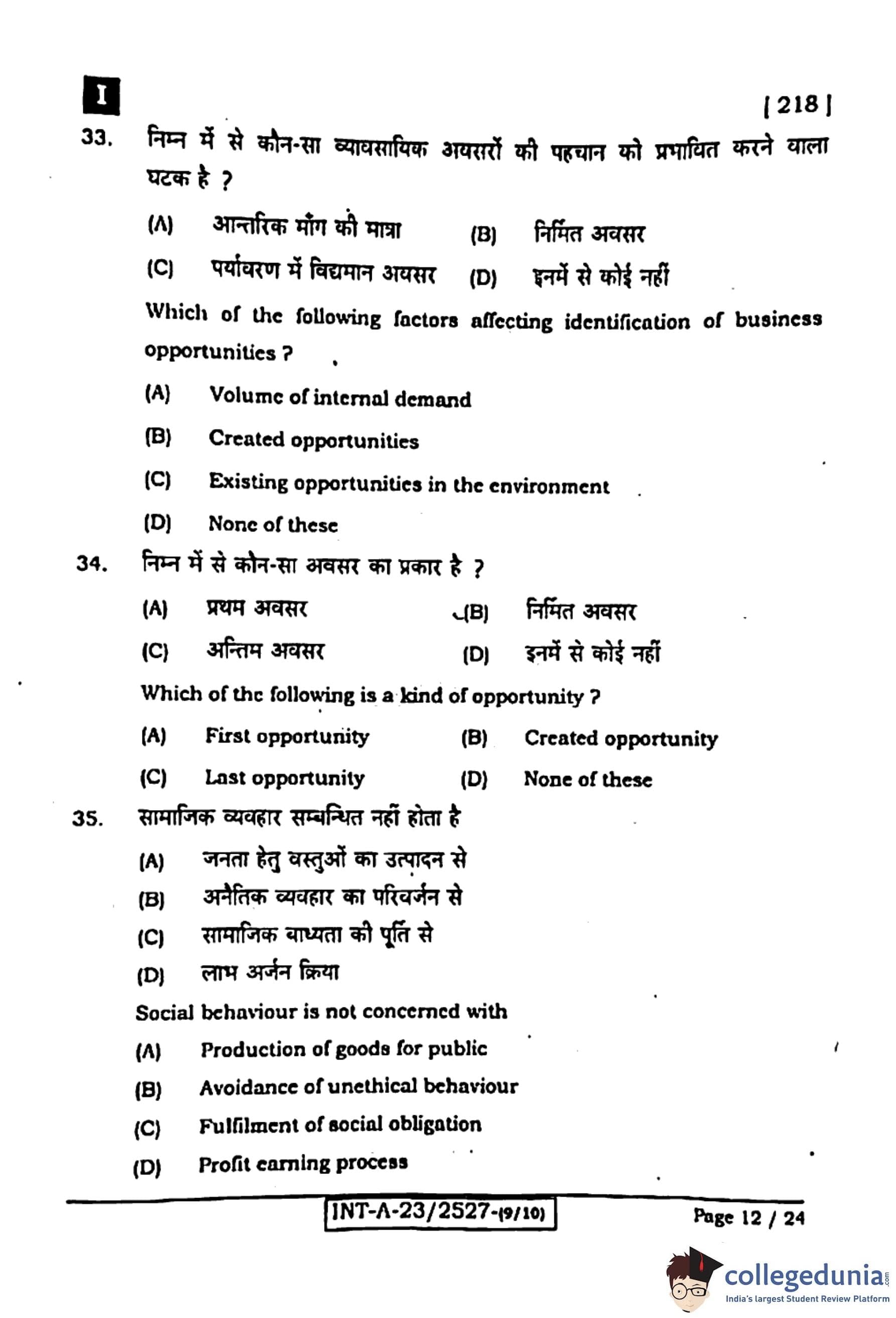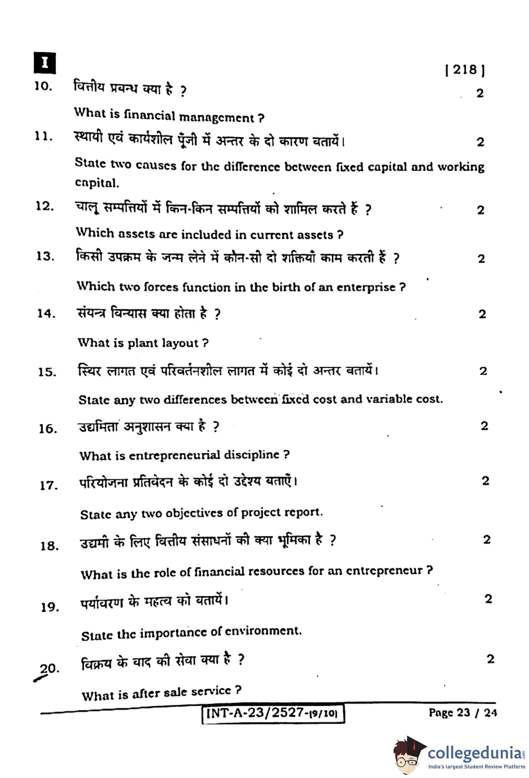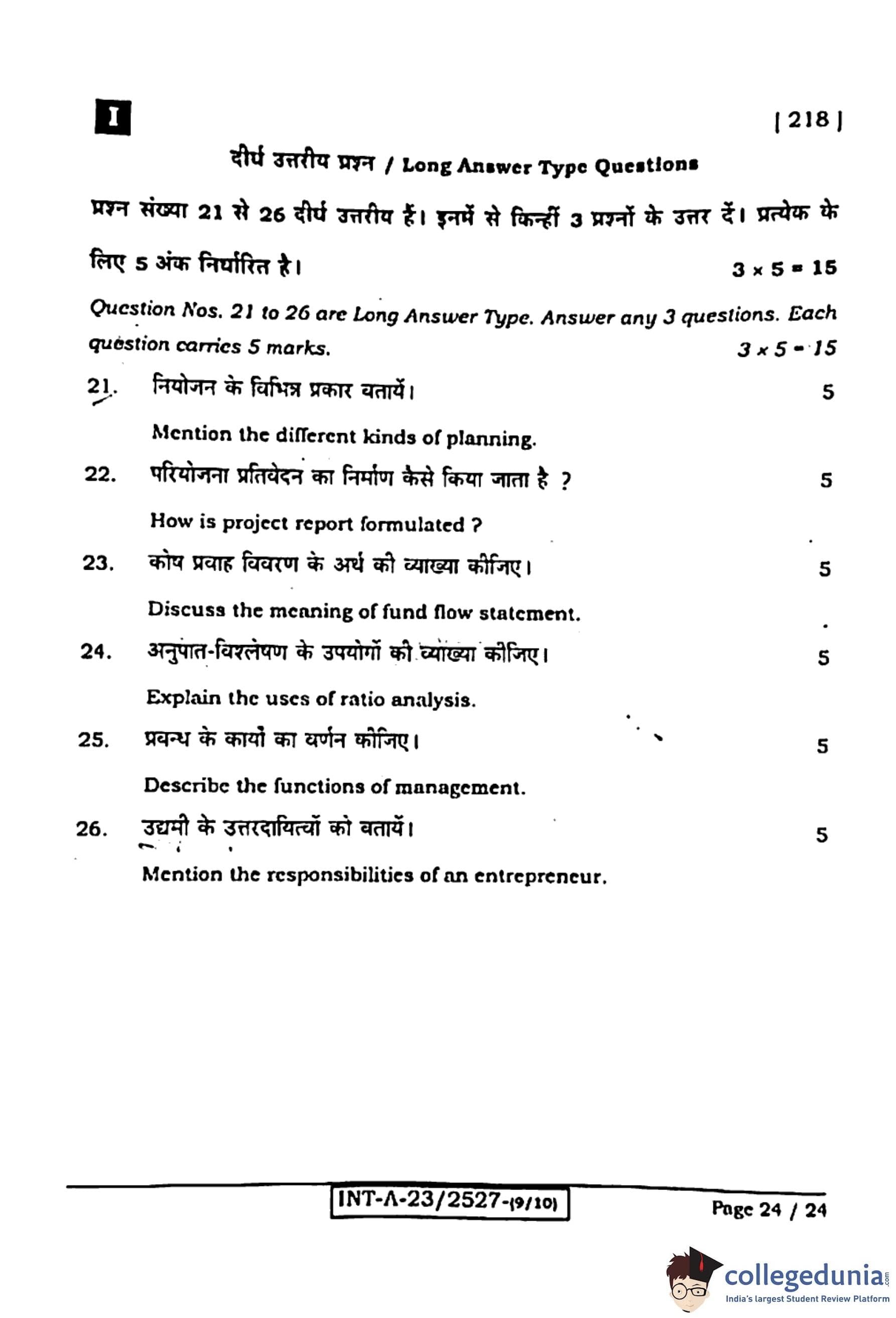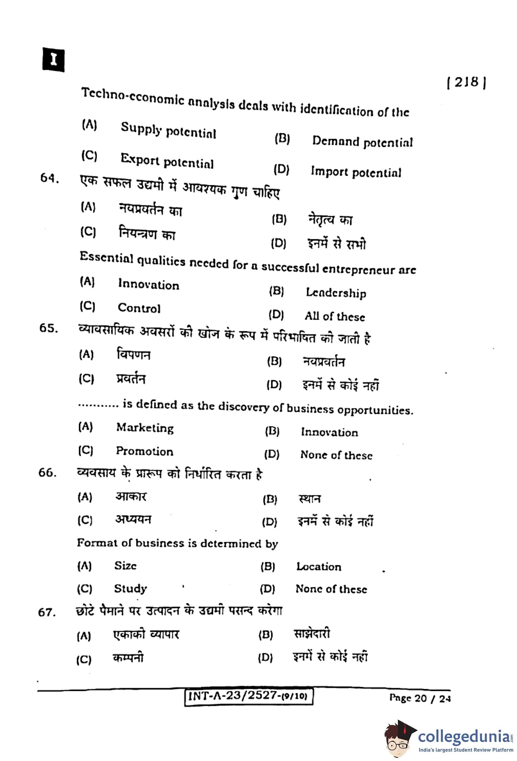 Bihar Board Class 12 Entrepreneurship Question Paper 2024 (Code 218 Set – I) with Solutions