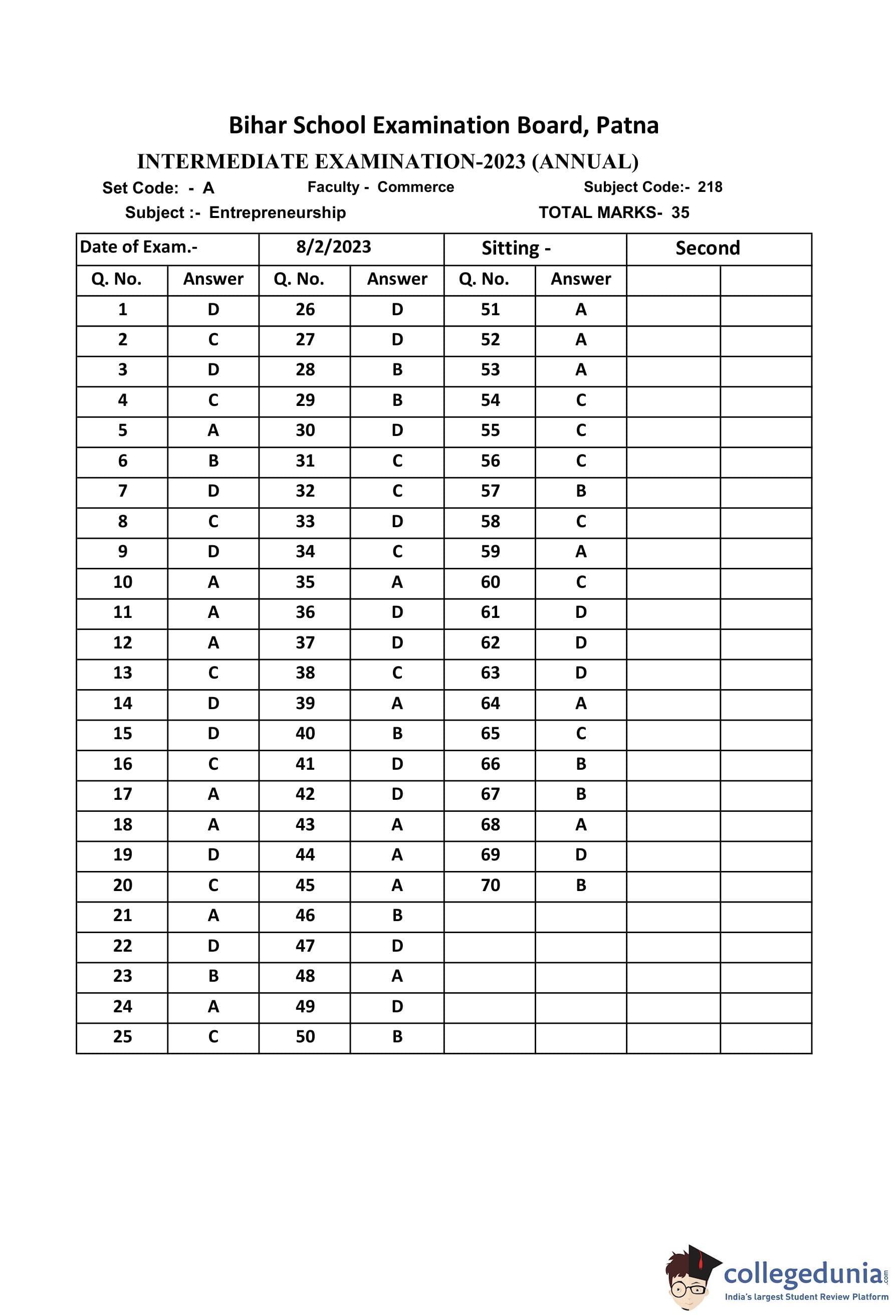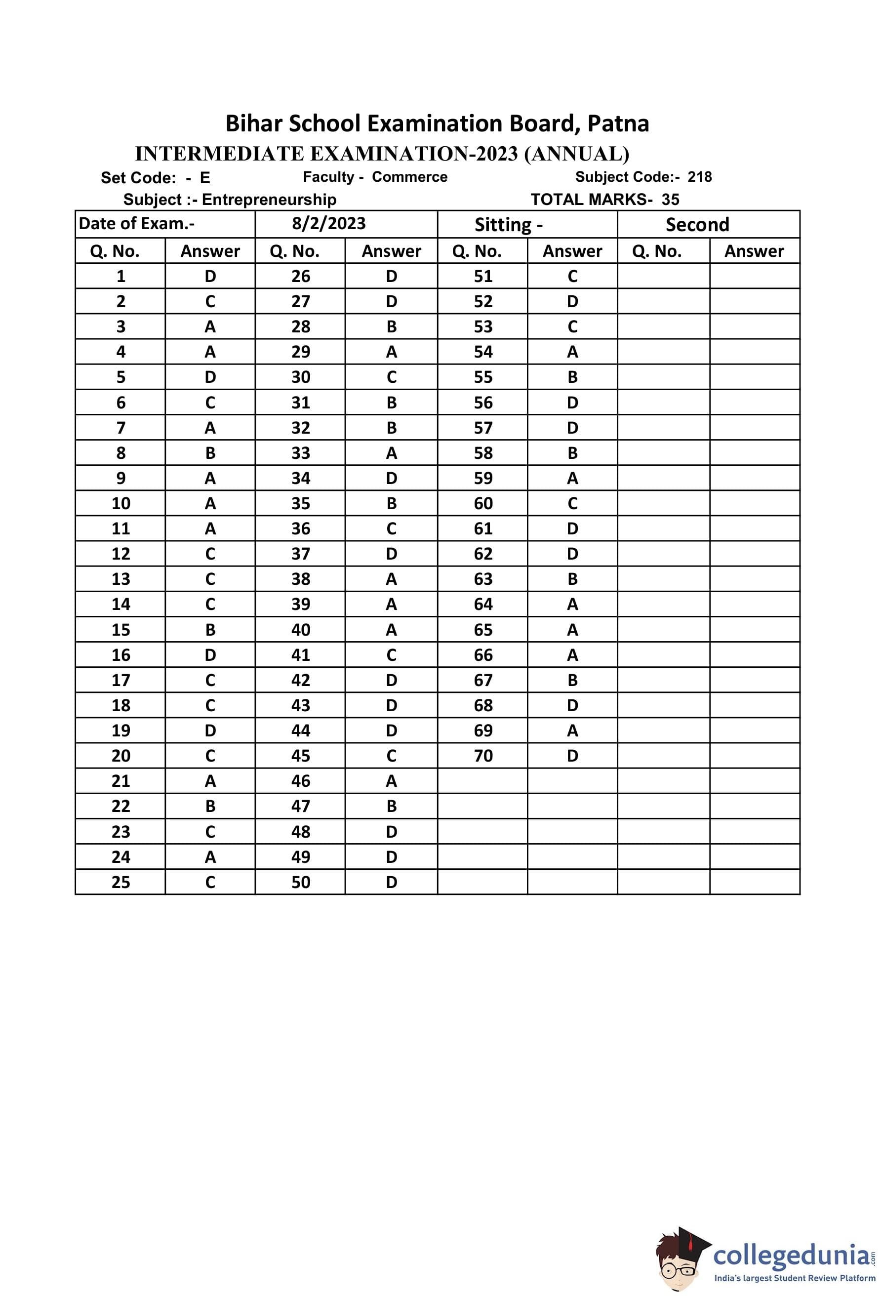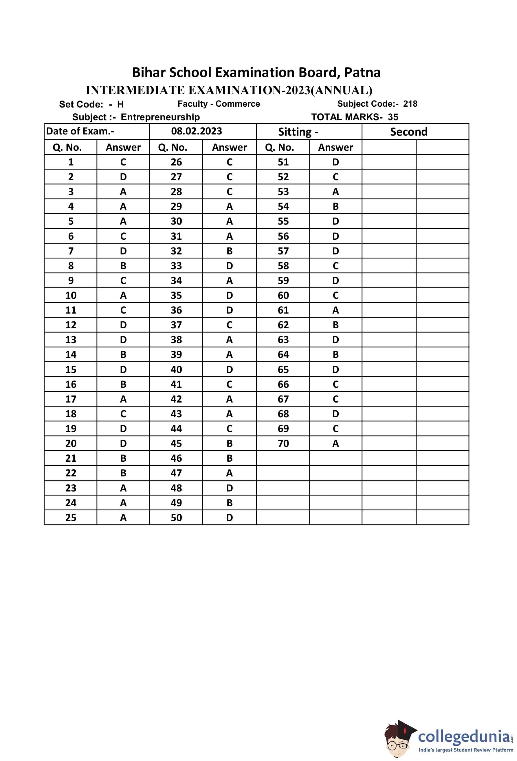 | Bihar Board Class 12 Entrepreneurship Question Paper with Answer Key | Check Solutions |