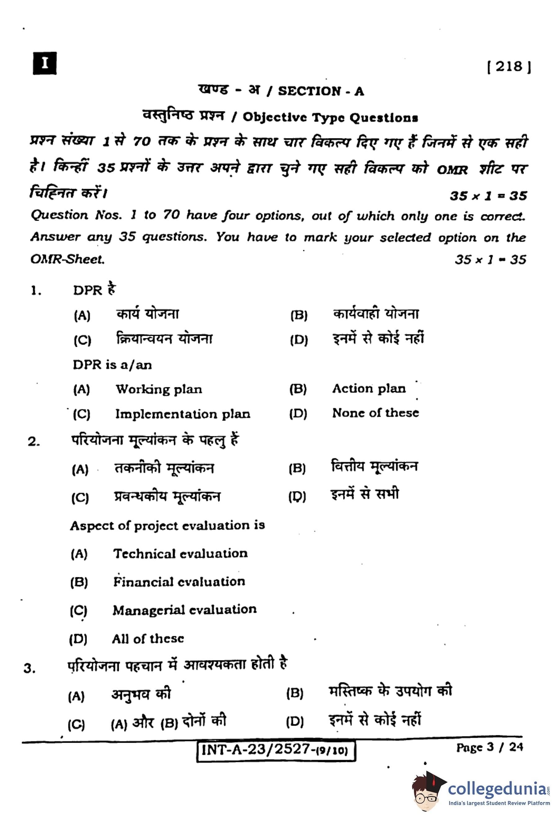 - (4) None of these: Incorrect, as the DPR clearly fits the description of an implementation plan.