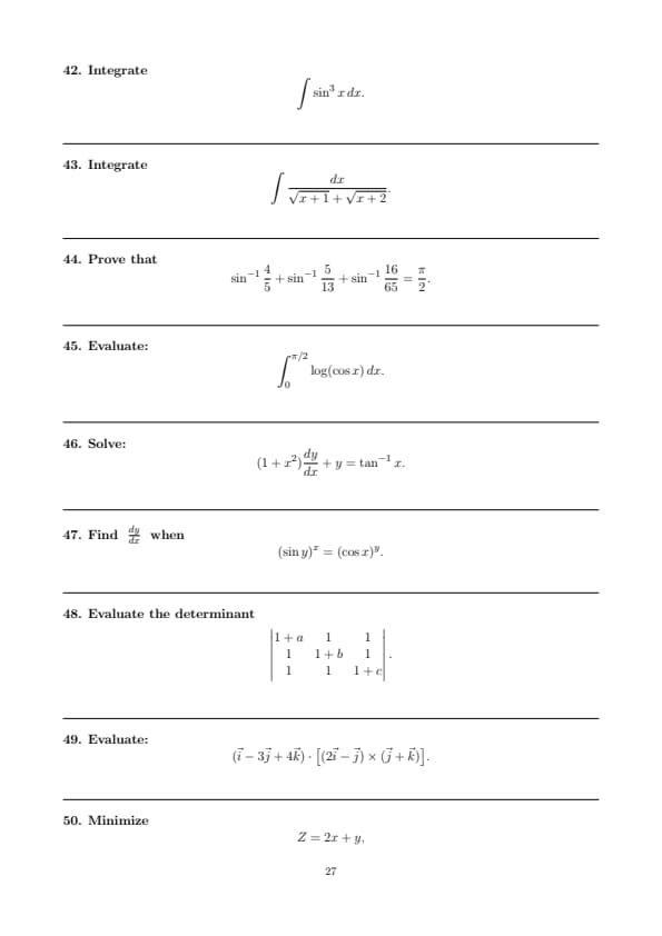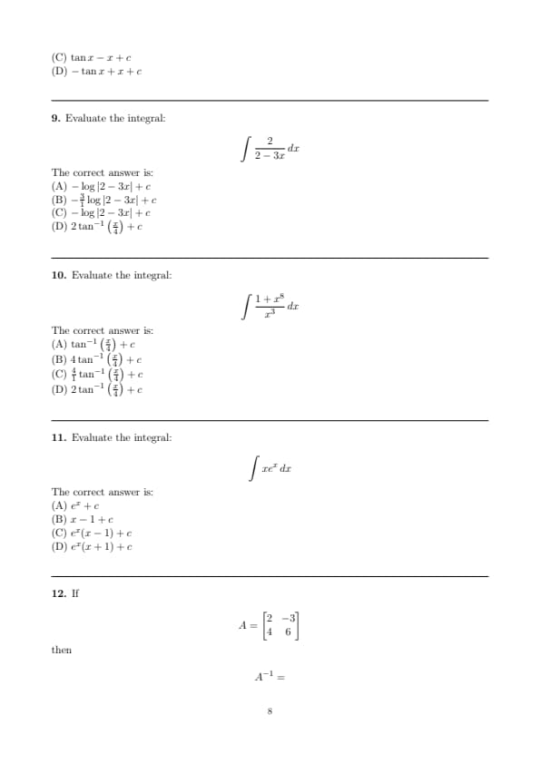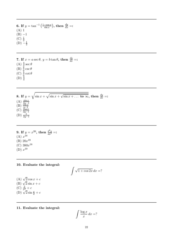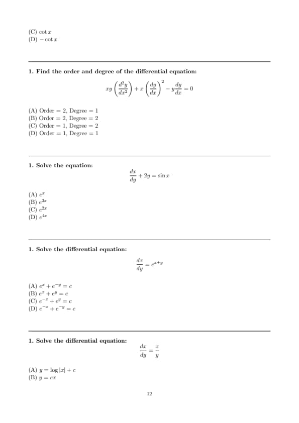 and \[ \boxed{ y = \tan^{-1} x - 1 + C e^{-\tan^{-1} x}. } \] Quick Tip: Use the integrating factor method for first-order linear differential equations and substitution for tricky integrals.