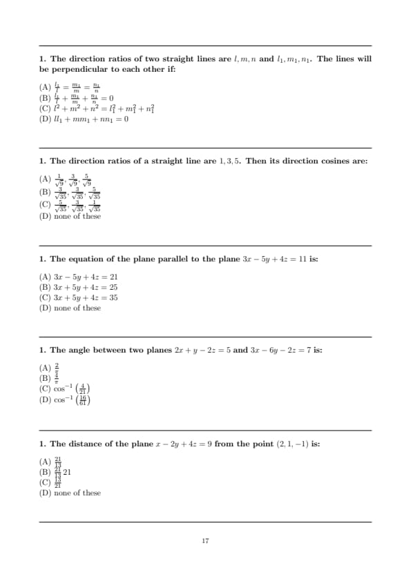 Therefore, direction cosines are \( (0, 0, 1) \).