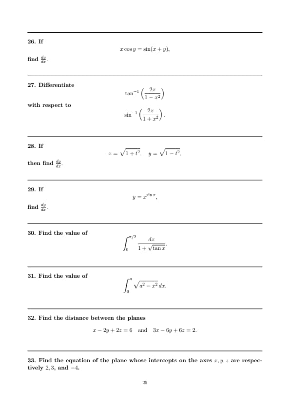 Therefore, \[ \boxed{ \frac{dy}{dx} = \frac{ - y \tan x - \log(\sin y) }{ x \cot y - \log(\cos x) }. } \] Quick Tip: Use logarithmic differentiation for equations with variables in both base and exponent, then apply implicit differentiation.