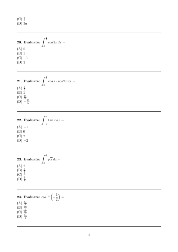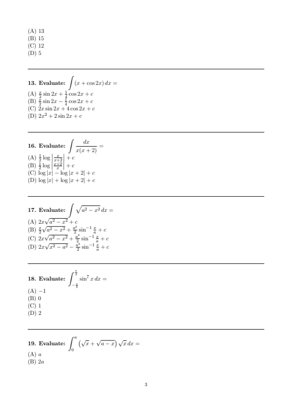 N/A Quick Tip: When tackling integrals that involve products of functions like \( x \cos 2x \), integration by parts is often the best approach. Remember the formula: \[ \int u\, dv = uv - \int v\, du \] In cases like this, choosing \( u = x \) and \( dv = \cos 2x \, dx \) simplifies the process. Also, always double-check the question—if the integral involves a combination like \( x + \cos 2x \), you can separate it into simpler integrals. But if it's a product like \( x \cos 2x \), integration by parts is your go-to method!