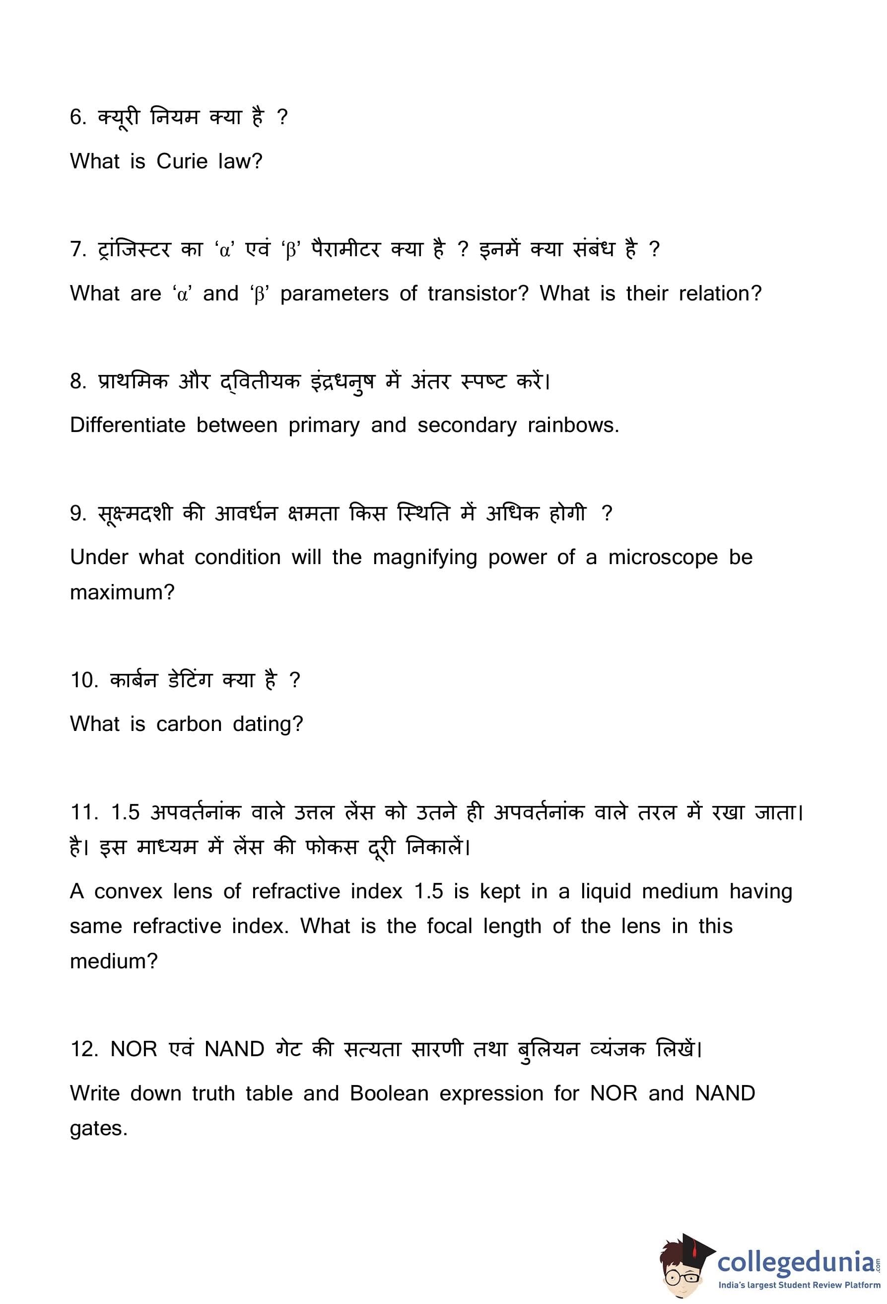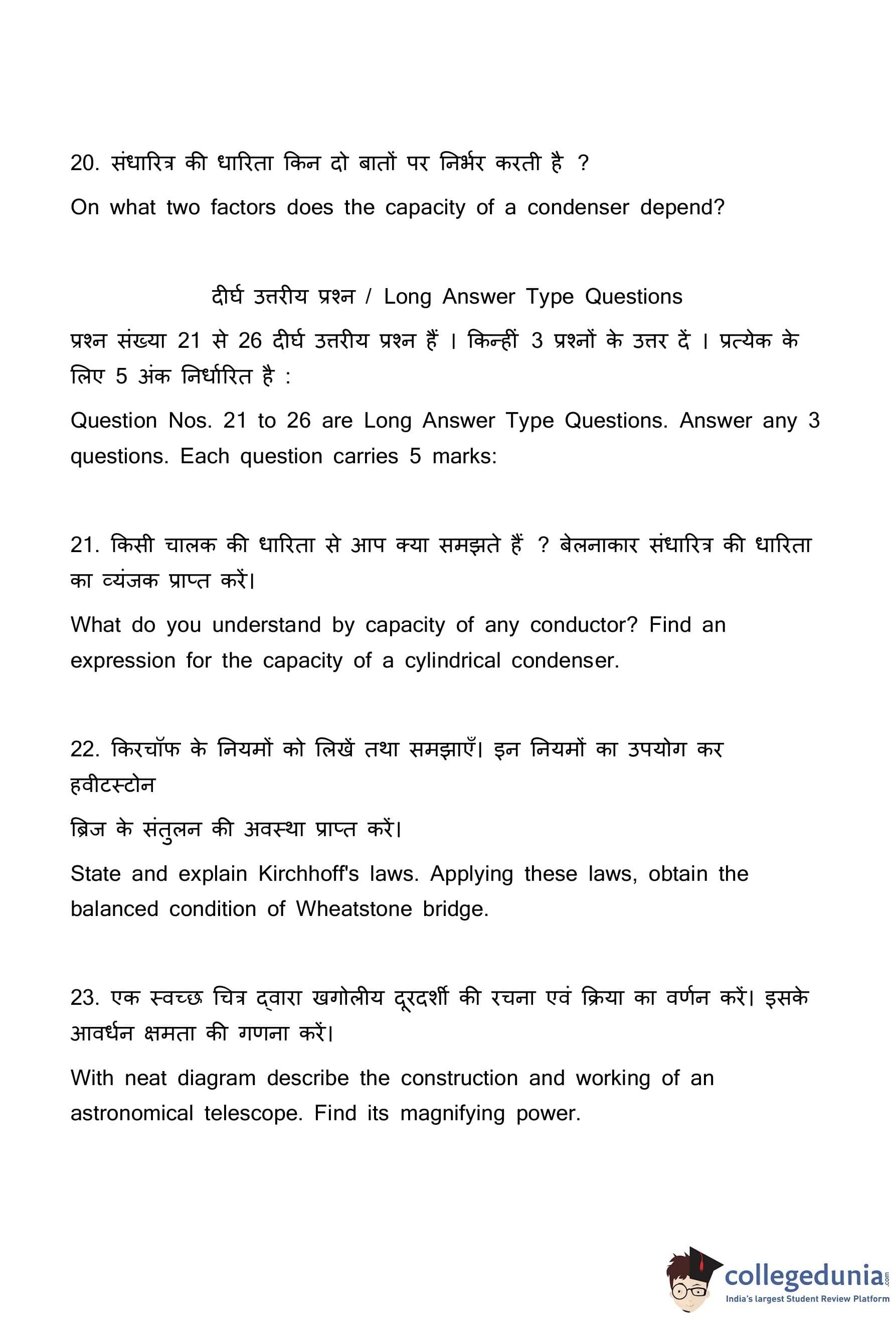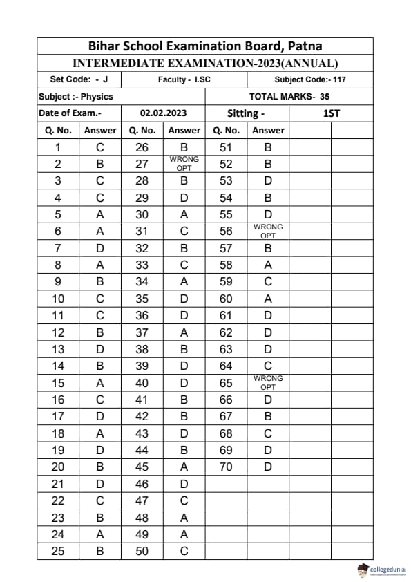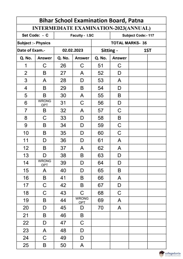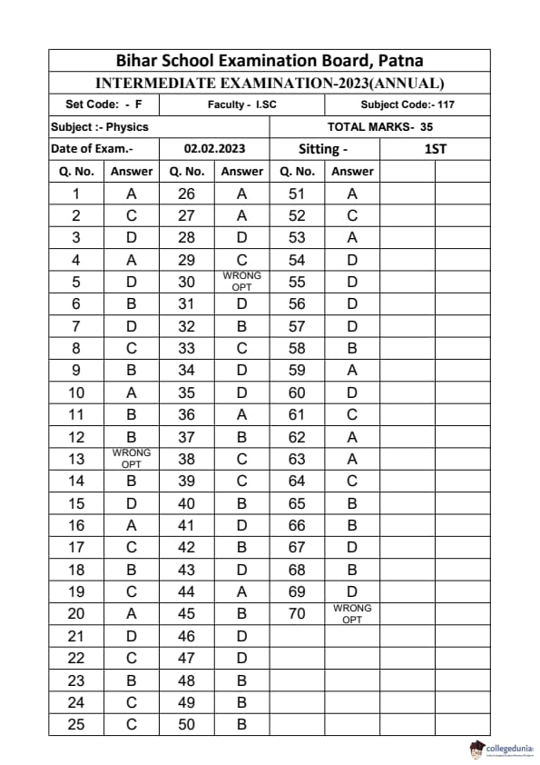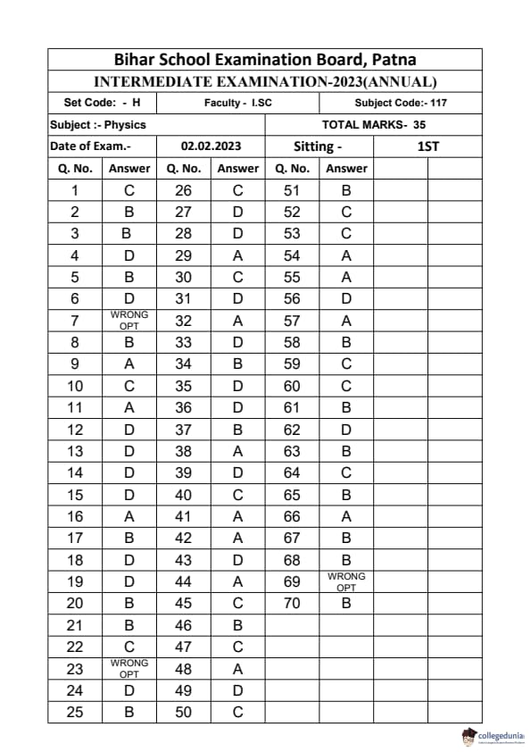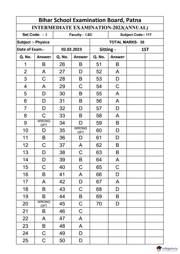 | Bihar Board Class 12 Physics Question Paper with Answer Key | Check Solutions |