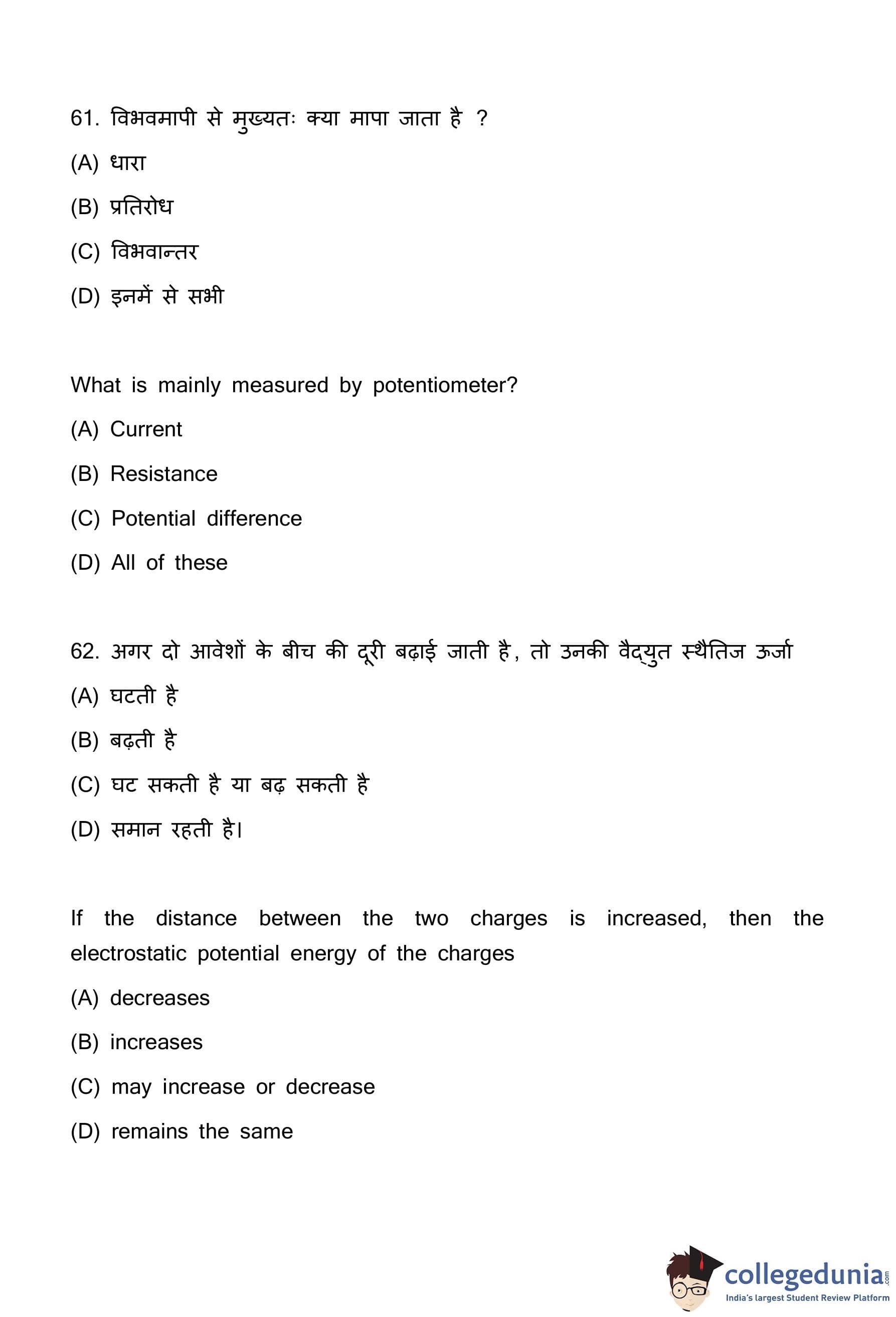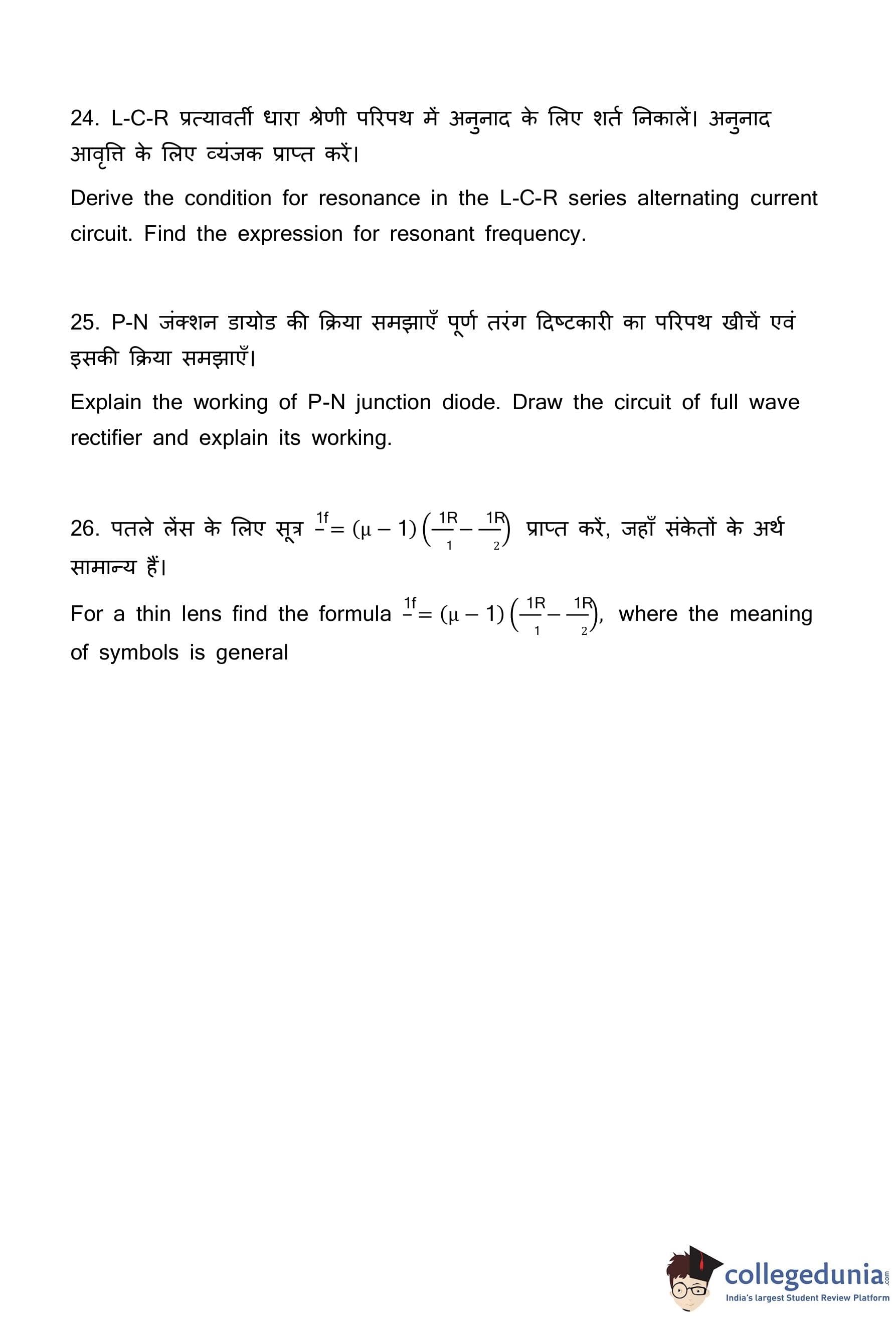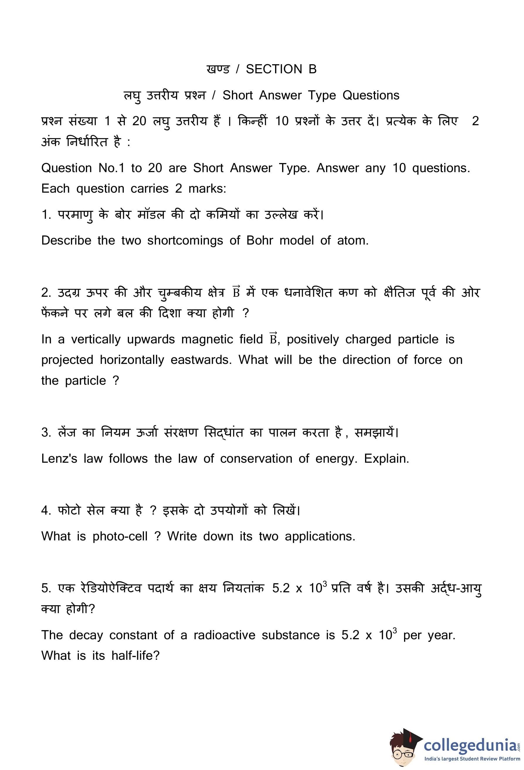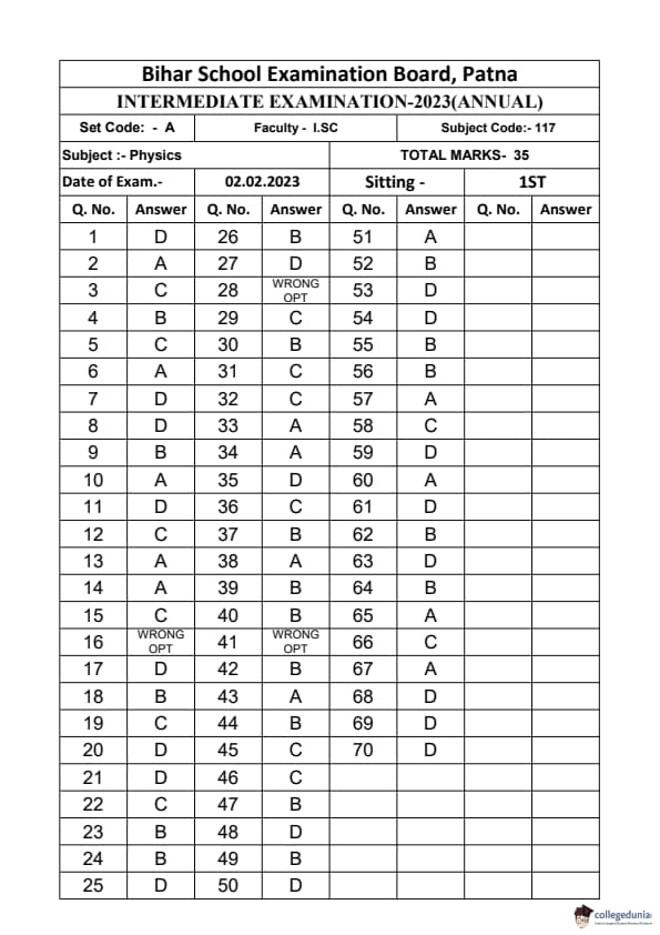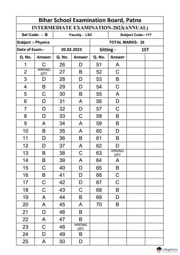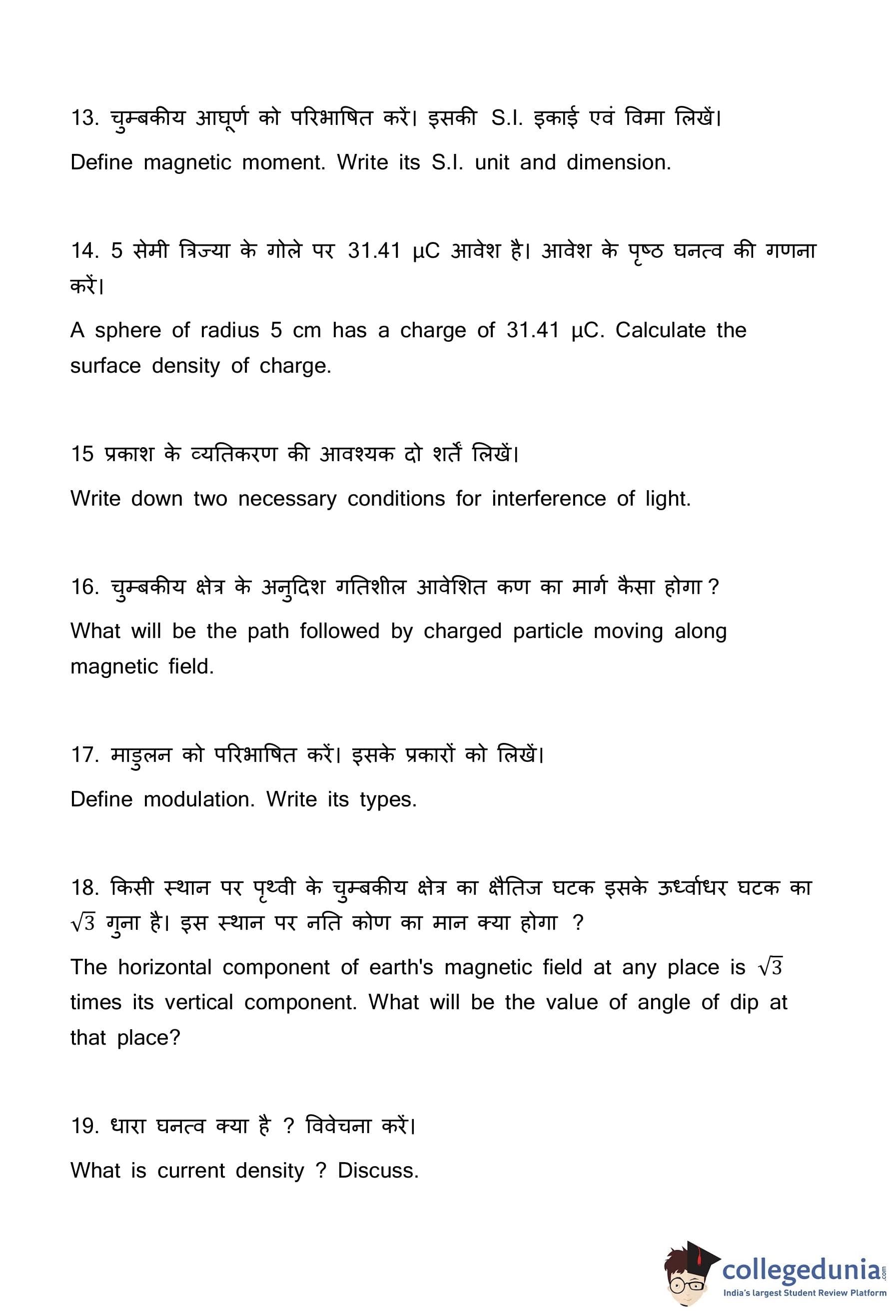 | Bihar Board Class 12 Physics Question Paper with Answer Key | Check Solutions |