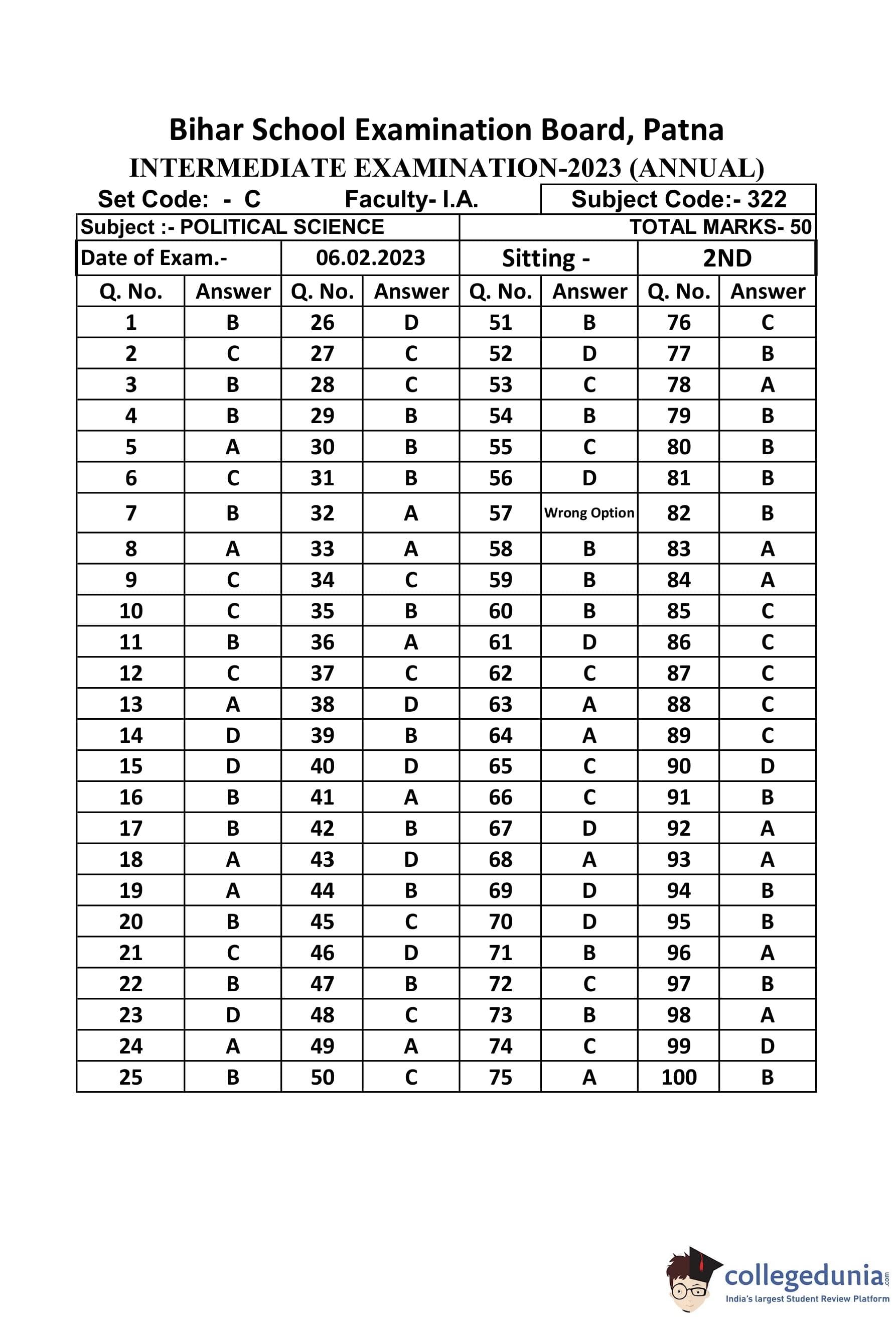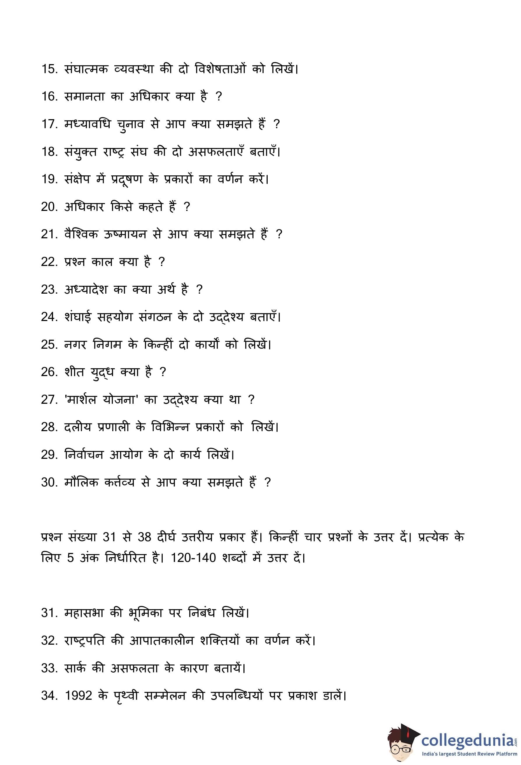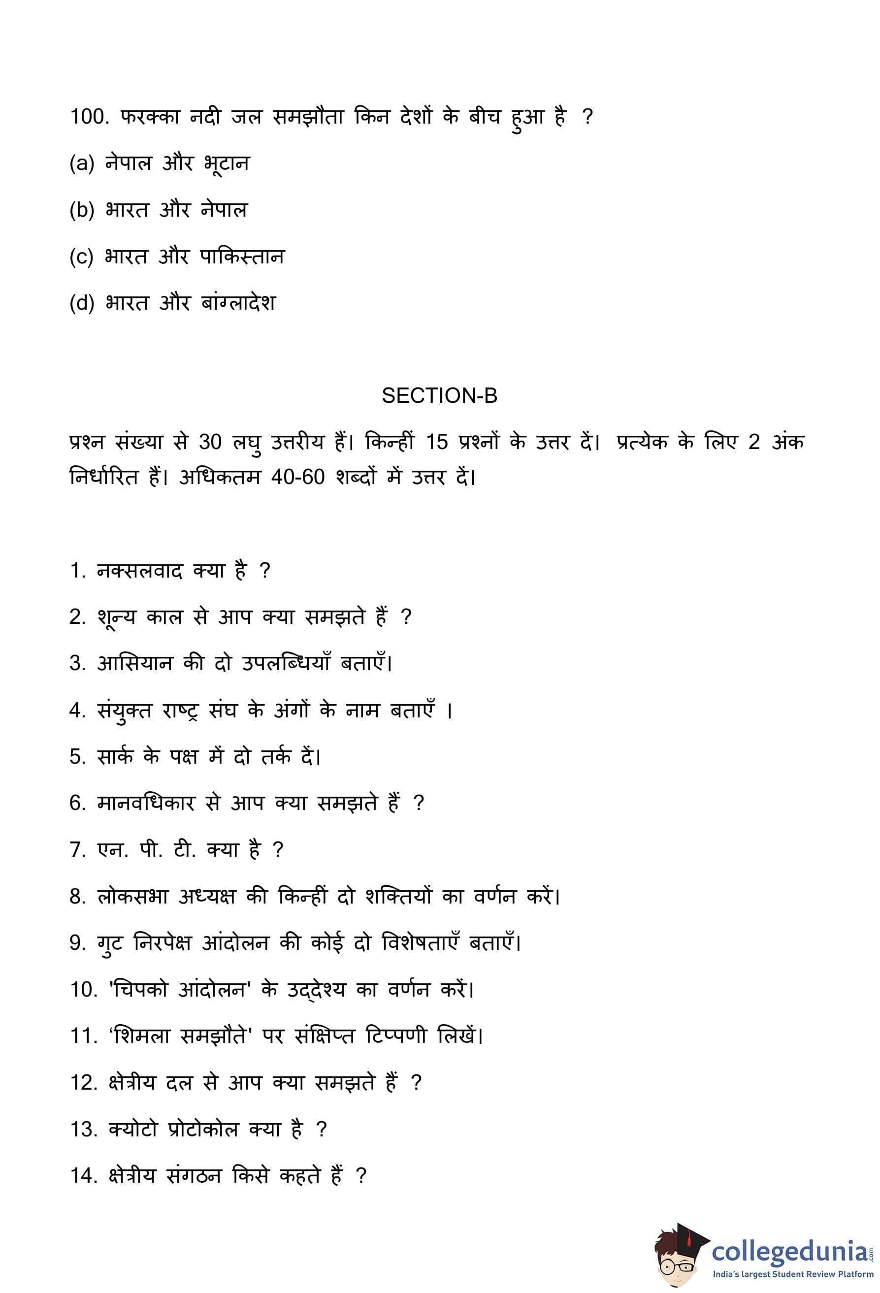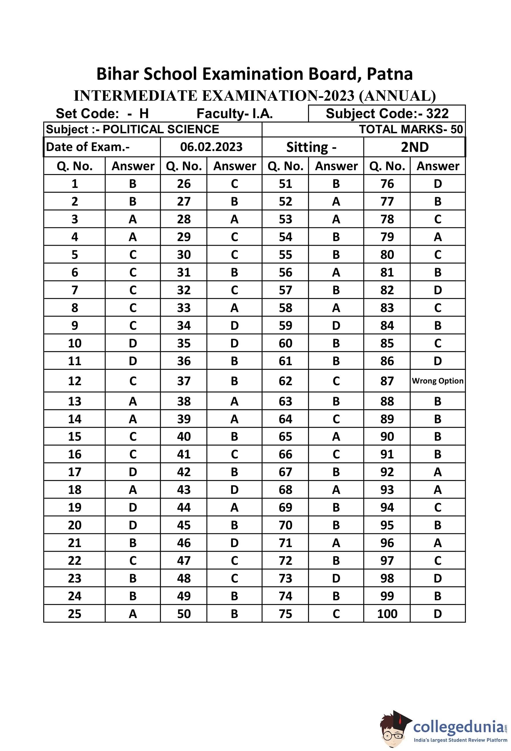 | Bihar Board Class 12 Political Science Question Paper with Answer Key | Check Solutions |